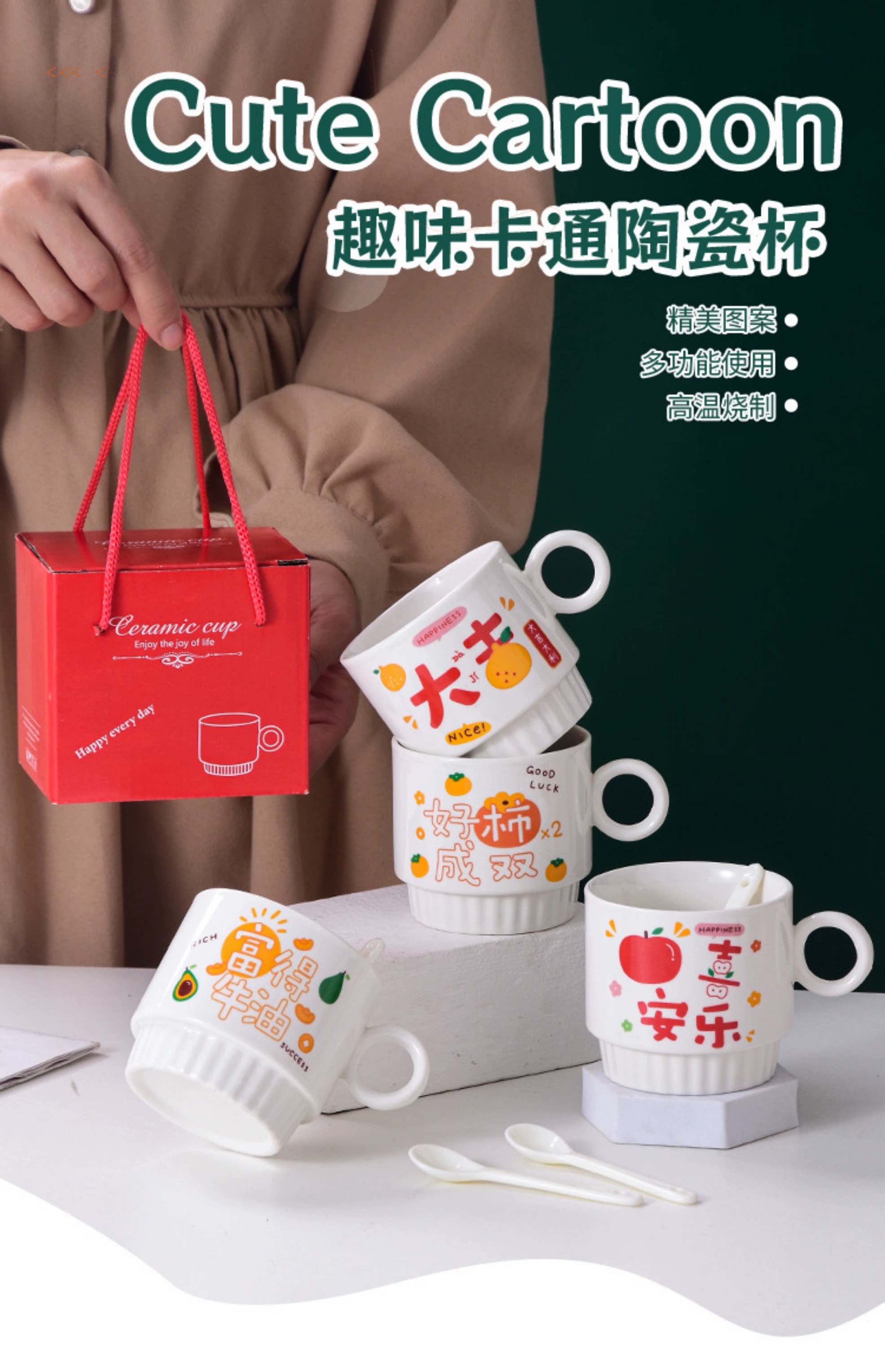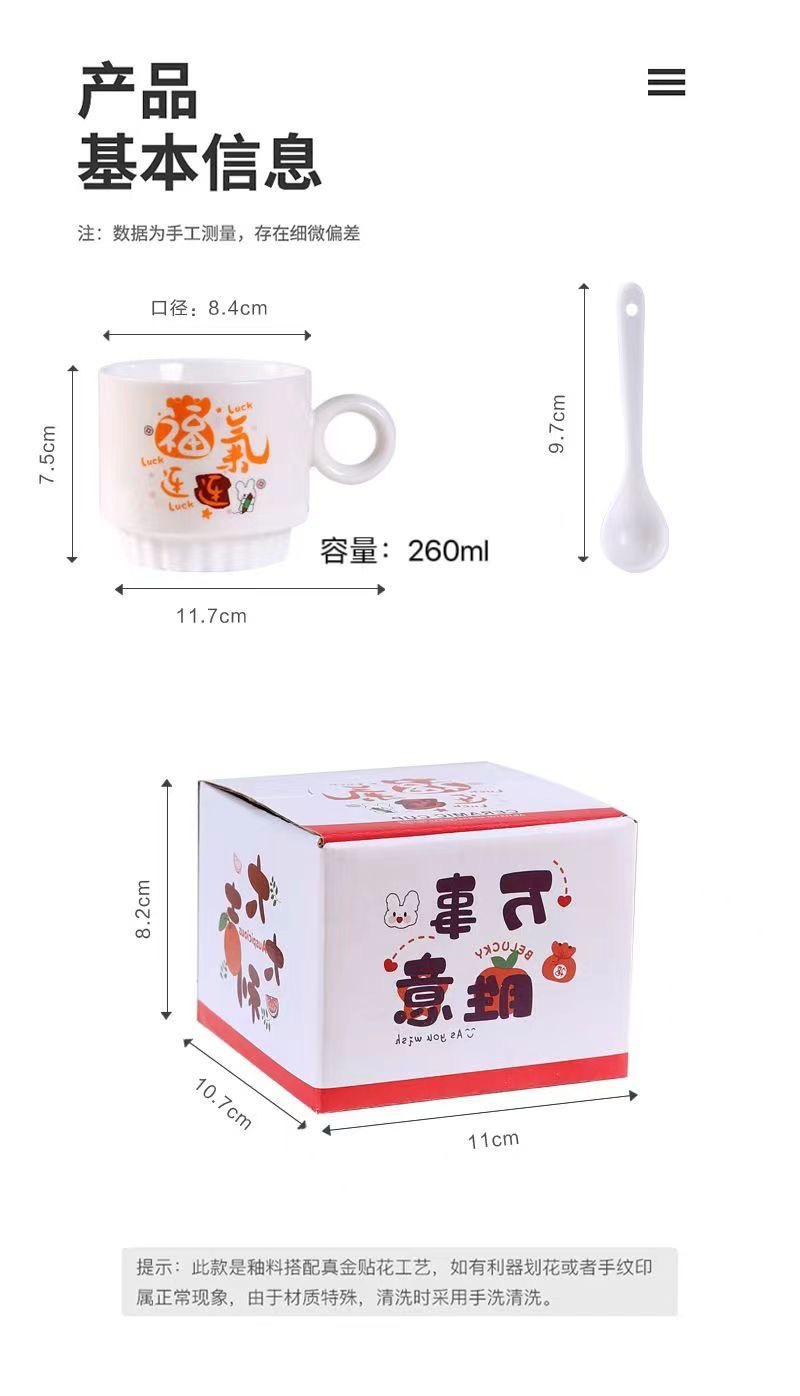 卡通小龙带勺陶瓷杯马克杯260ml