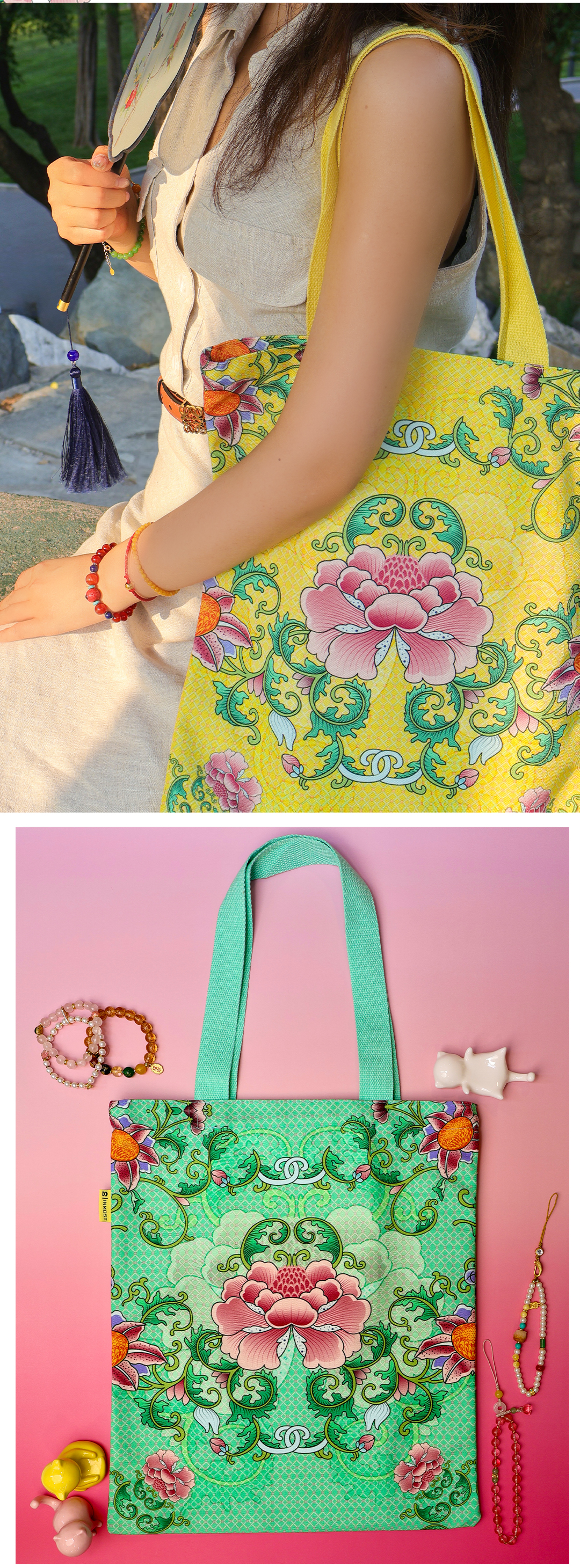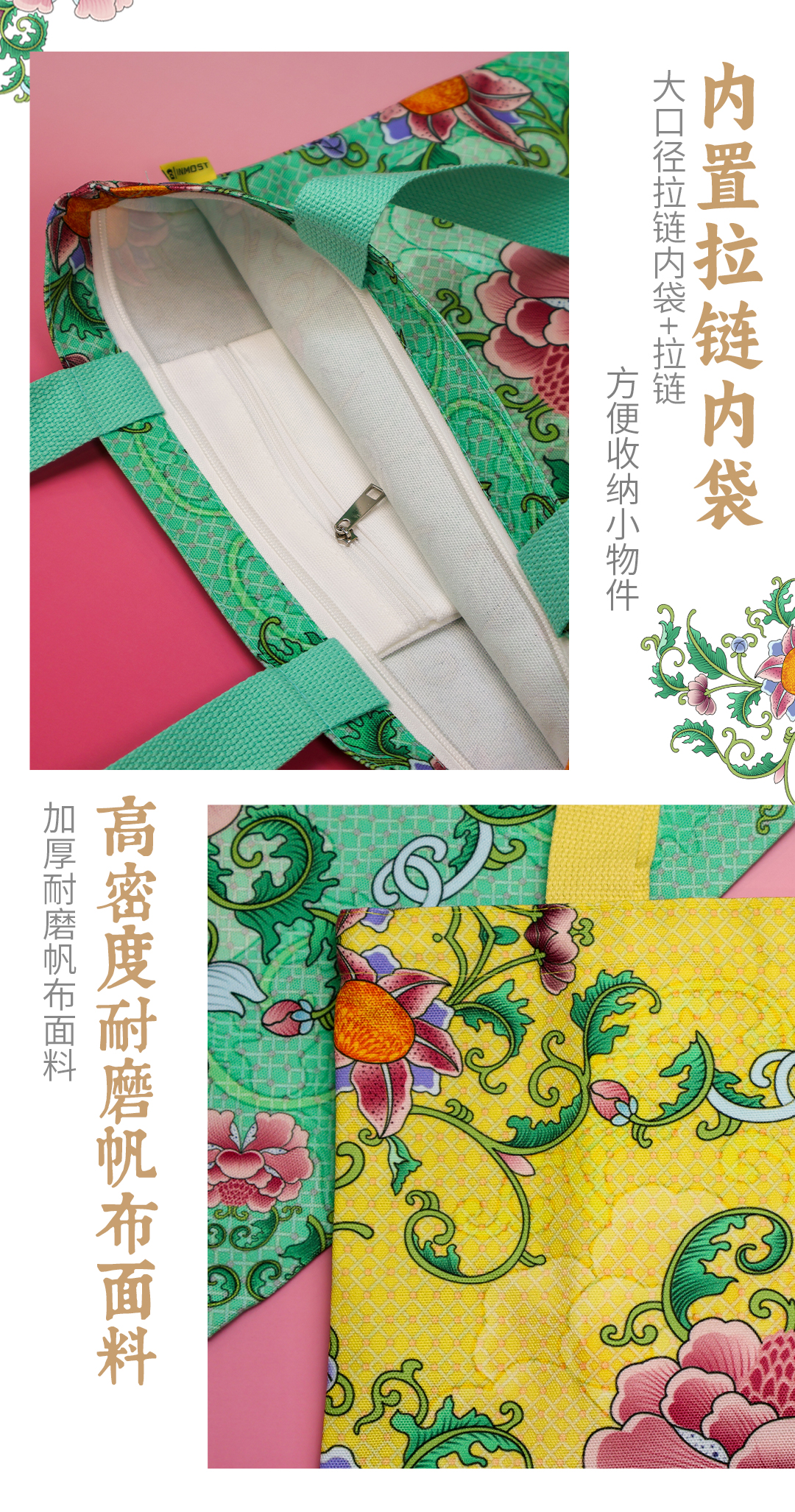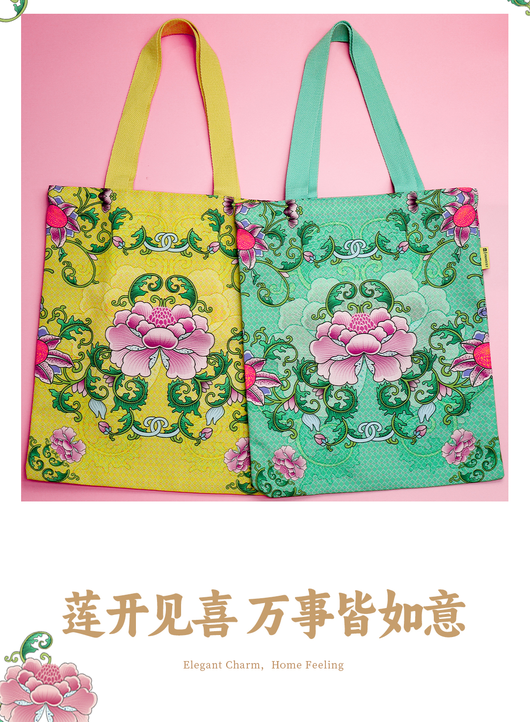 【宫里帆布袋】吉祥莲花绿色帆布袋