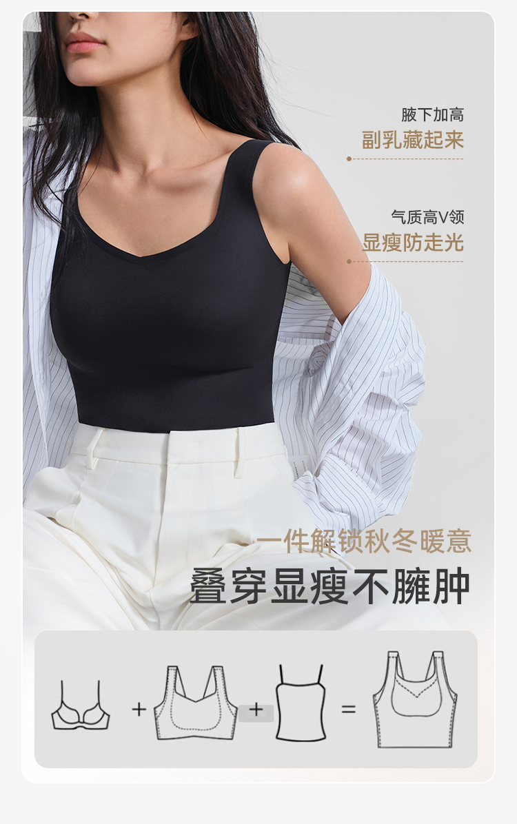 [轻塑肌底衣]免穿文胸大胸显小无钢圈无痕舒适承托背心吊带送女友