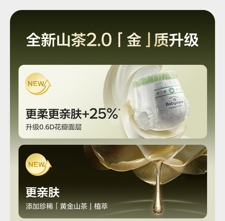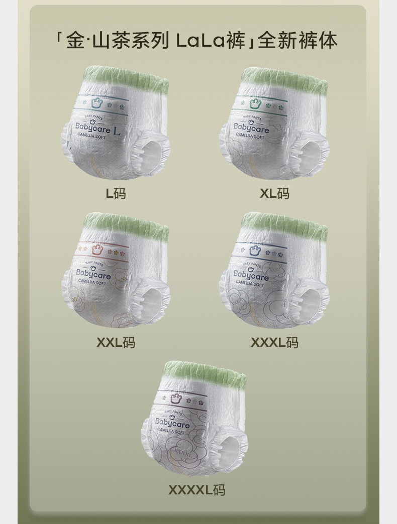 Babycare金山茶新生柔短裤式婴儿纸尿裤(L-XXXXL)(新旧包装随机发)