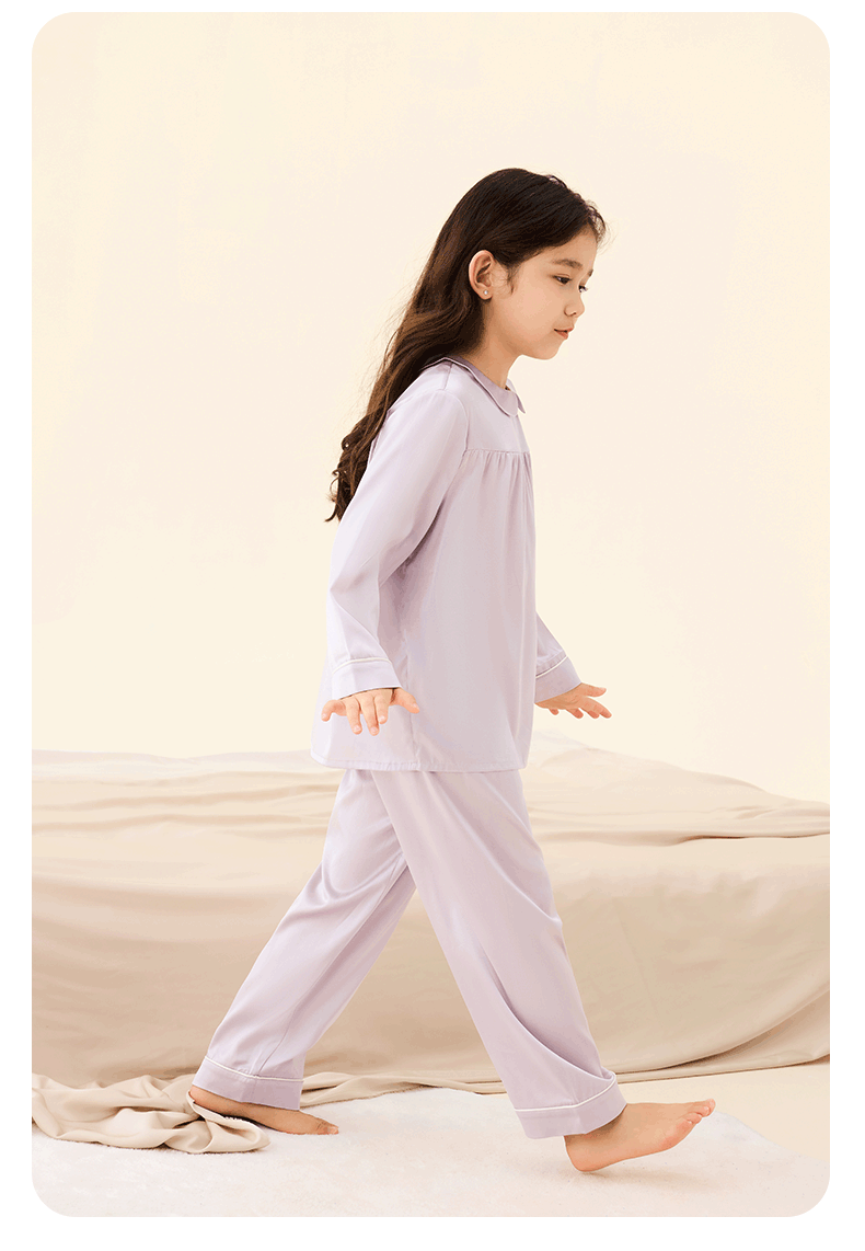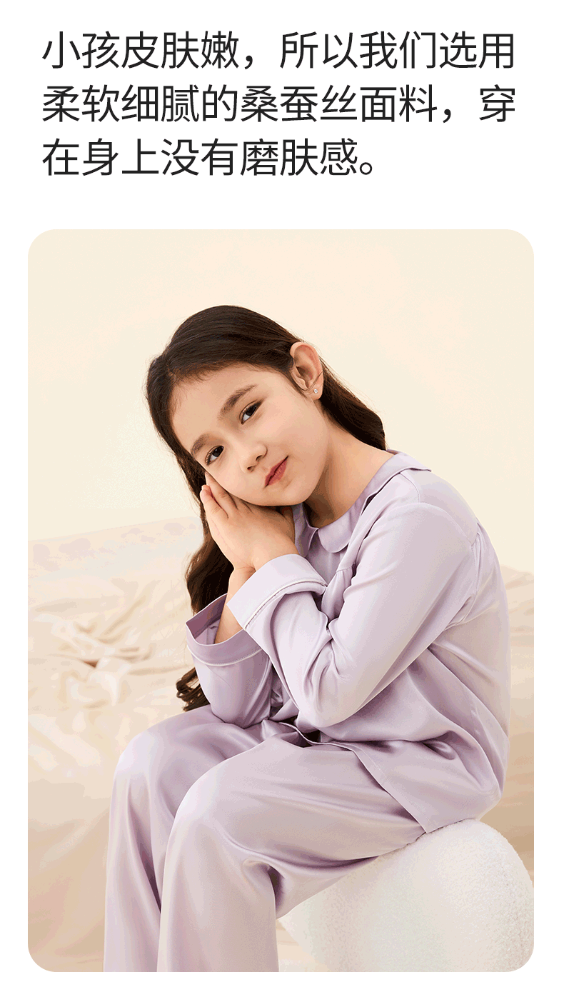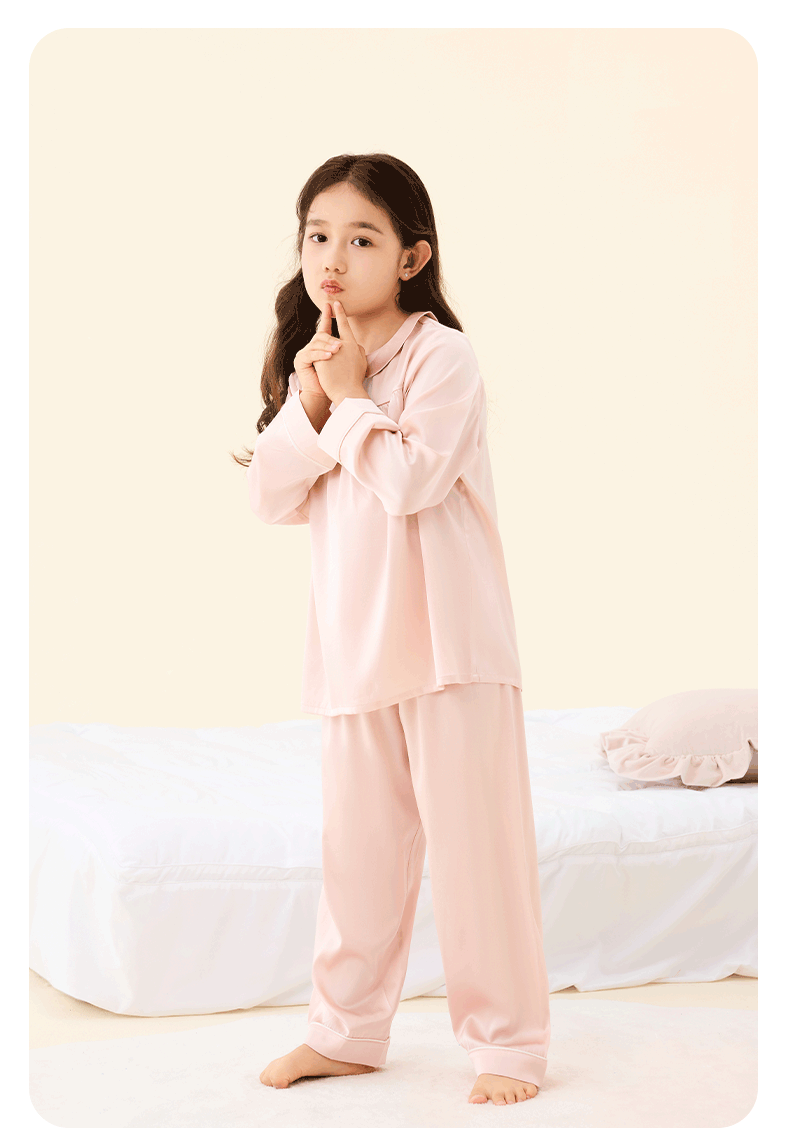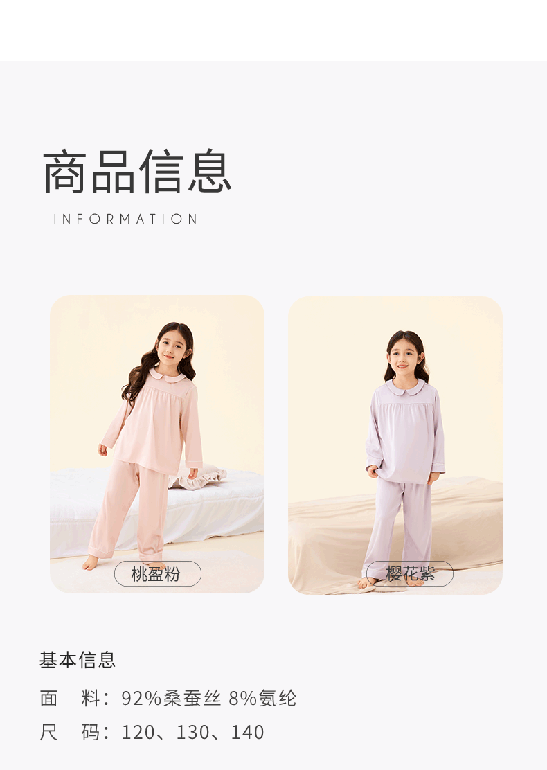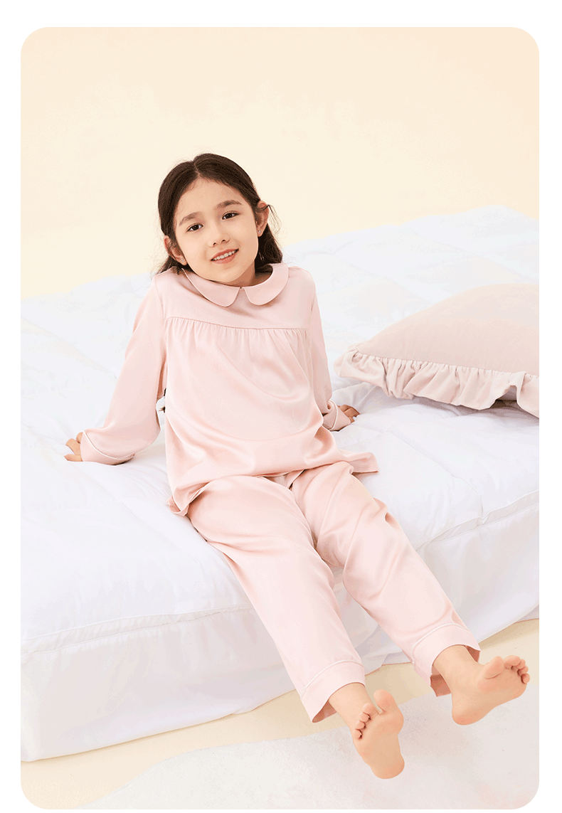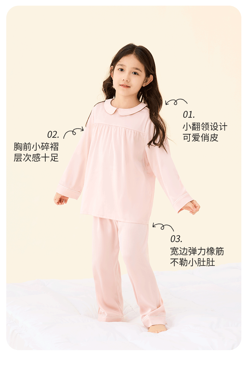 金三塔桑蚕丝儿童女童真丝睡衣套装舒适可爱弹力缎丝绸家居服衣裤套装 BBY026