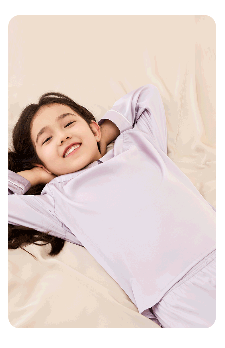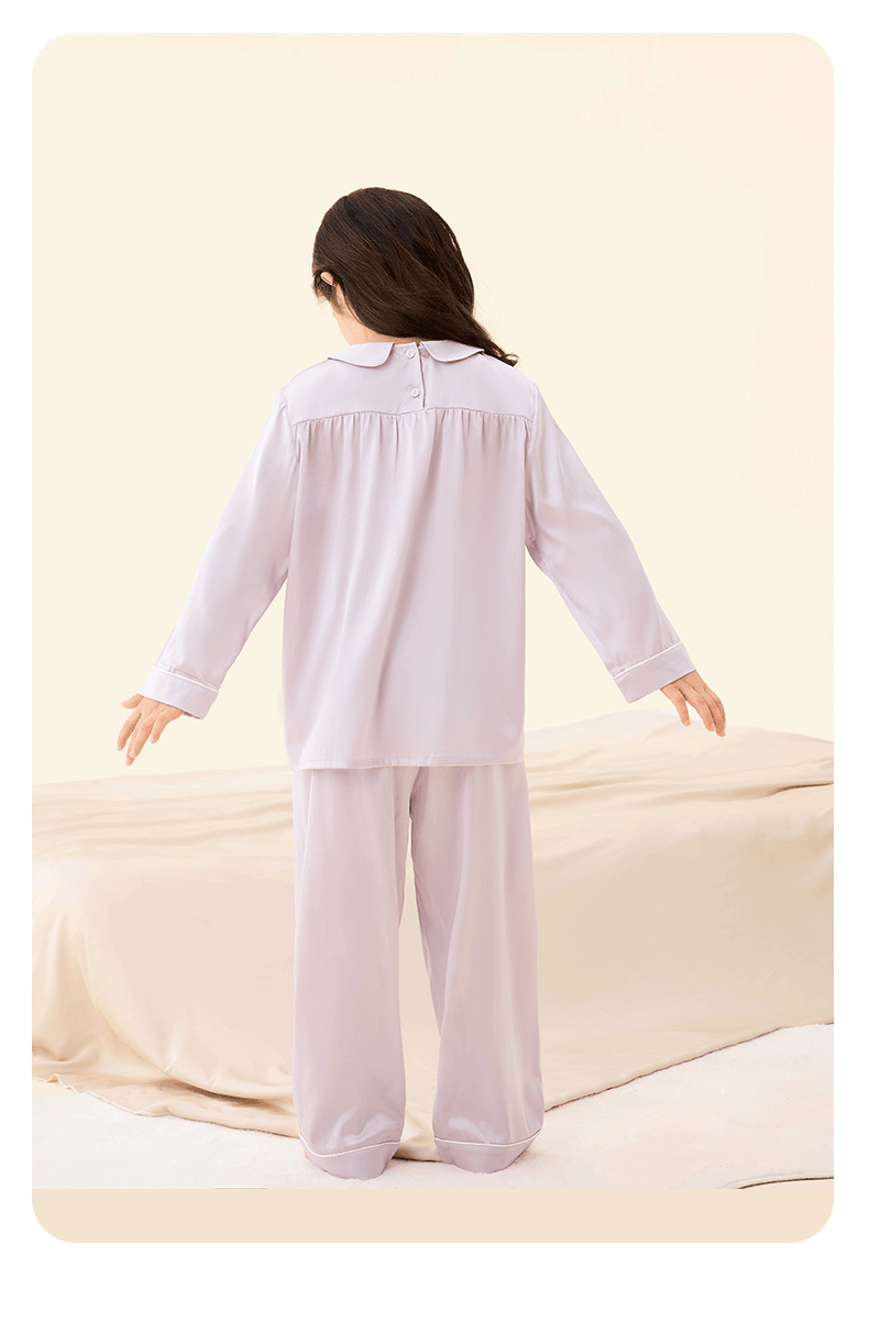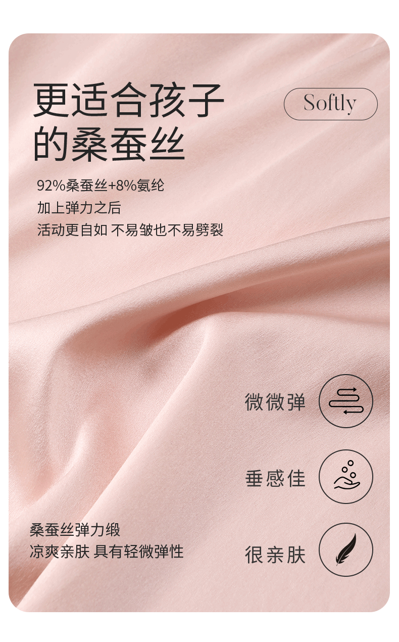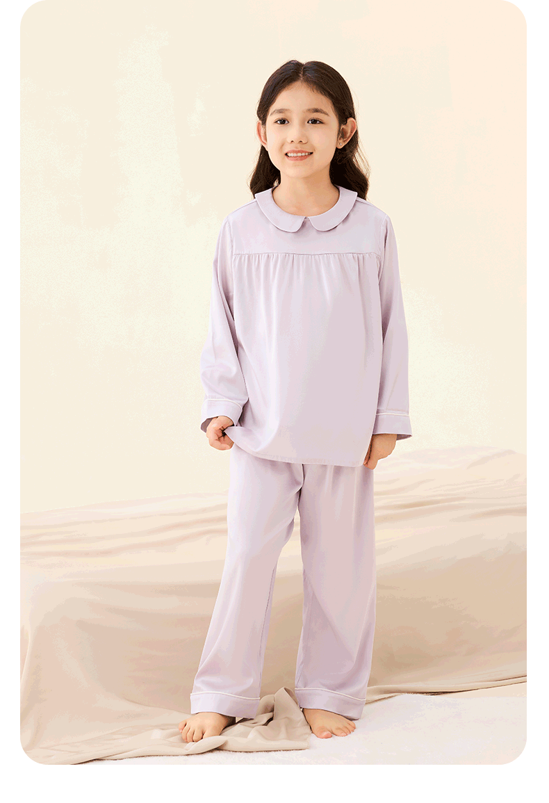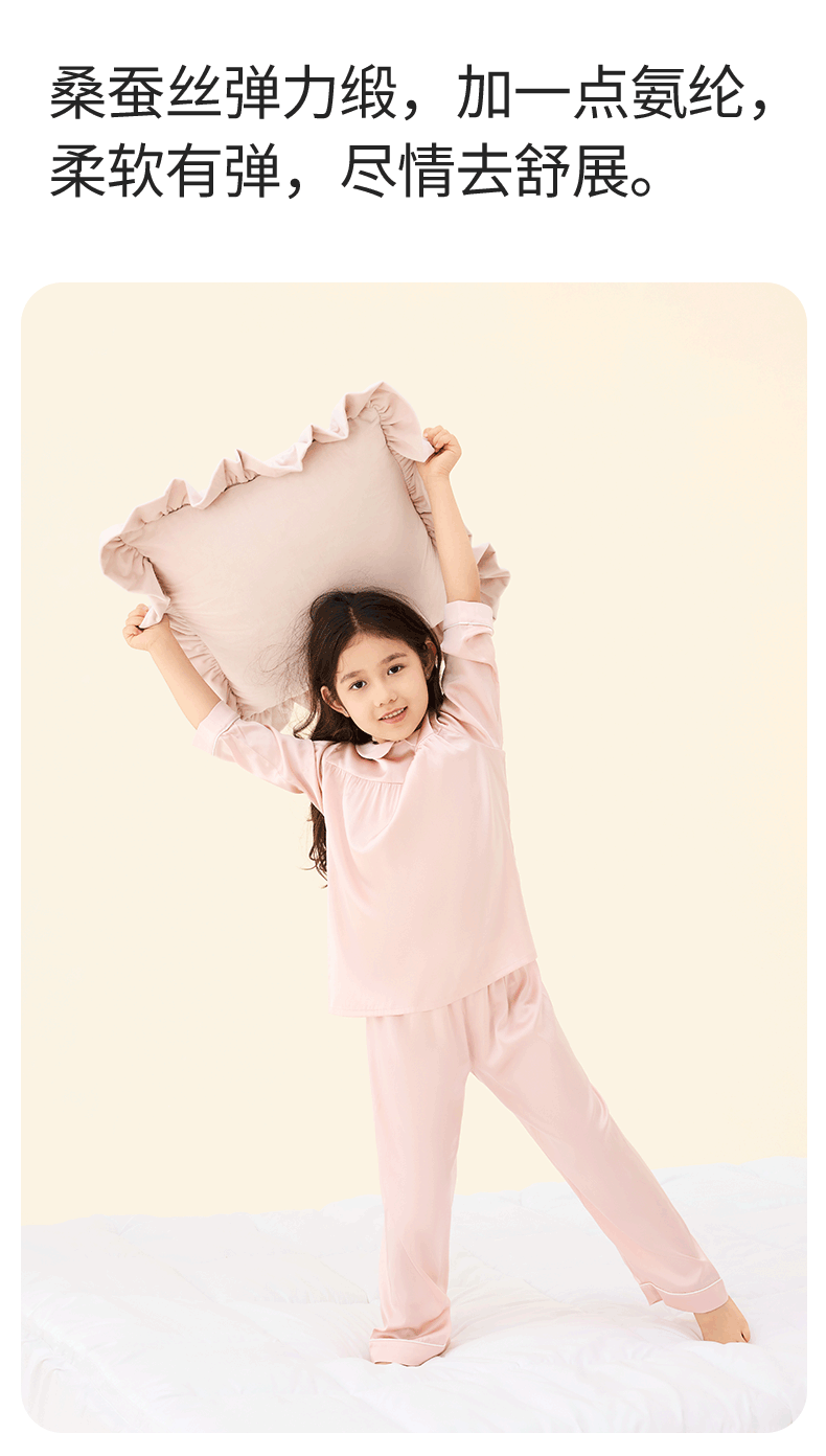 金三塔桑蚕丝儿童女童真丝睡衣套装舒适可爱弹力缎丝绸家居服衣裤套装 BBY026