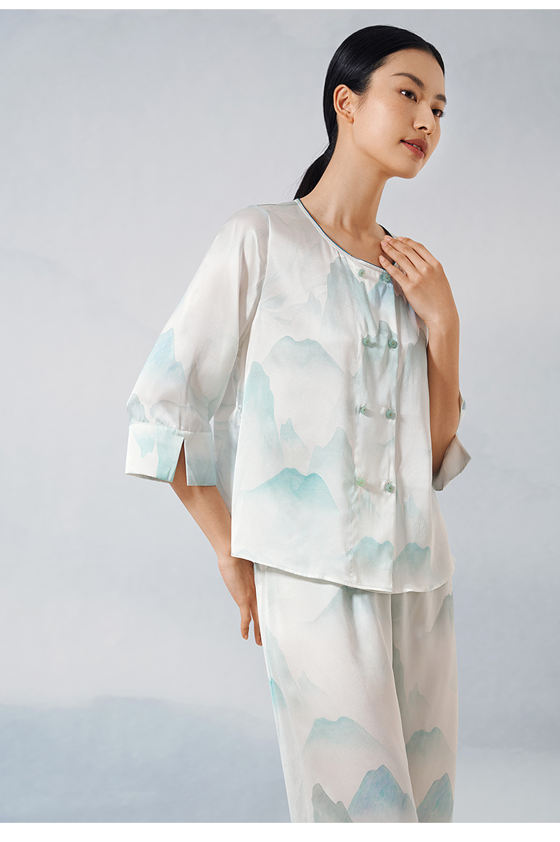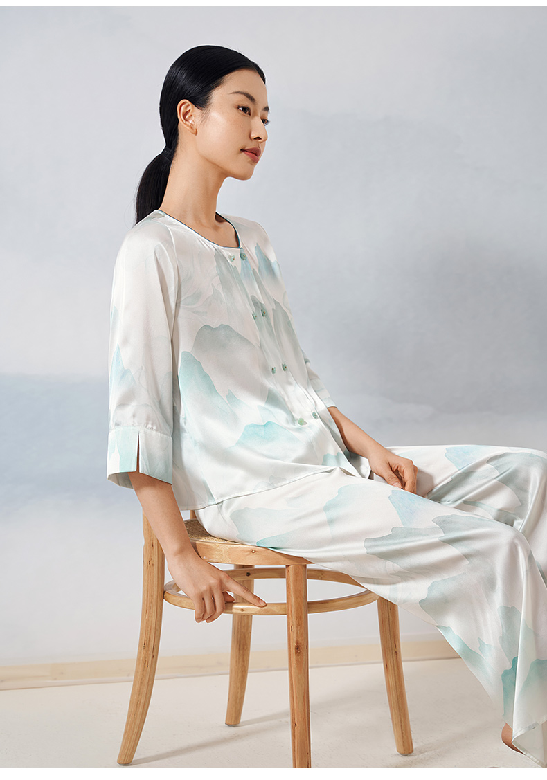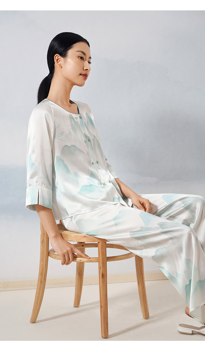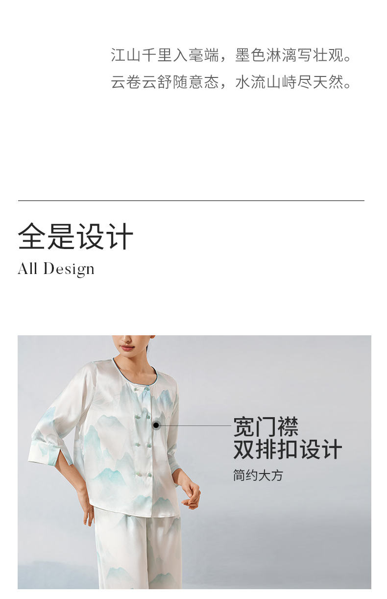 【水墨韵味】金三塔重磅真丝睡衣女新中式100%桑蚕丝印花宽松家居服 YSFEB201