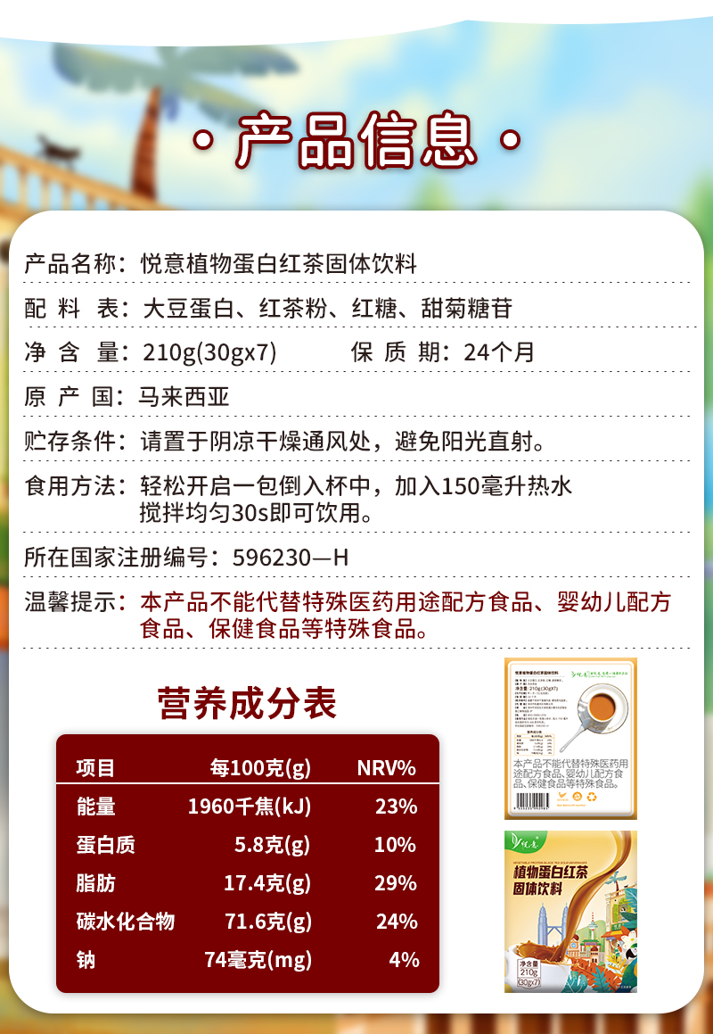 悦意植物蛋白红茶固体饮料B210g*2【产地直发】@悦意