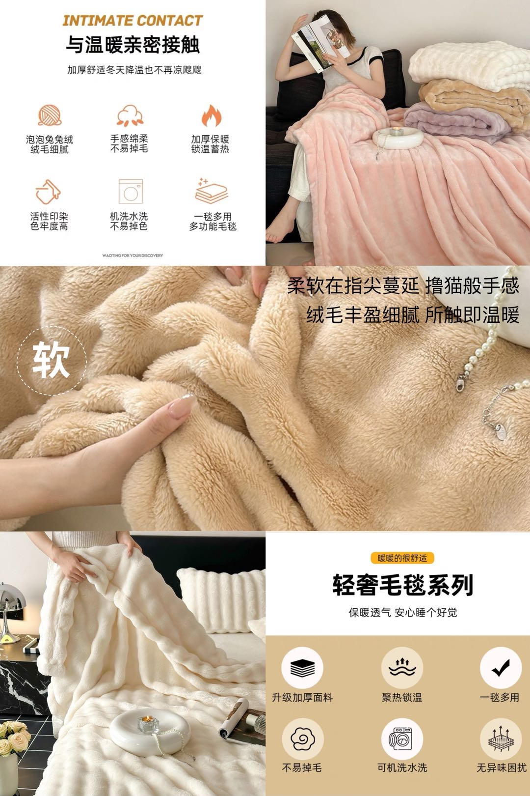山M同款 【全尚 双人泡芙毯】 软fufu的手感!厚实软糯,双面都能用,不掉毛,不起球,无静电,可机洗 !