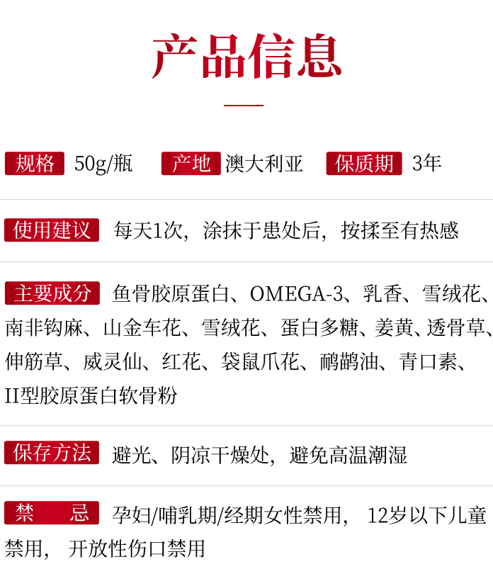 【品名】澳洲Covader关节焕活补骨膏 50g/瓶【生产日期】2025年8月