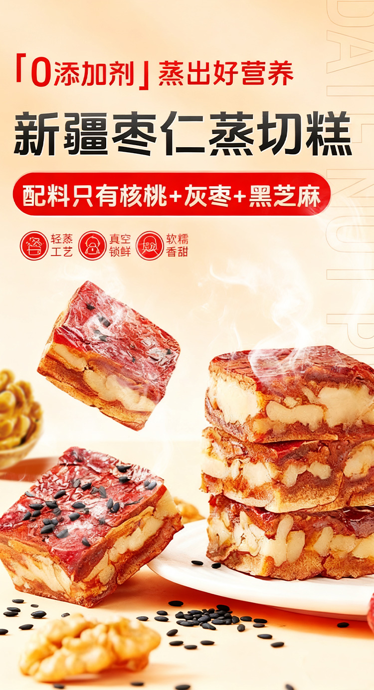 【阿克苏优选】浙疆果 新疆芝麻蒸切糕礼盒 黑芝麻+脱衣核桃仁+新疆红枣