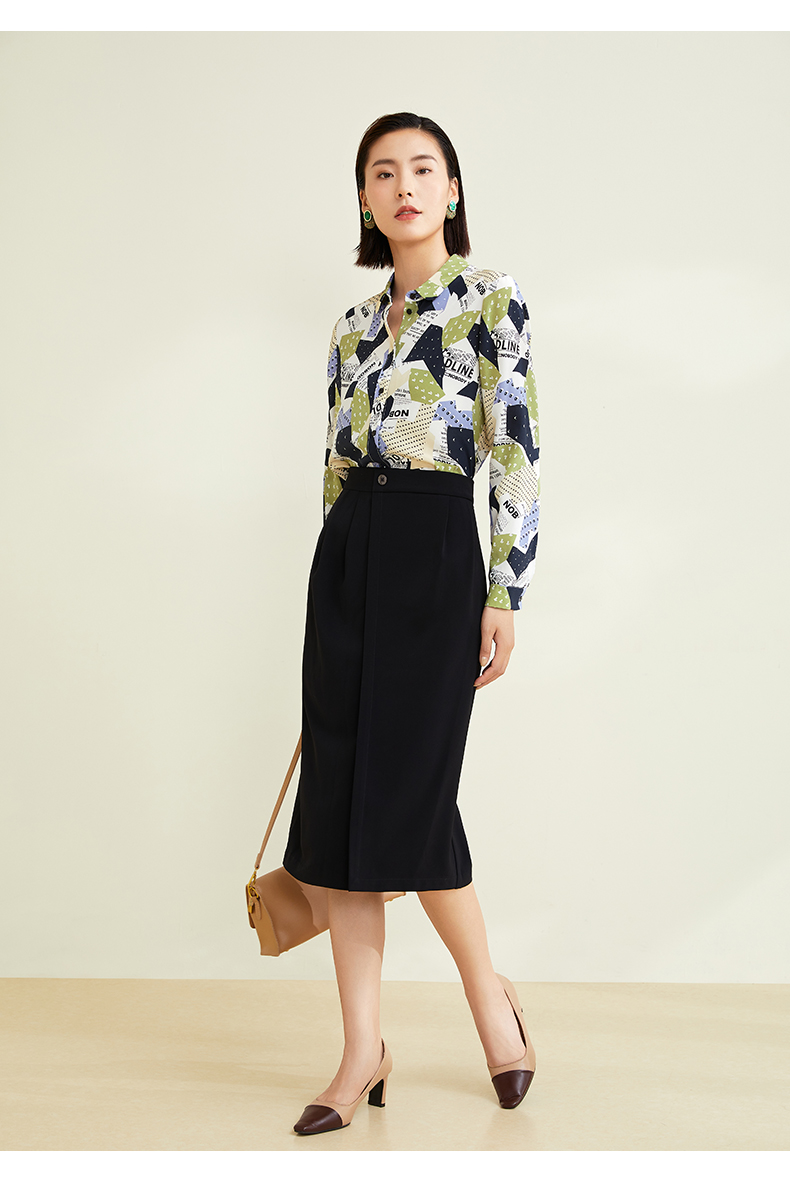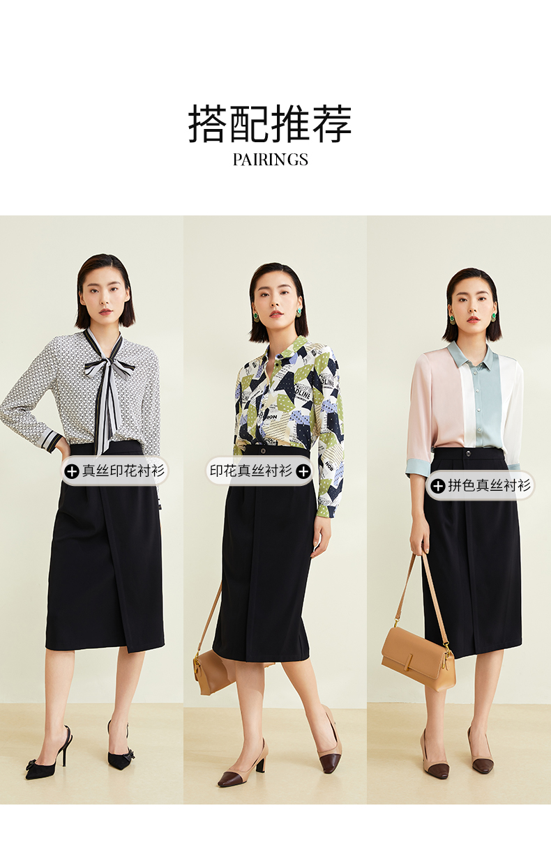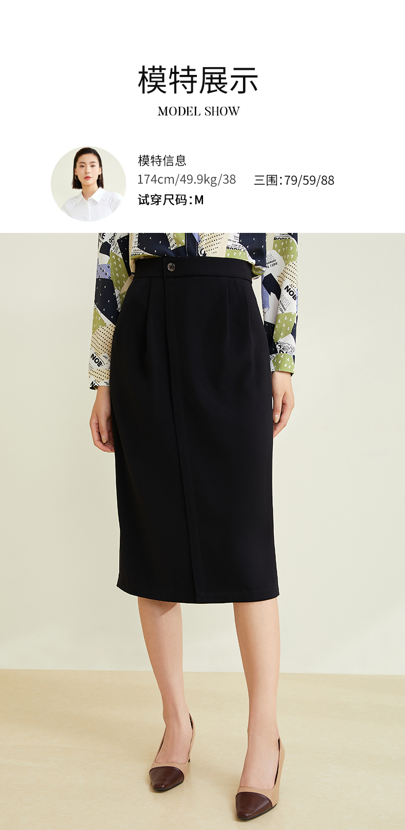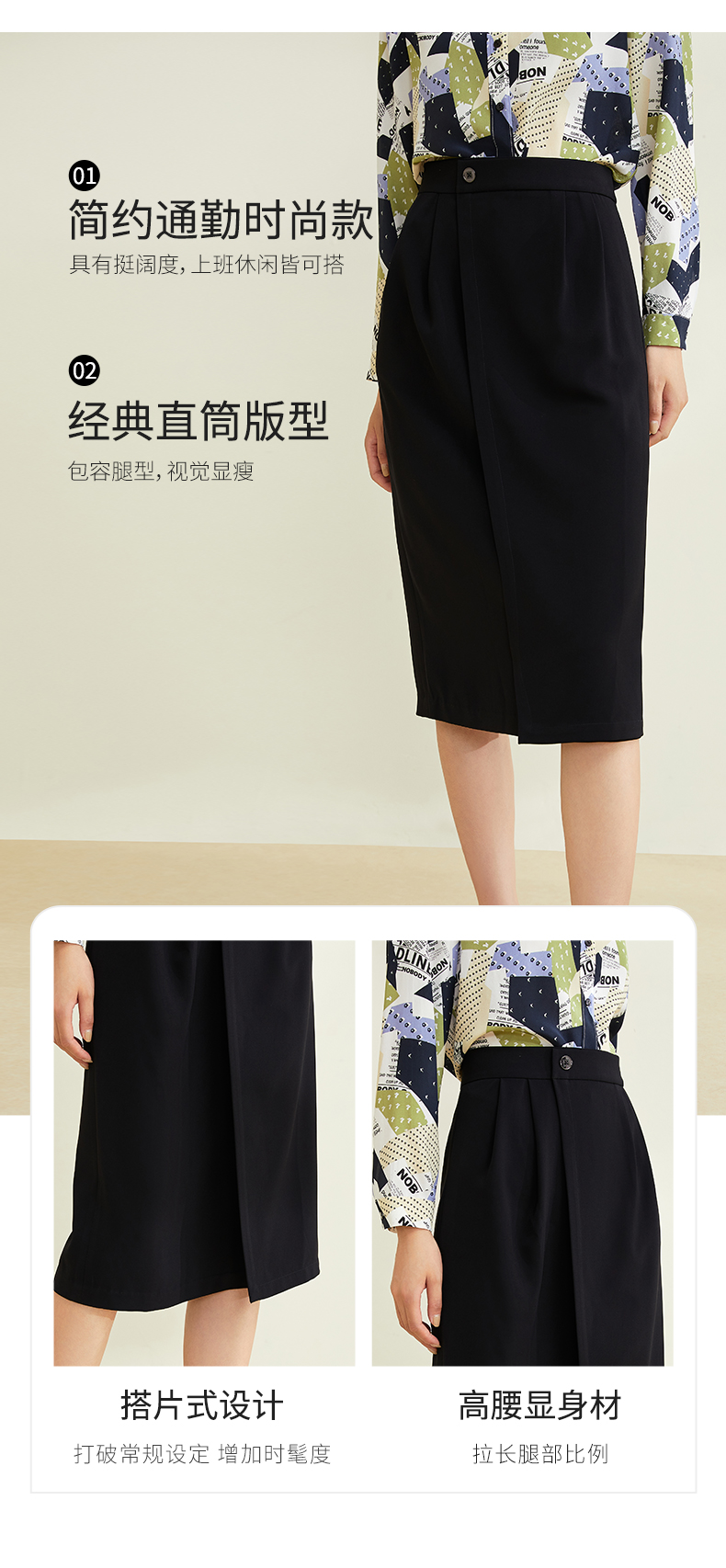 玳莎简约高腰设计感半身裙女气质显瘦秋季新款直筒中长款裙子 CC34301