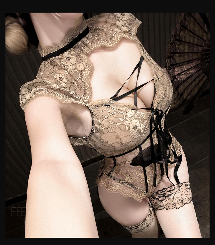 霏慕×谜姬 南法风情蕾丝绑带连体衣7057