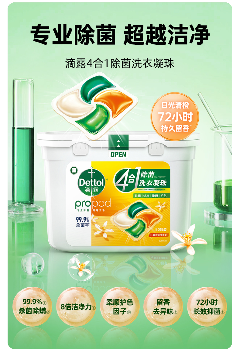 滴露4合1 洗衣凝珠 chu菌除螨柔顺留香 50颗/盒