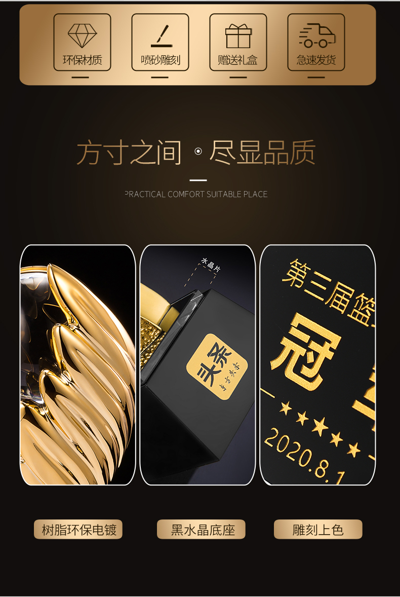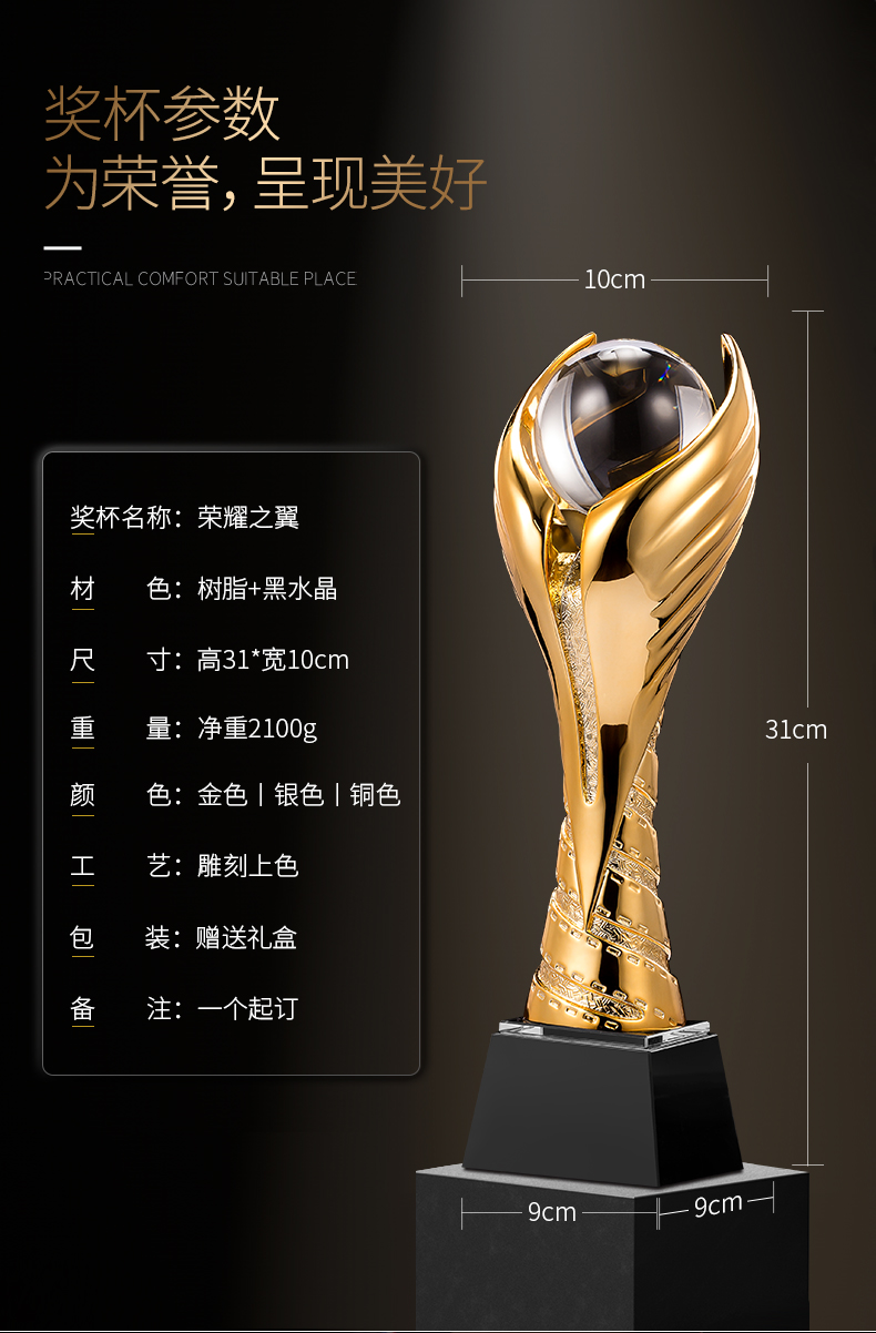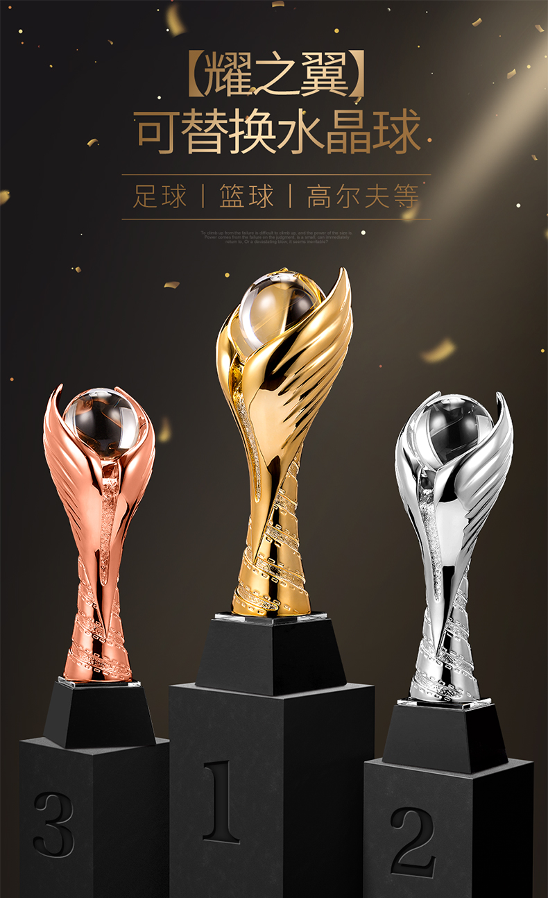 【荣耀之翼】奖杯定制定做创意树脂水晶奖杯篮球足球高尔夫球比赛