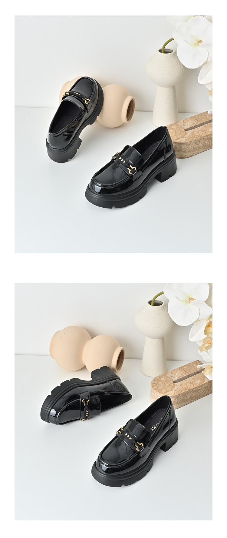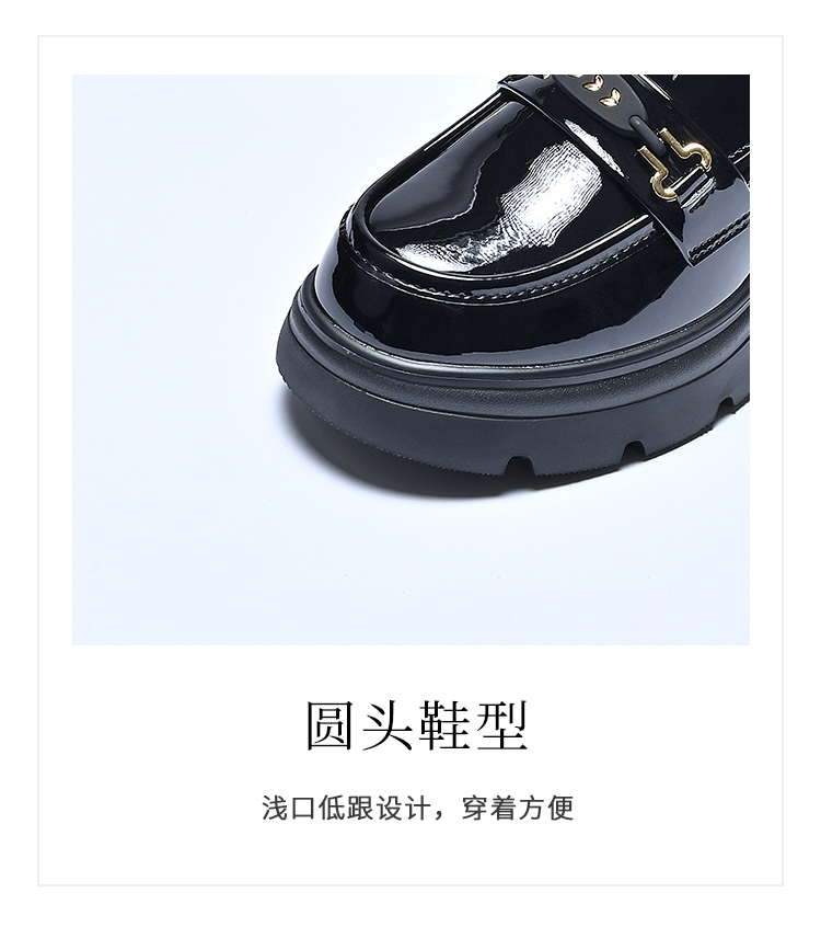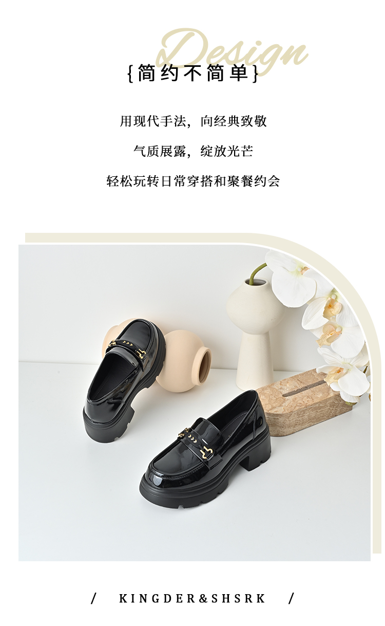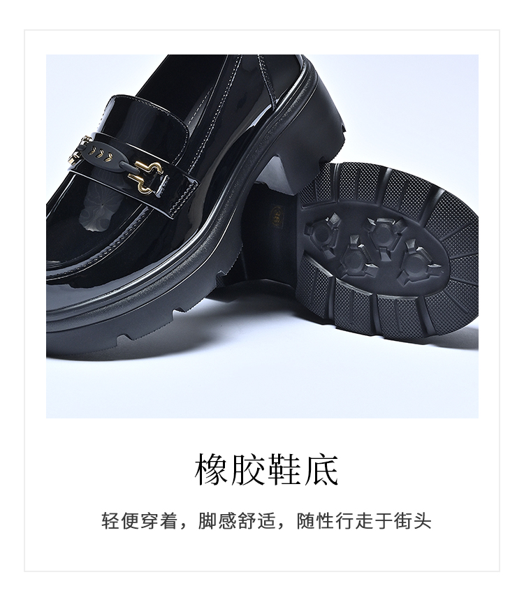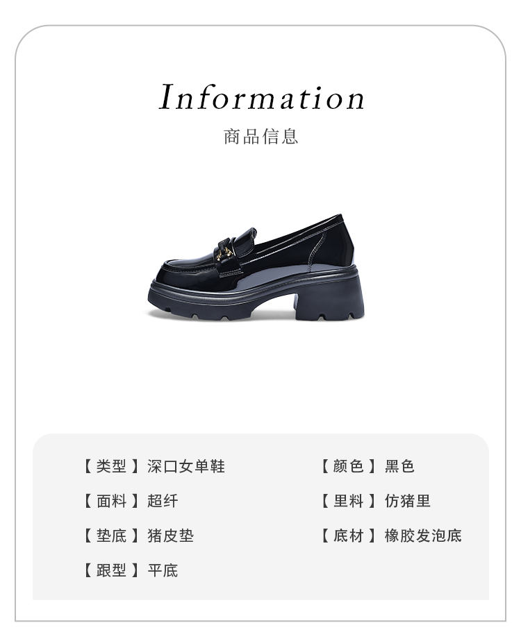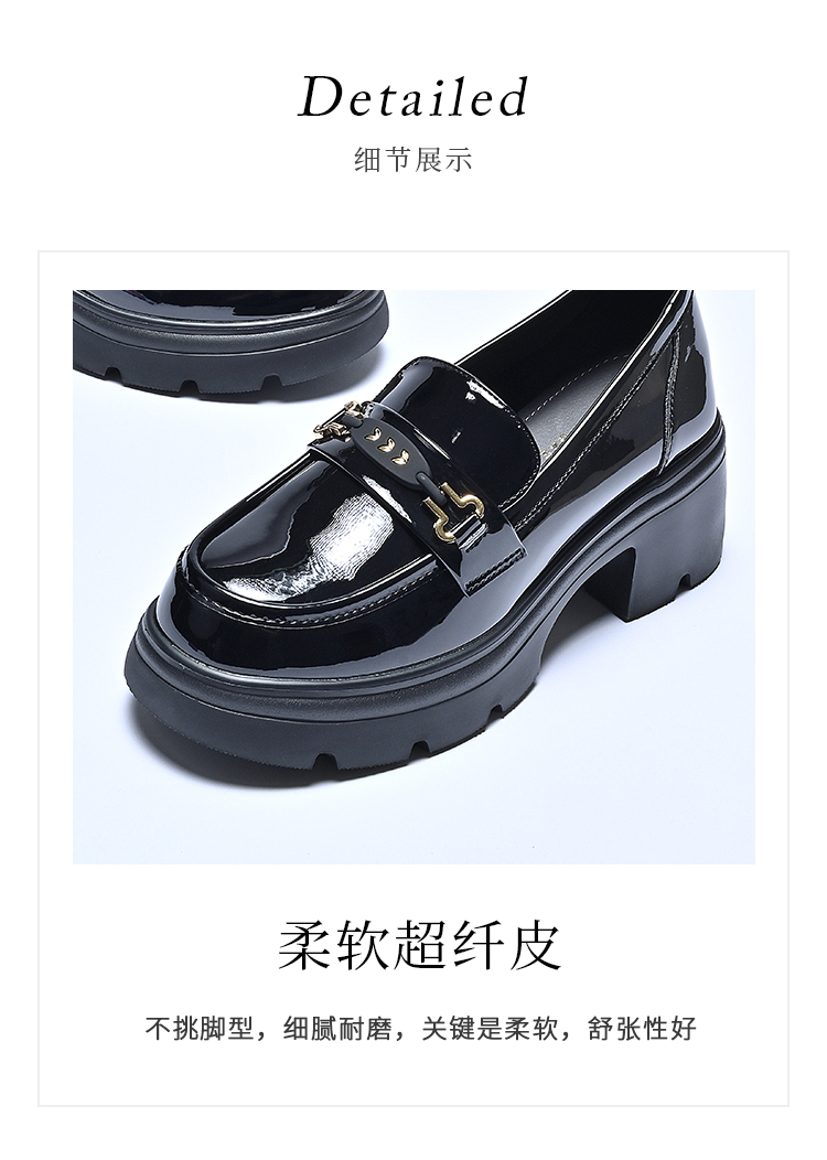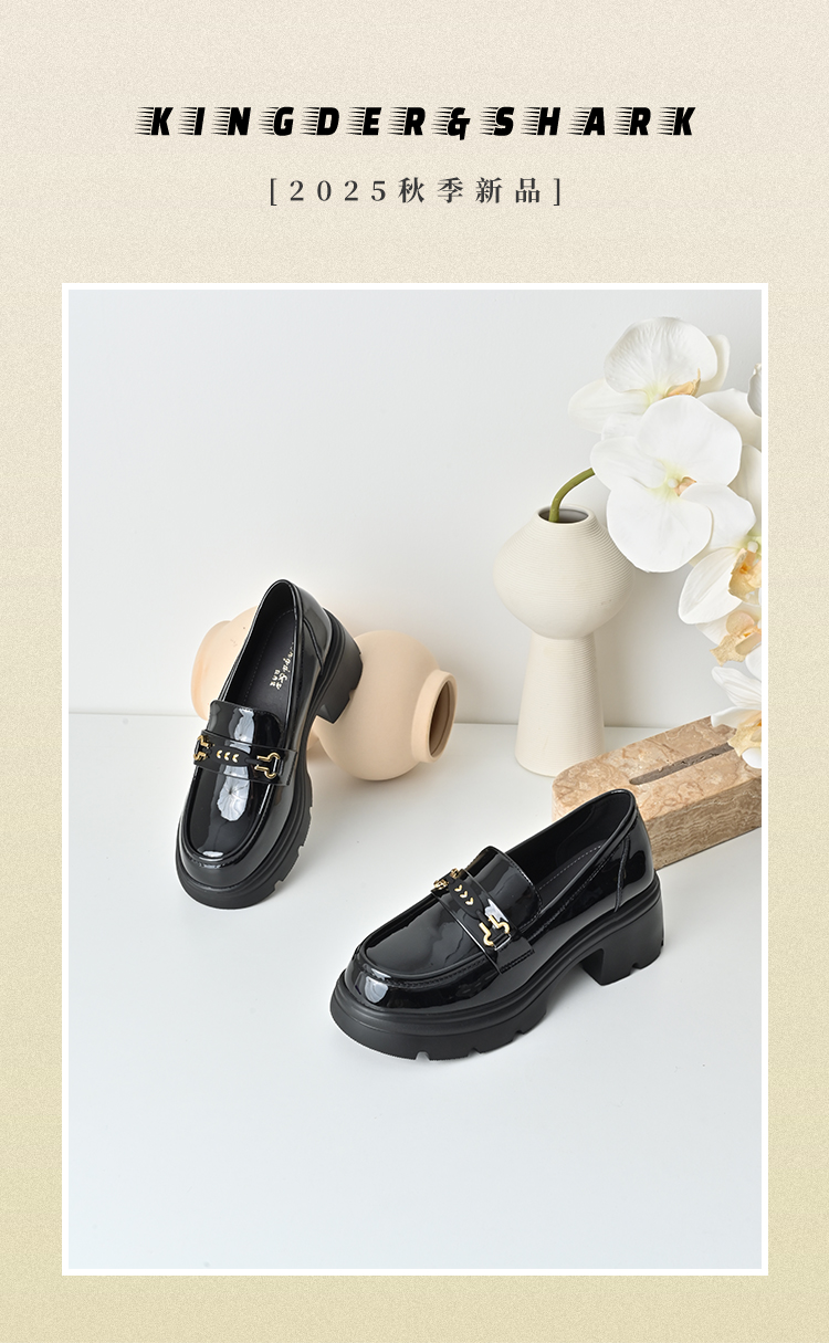 经典鲨2025年秋季专柜新款百搭黑色圆头通勤中粗跟乐福鞋女KW163-537131