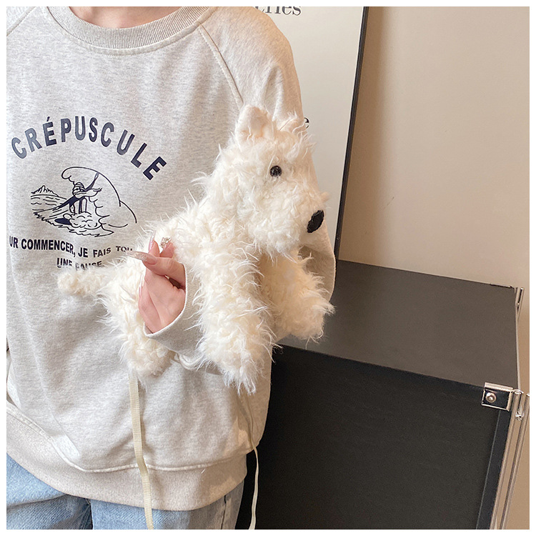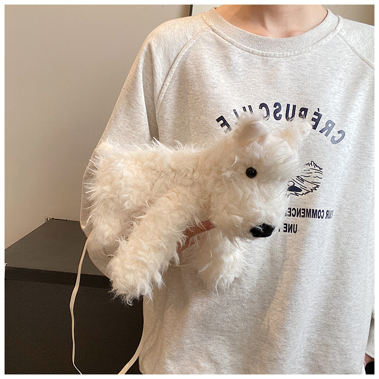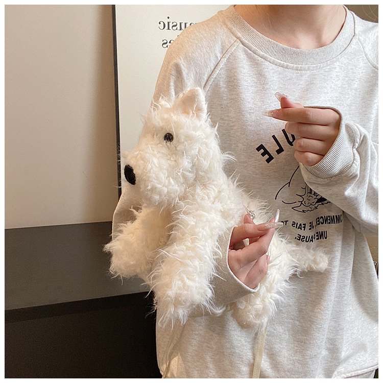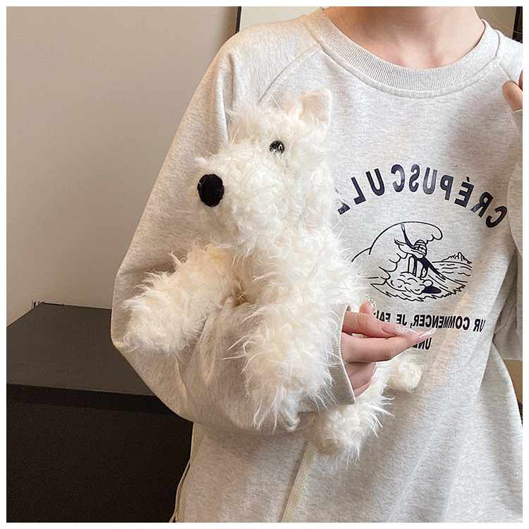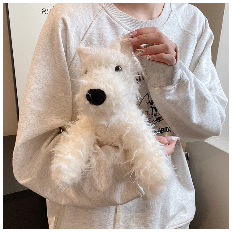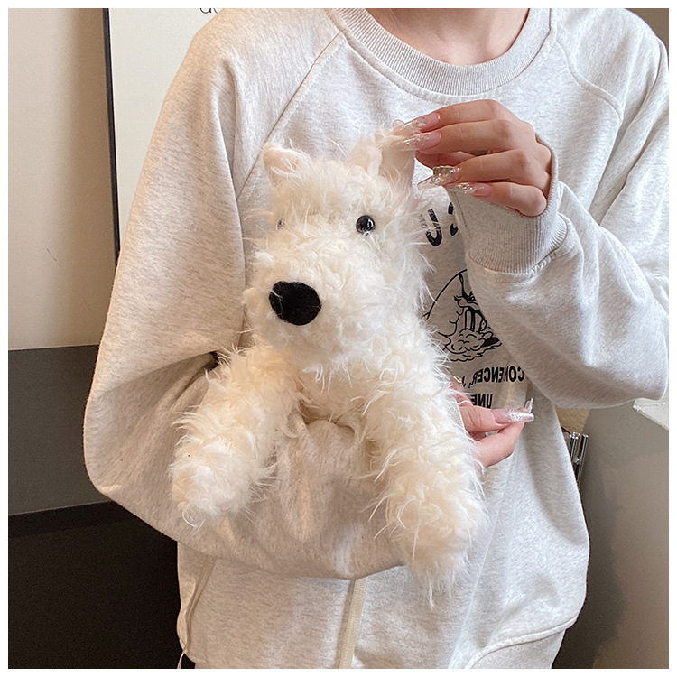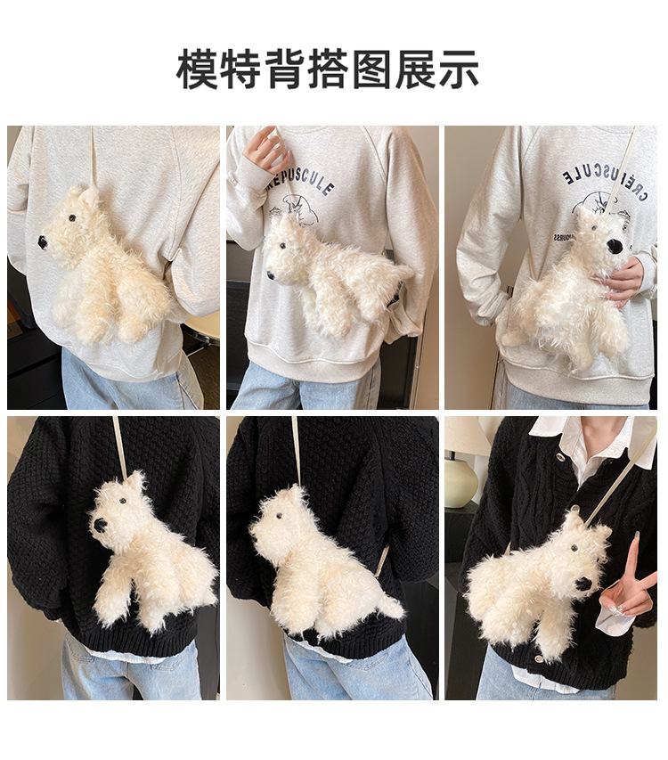 【秋冬新款,超萌毛绒公仔包包】高地新款毛绒玩具小狗公仔,柔软舒适内部容量大,可爱卡通玩偶斜挎包礼物手提QQ新年礼盒年货礼盒