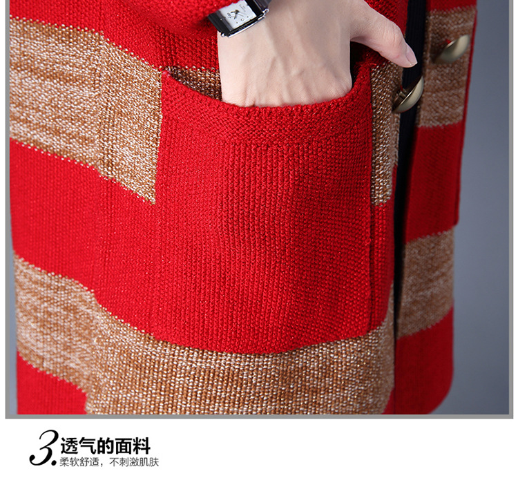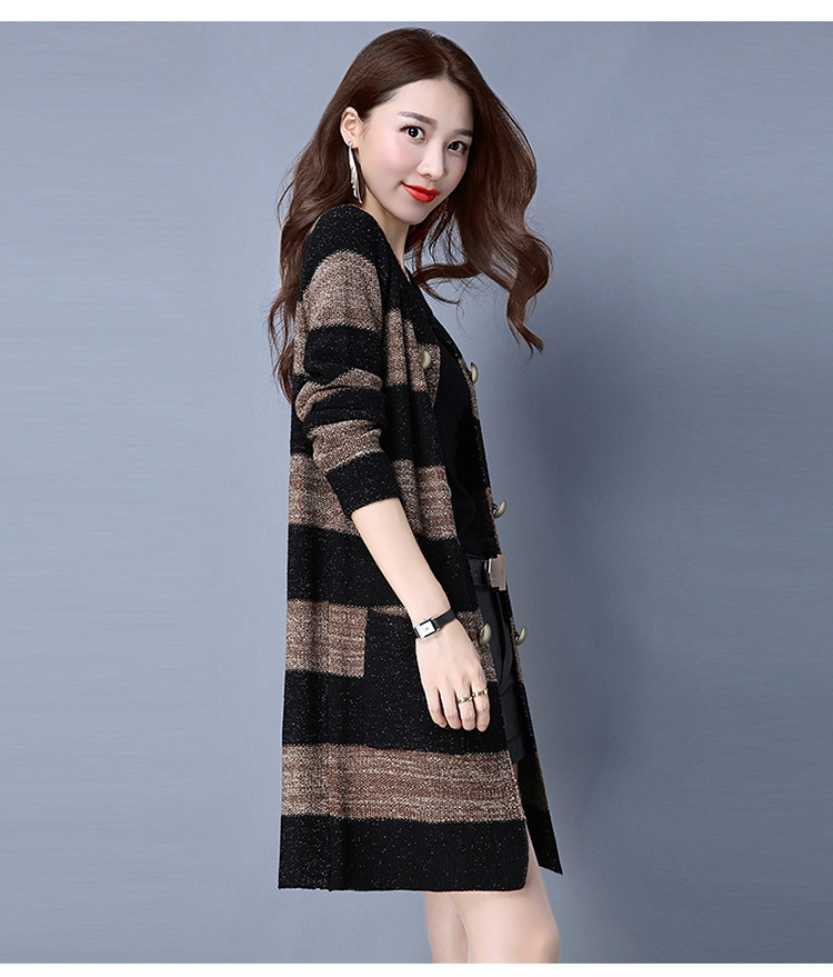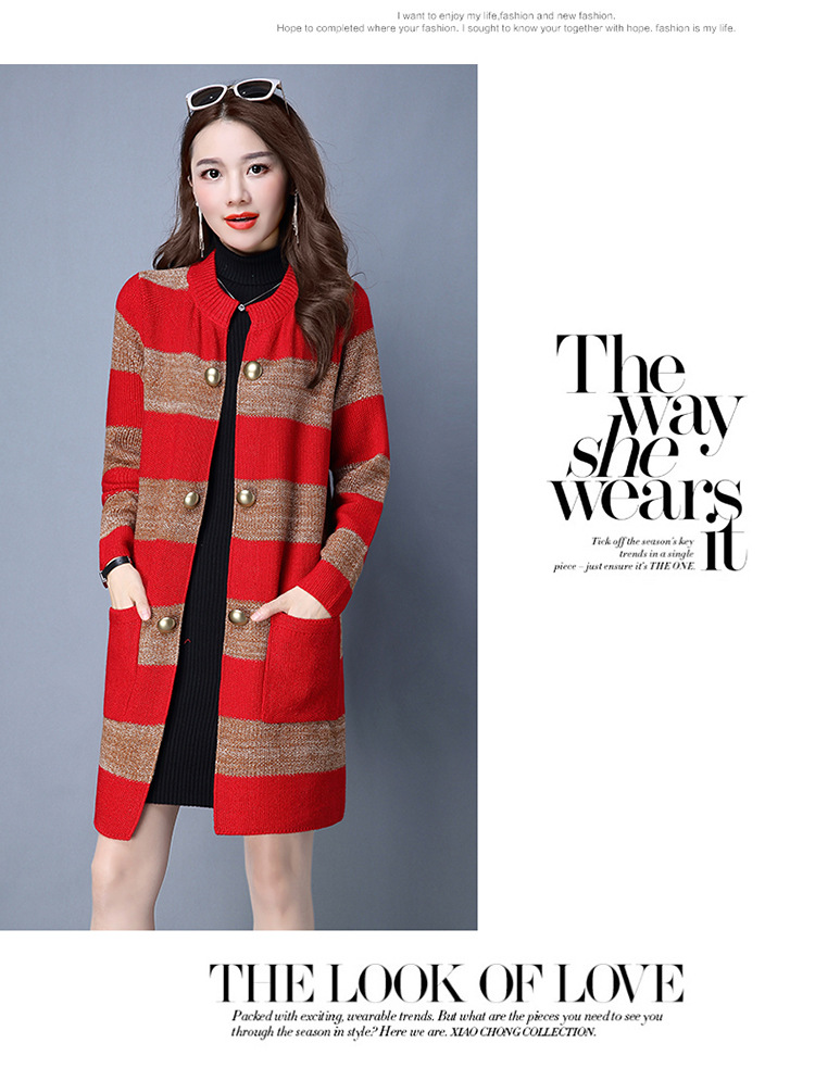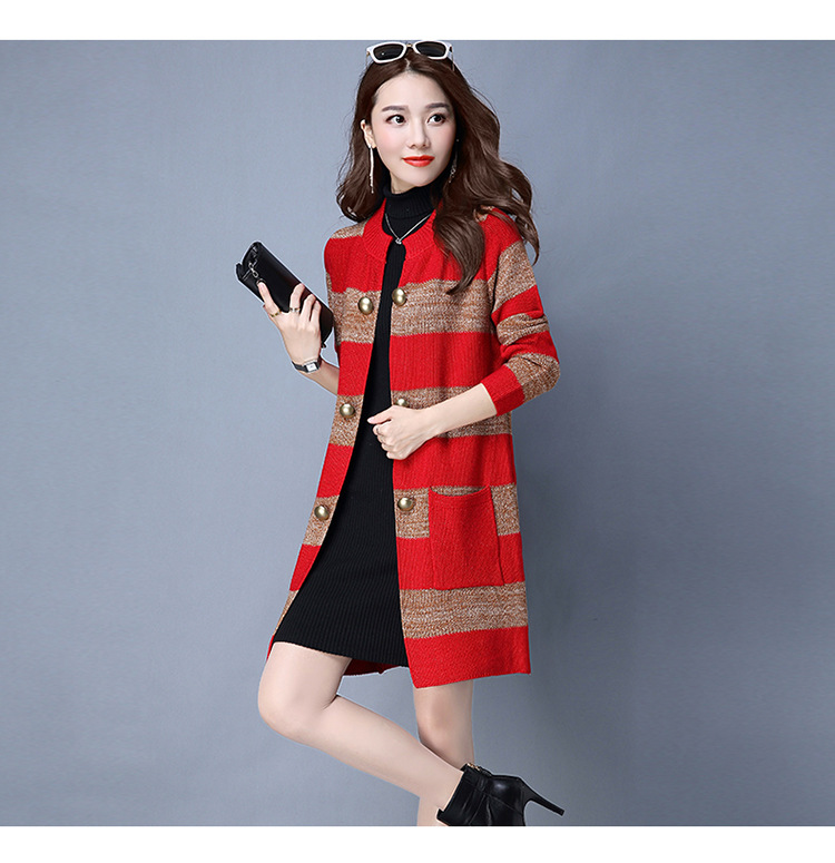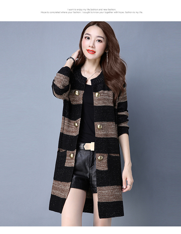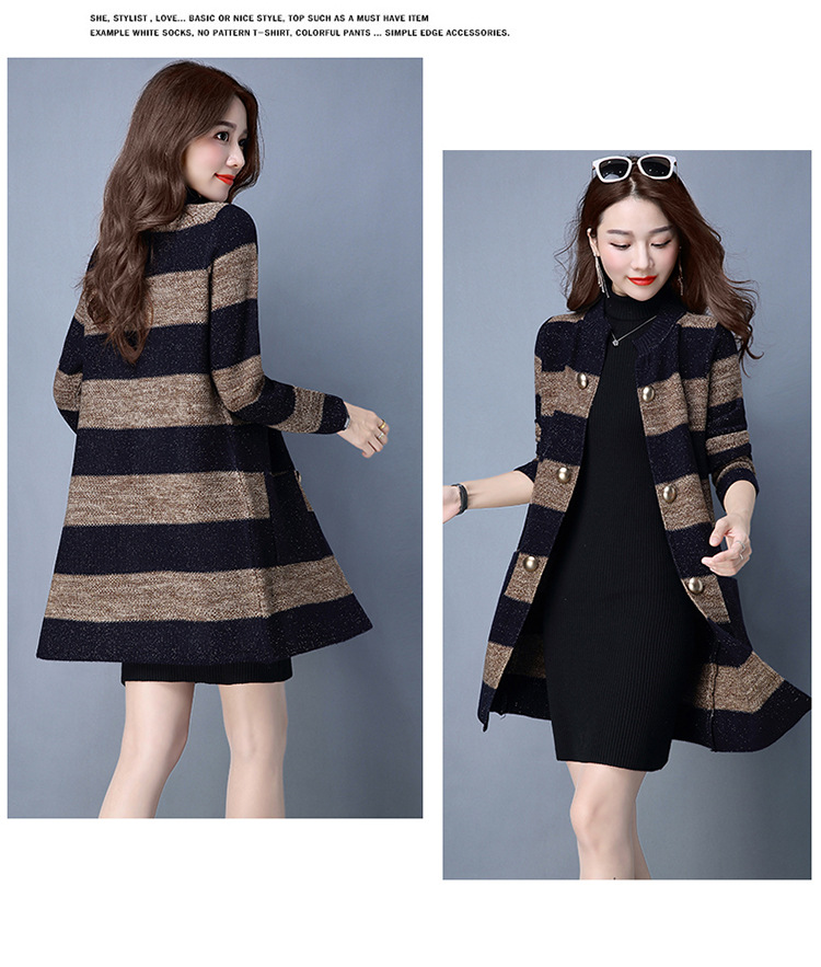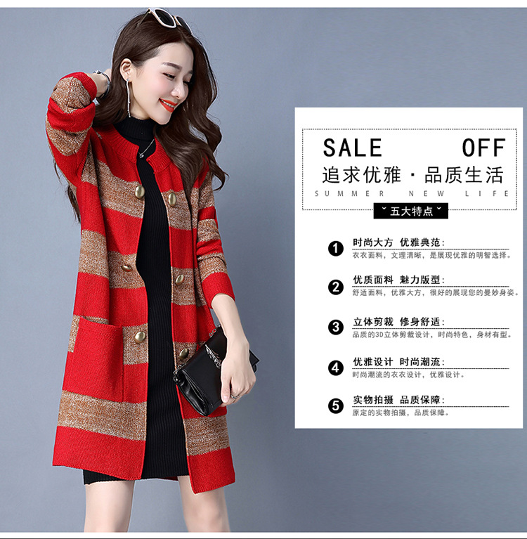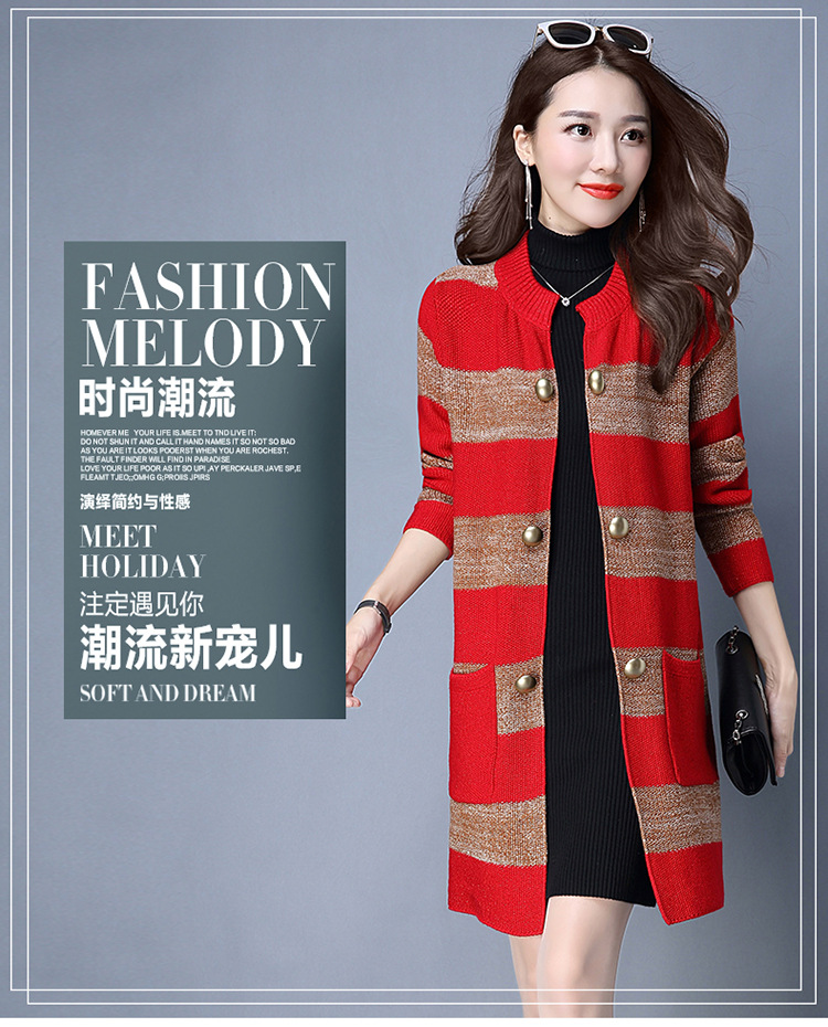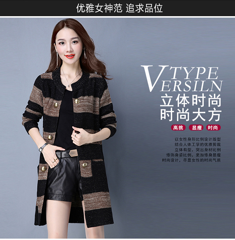 【服饰鞋包】新款女式外套中长款女装毛衣开衫条纹风衣针织衫
