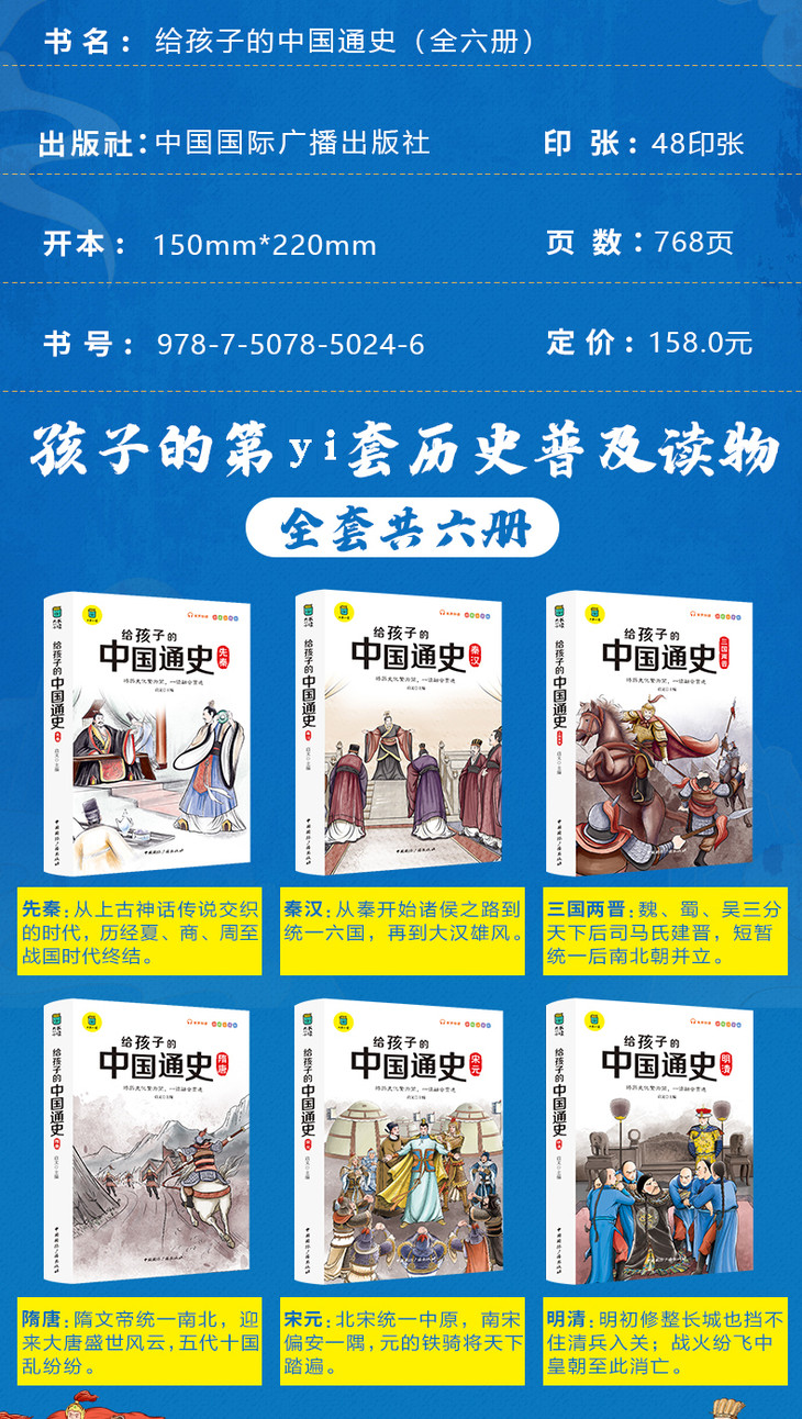 彩图注音版全6册给孩子的中国通史中国历史故事历史人物典故历史书籍小学生一二年级课外书阅读推荐经典推荐