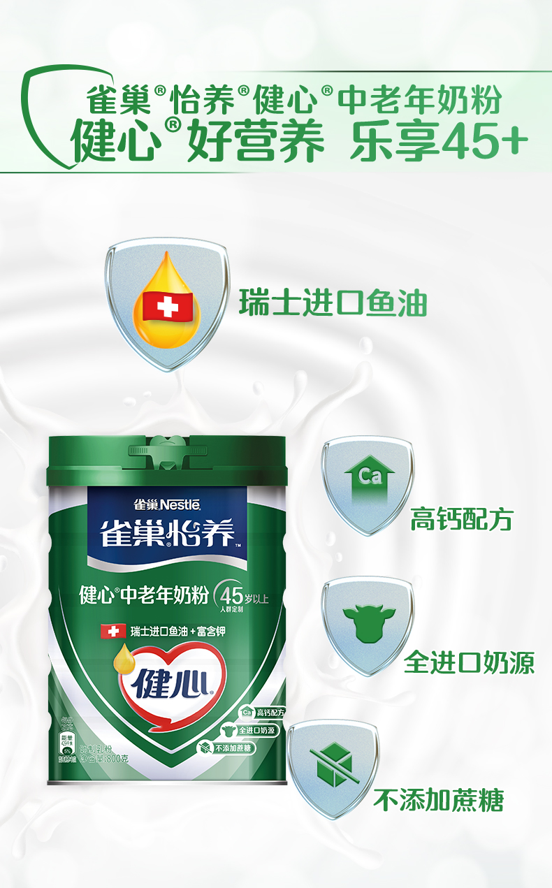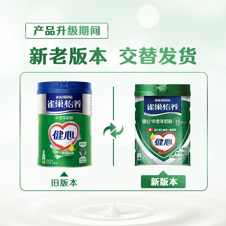 【礼盒装】雀巢怡养健心中老年高钙奶粉800g*2罐=1600g礼盒装(新老包装随机发货)