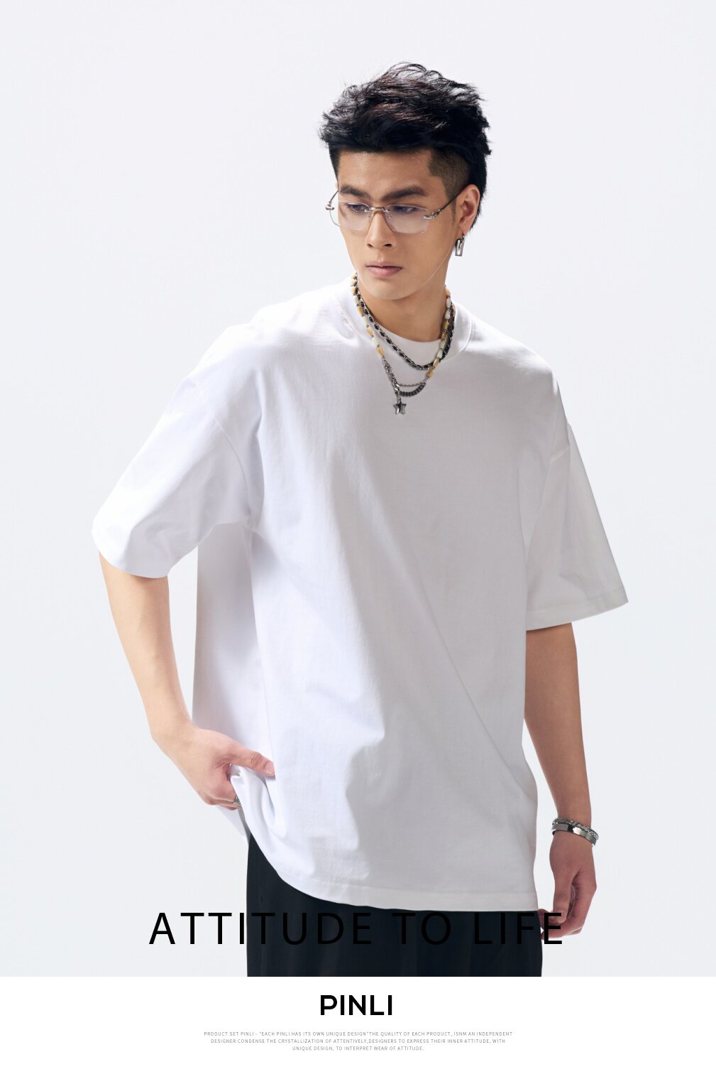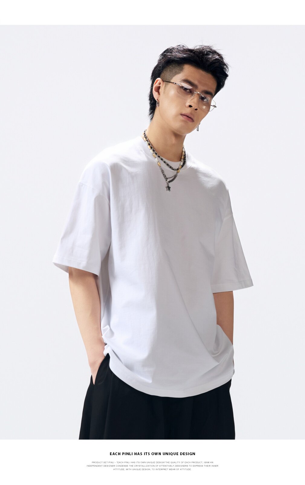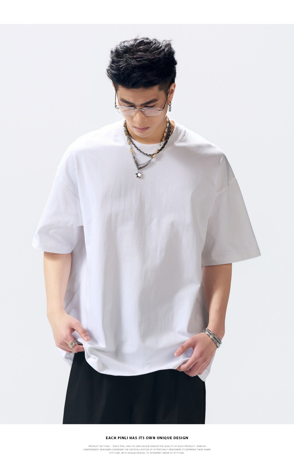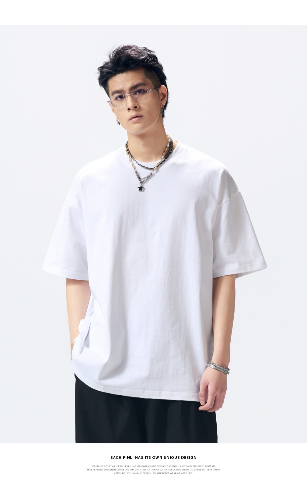 PINLI品立2026夏季新款男士重磅厚版宽松圆领落肩袖短袖T恤上衣潮GD262111031