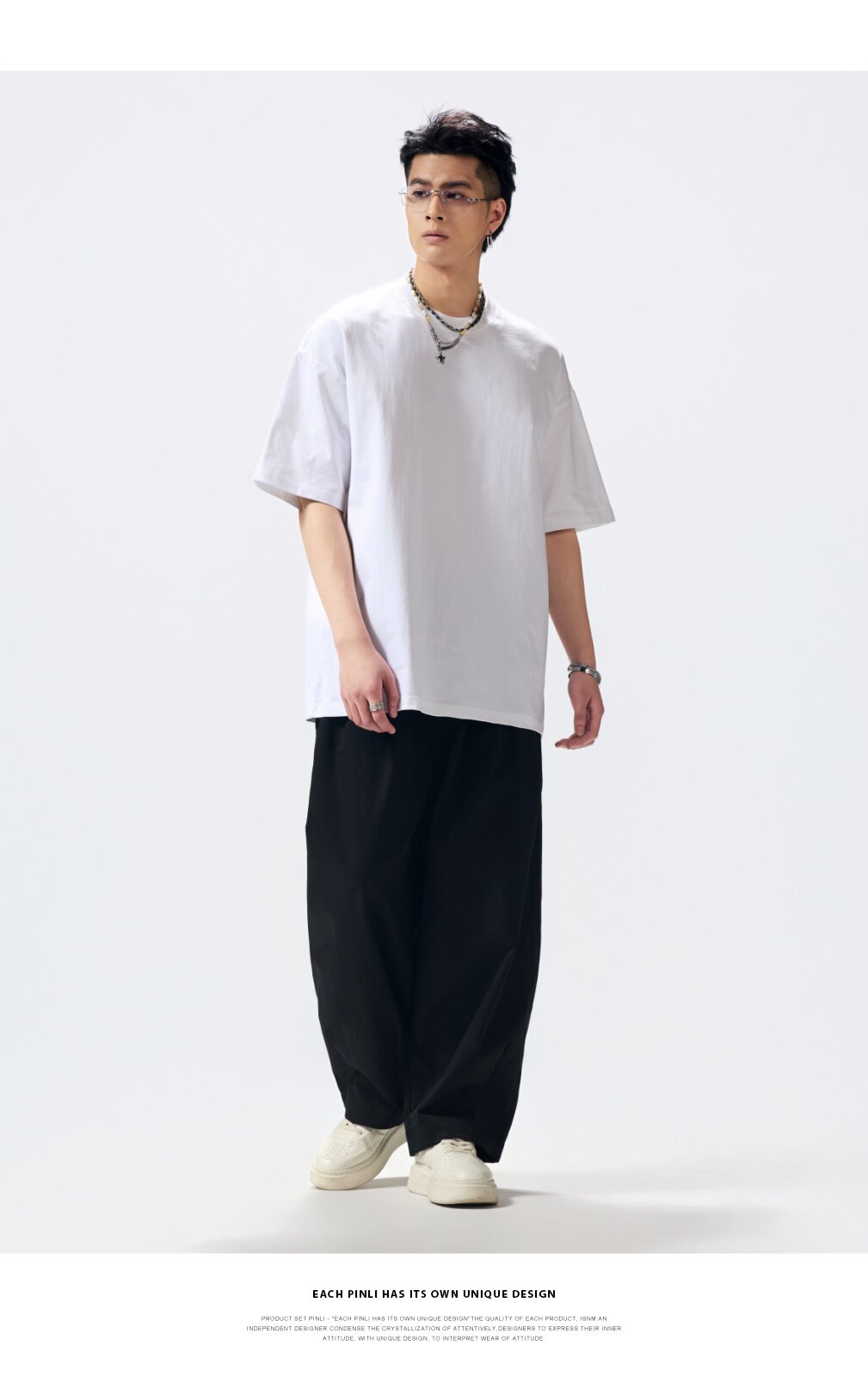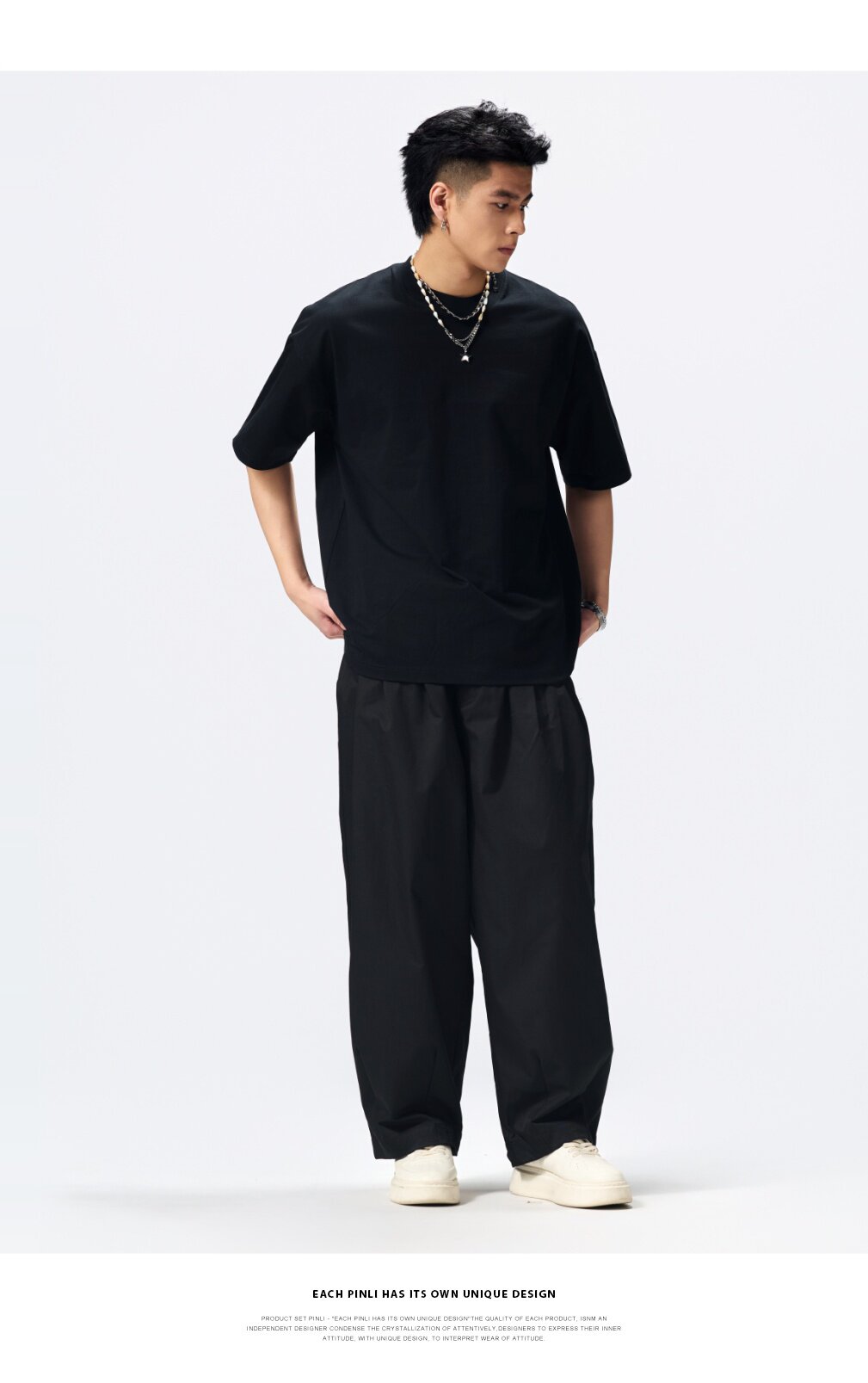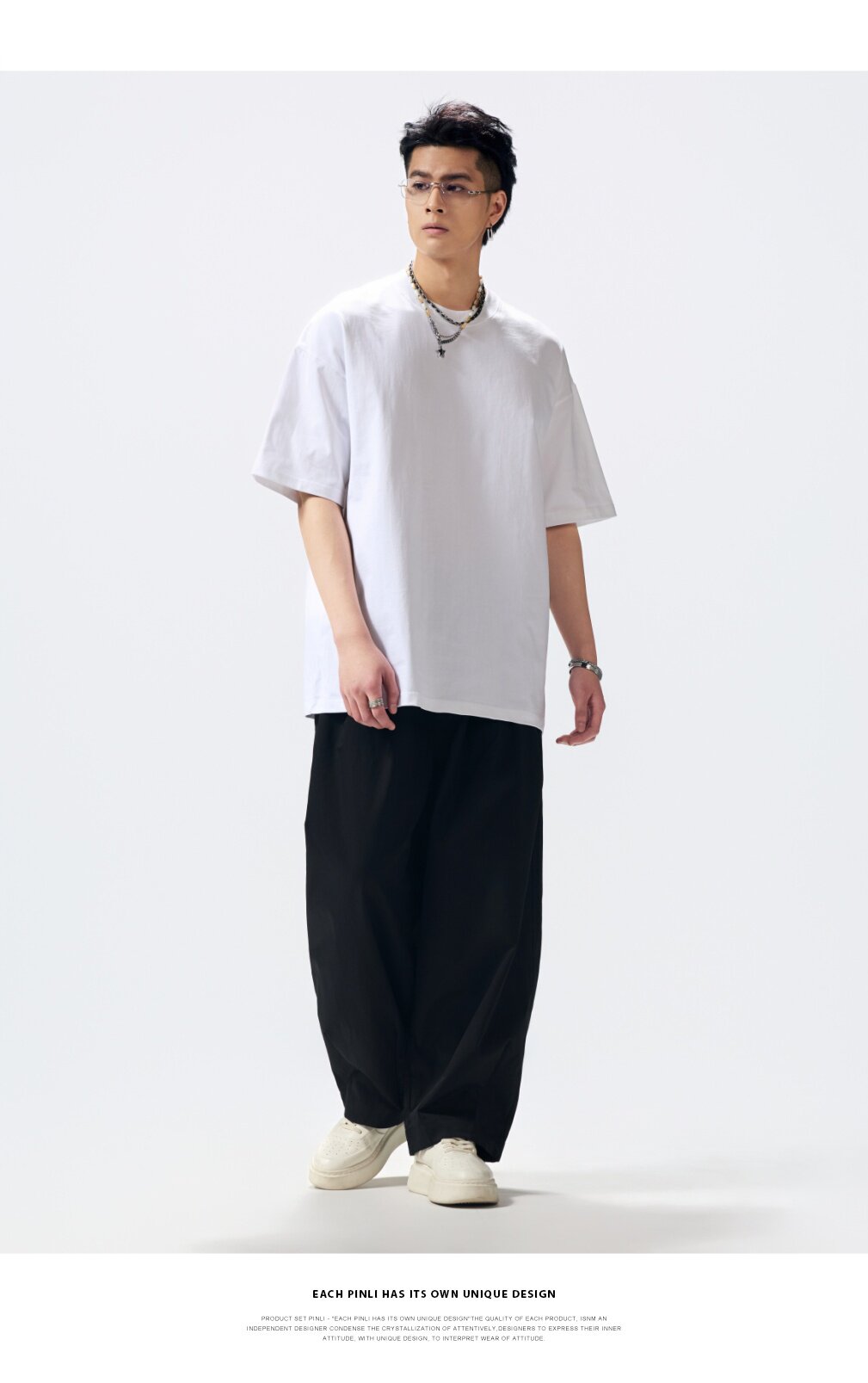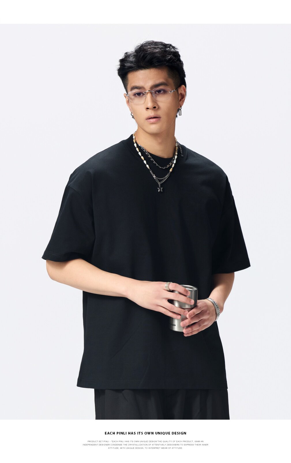 PINLI品立2026夏季新款男士重磅厚版宽松圆领落肩袖短袖T恤上衣潮GD262111031