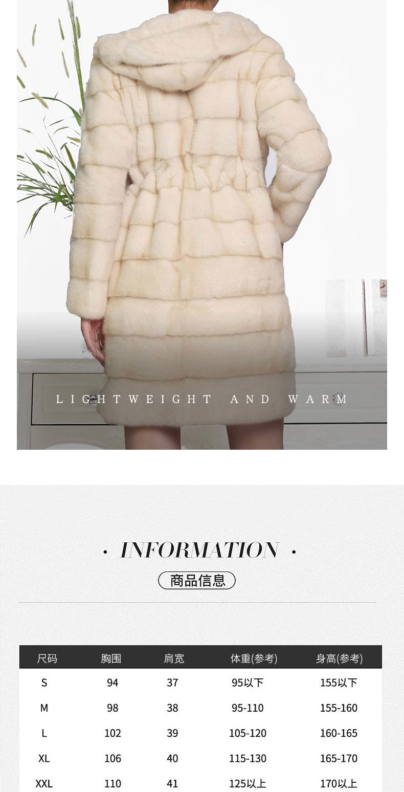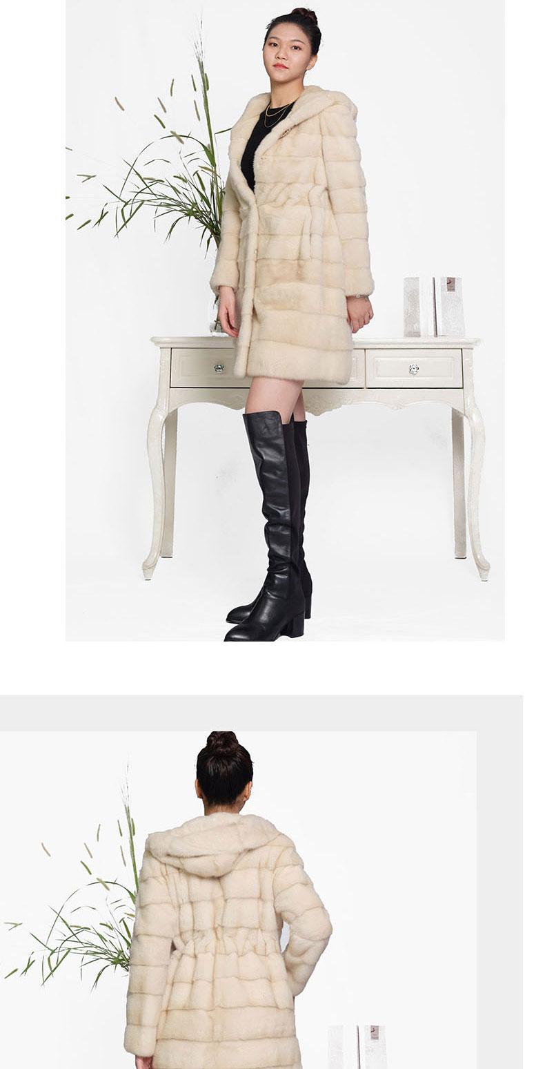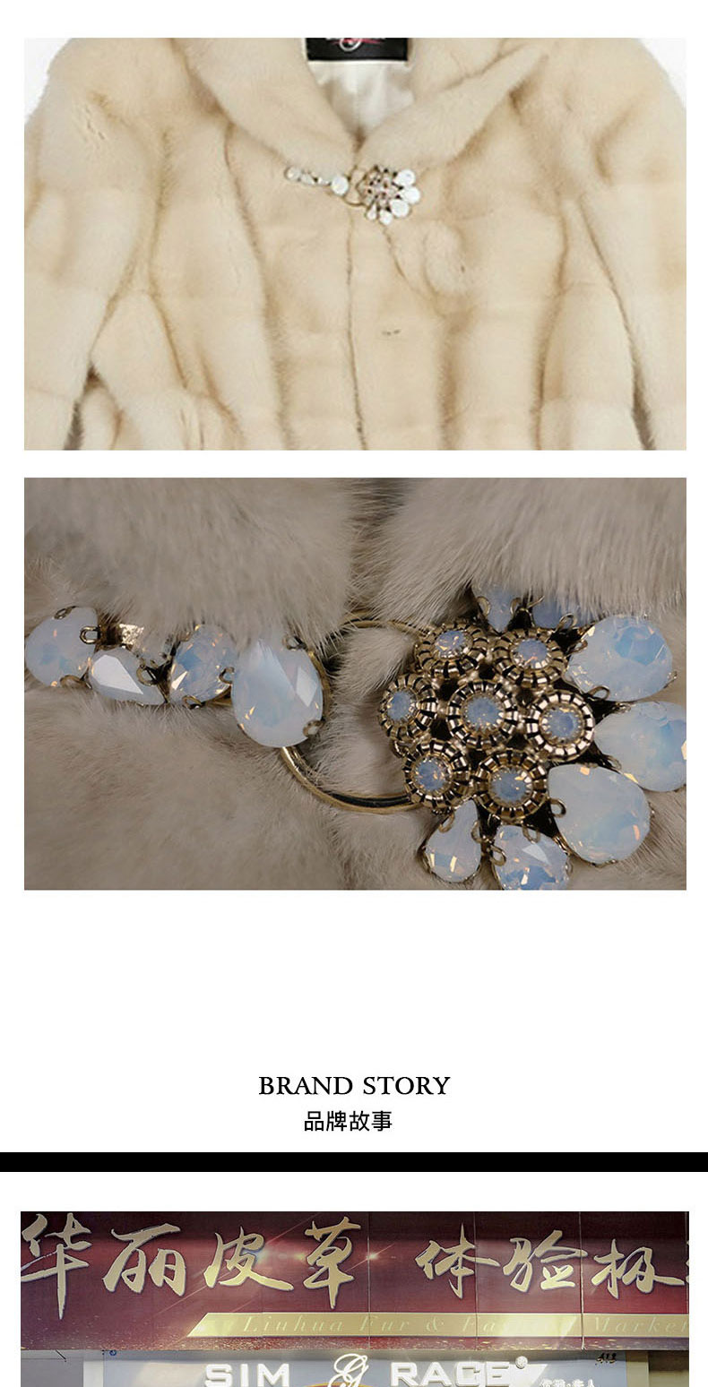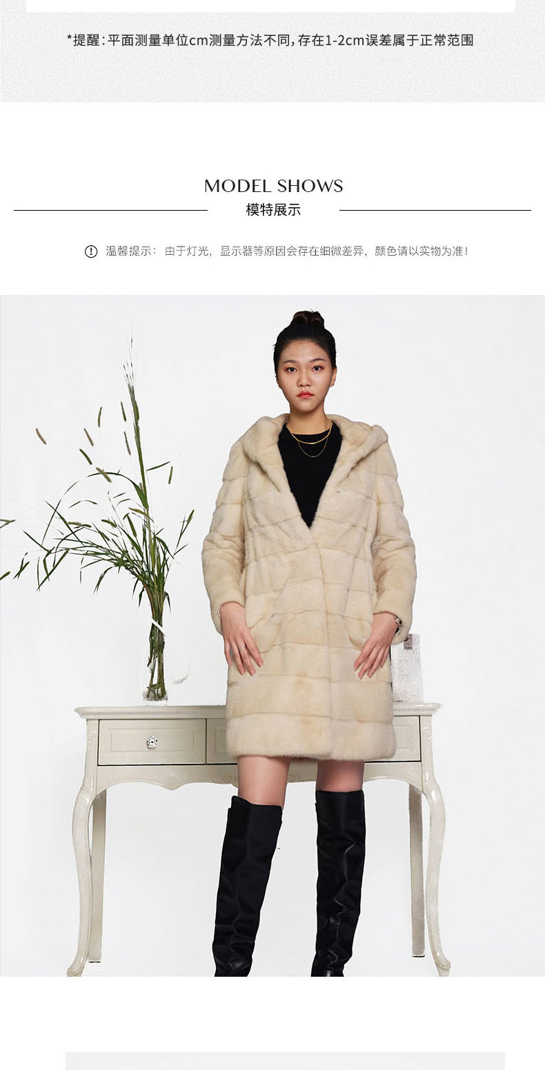 SIM GRACE 优雅夫人 珍珠色进口水貂中长款高贵大气横排工艺连帽外套