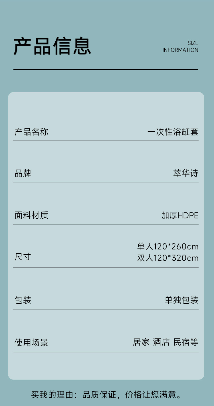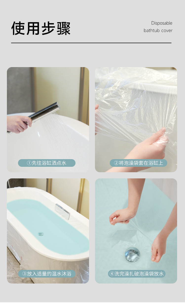 【320*120cm】一次性浴缸套1包 周长640 旅行超大加厚洗澡浴盆塑料膜