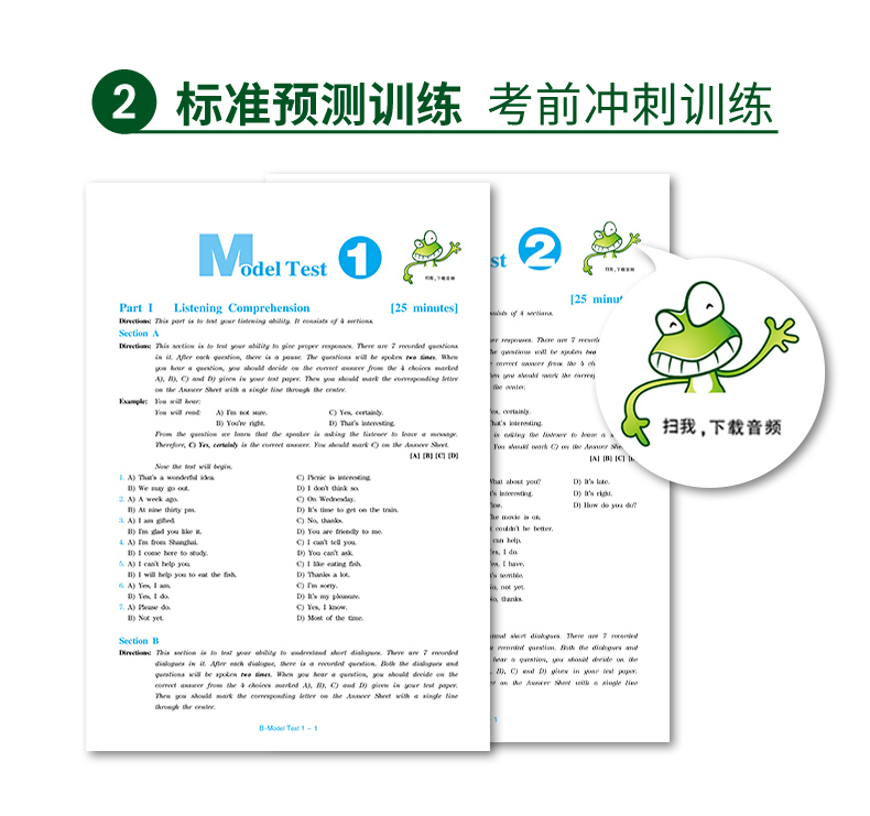 4. 扫码听听力,含英语B级真题、预测题、听力专项指导的听力部分,以及高频词汇录音;