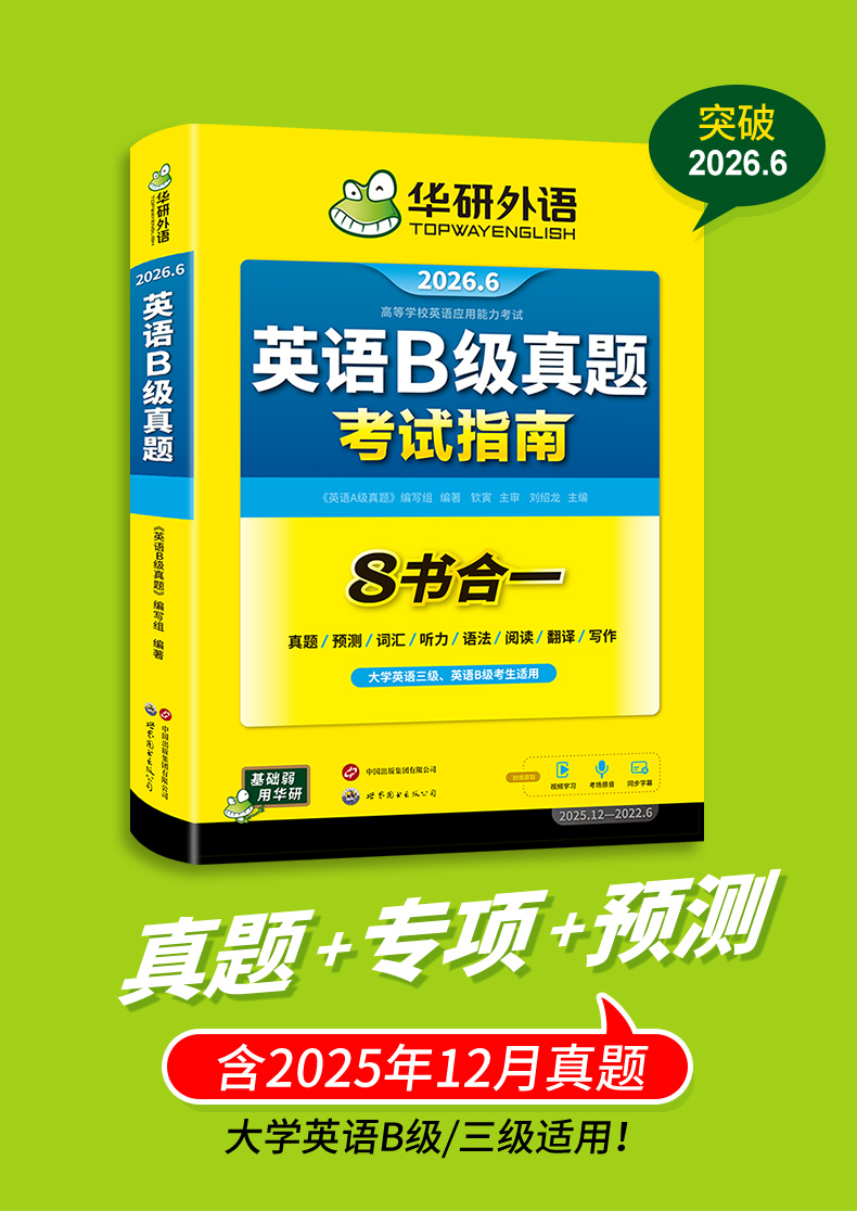 华研外语 英语b级考试真题试卷 备考2026年6月大学英语三级AB级英语3级应用能力考试复习资料教材历年真题预测词汇单词听力阅读书