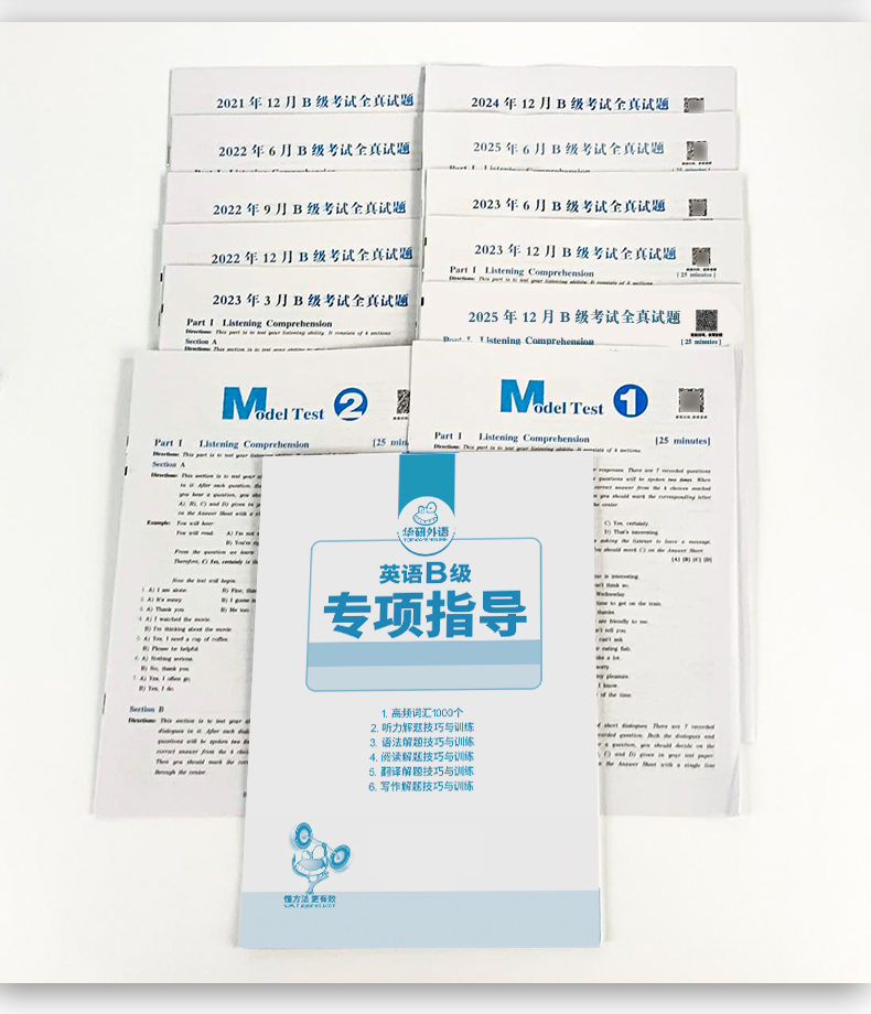 英语B级真题、英语B级预测试卷、高频词汇及听力专项训练内容录音