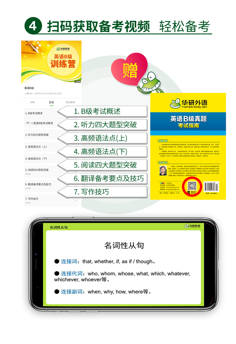 6. 封底扫码免费学习英语B级专项指导视频课程。
