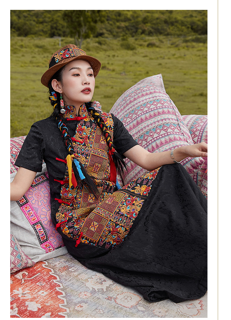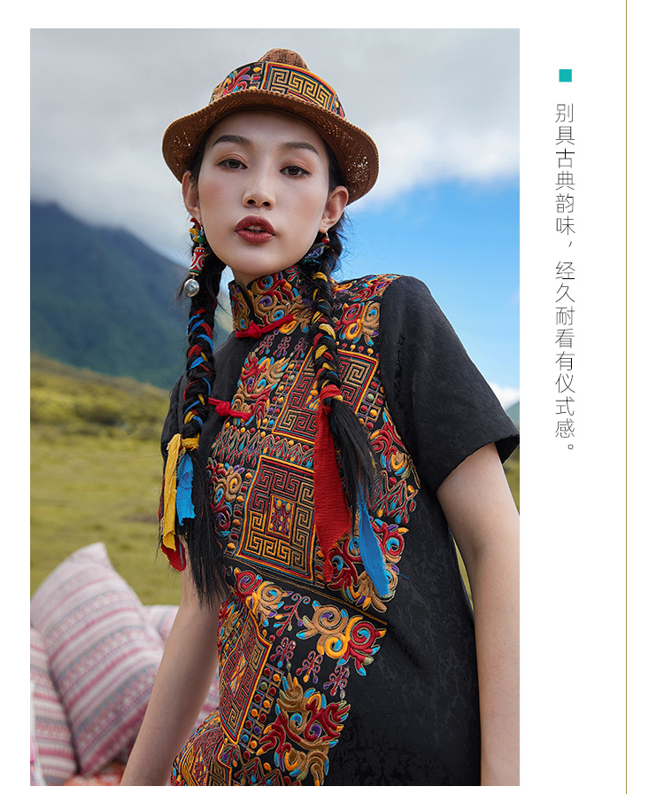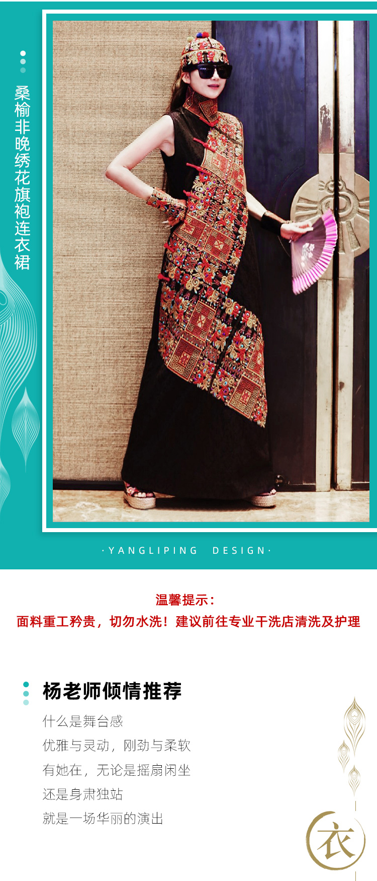 桑榆非晚绣花旗袍连衣裙 |杨丽萍老师同款 |无袖 短袖