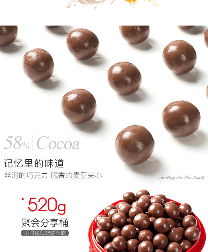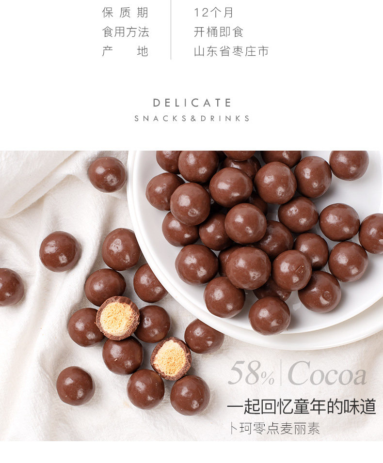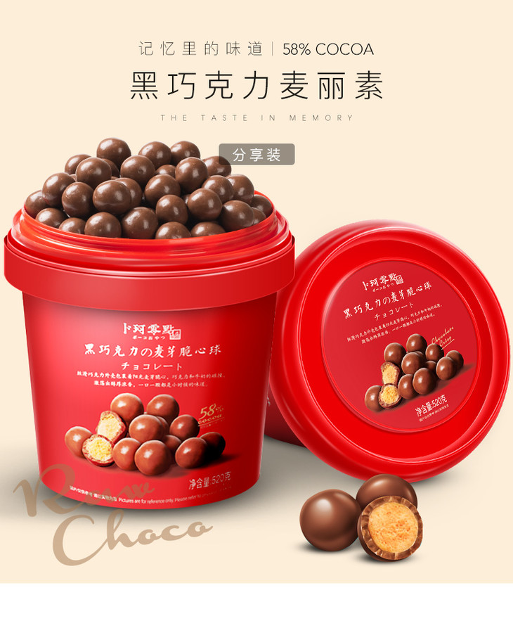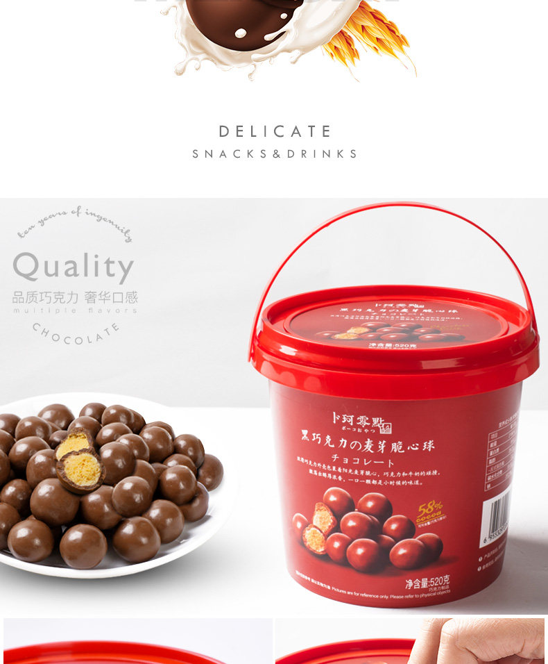 卜珂黑巧克力麦芽脆心球520g(8A)
