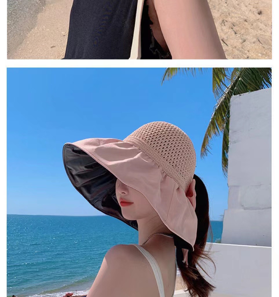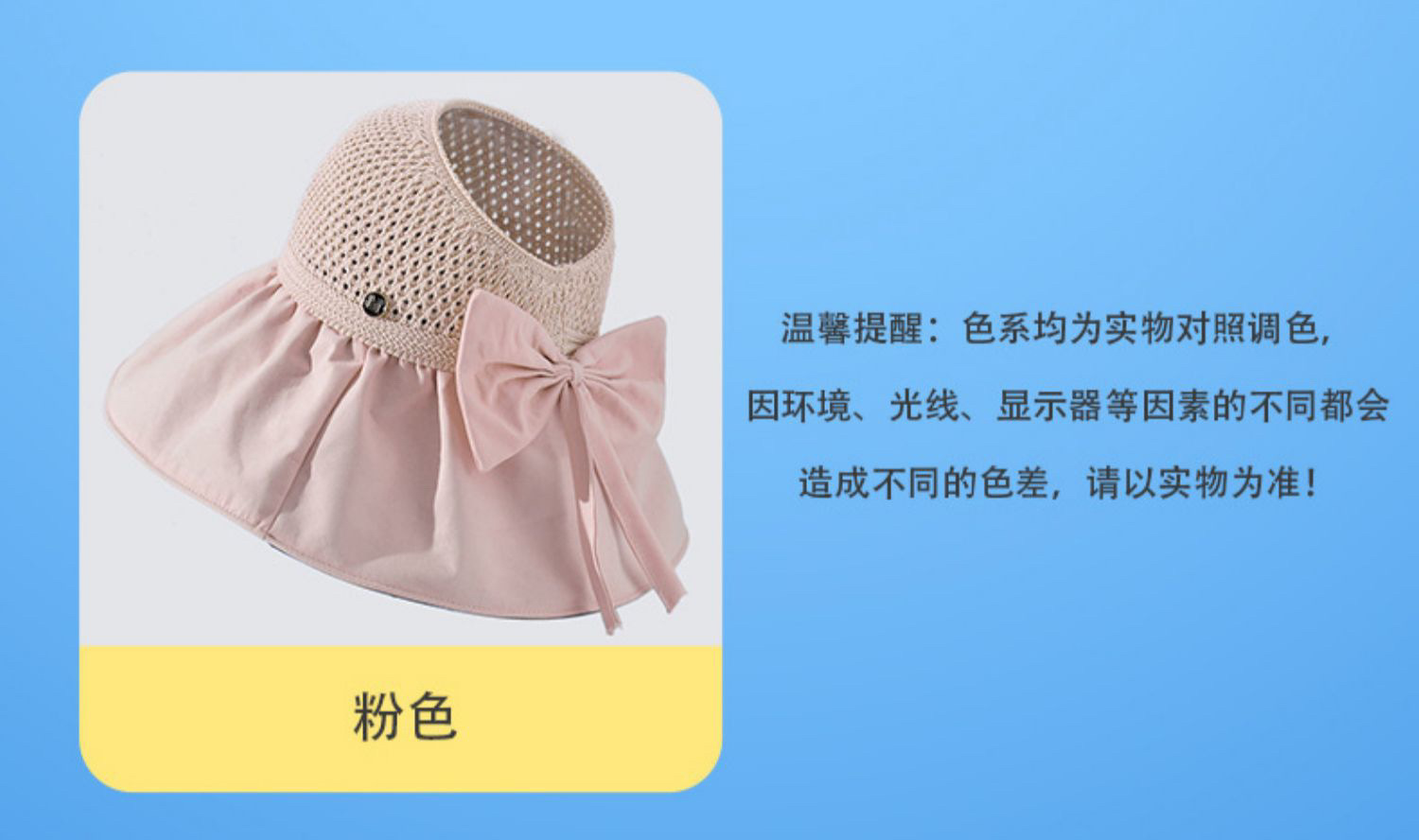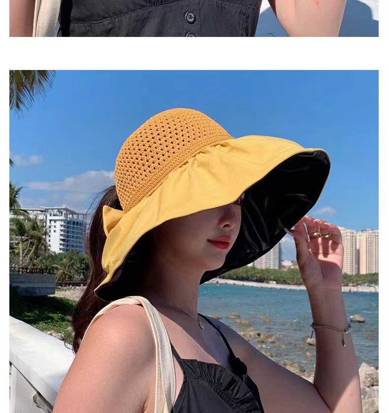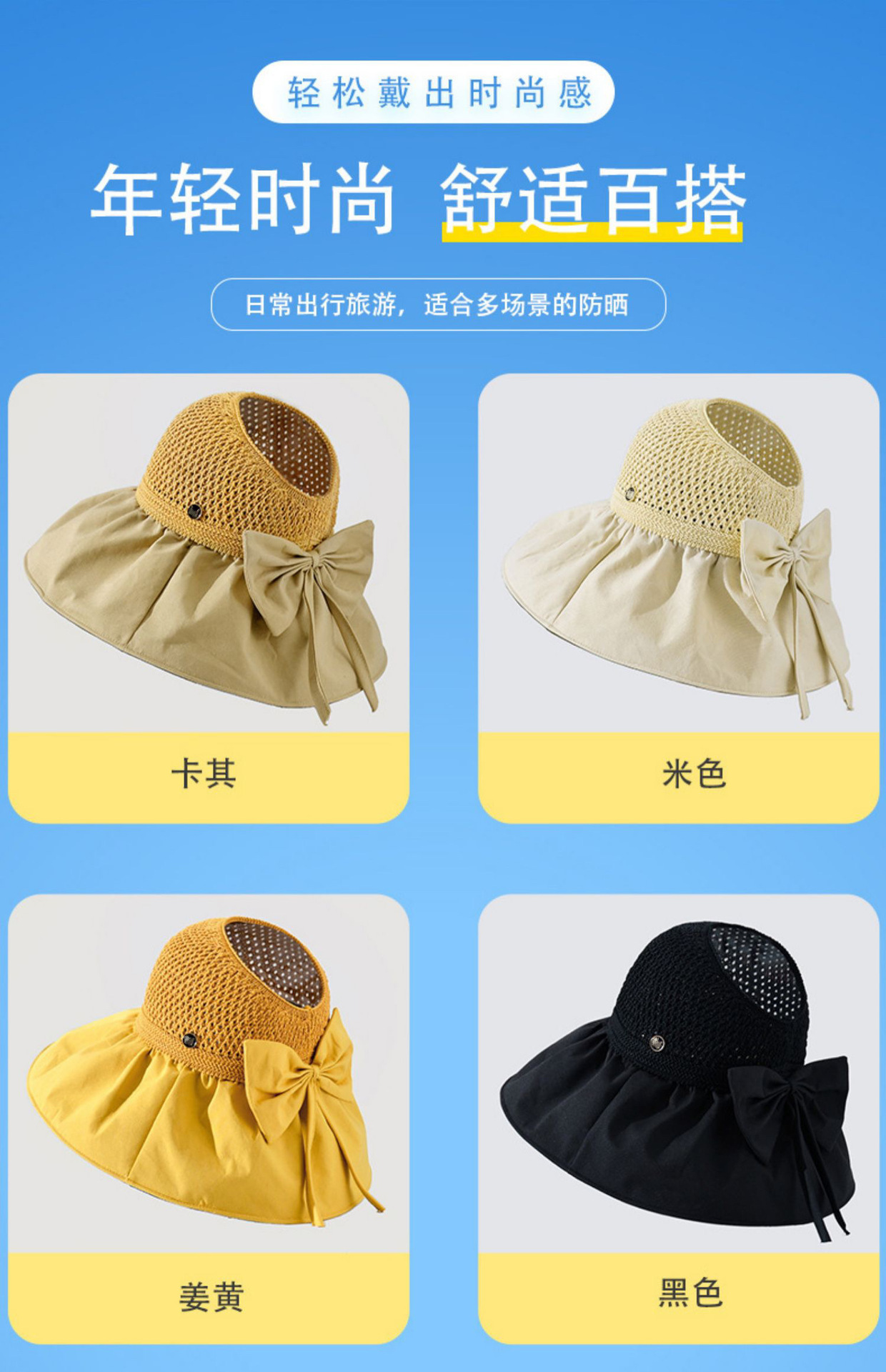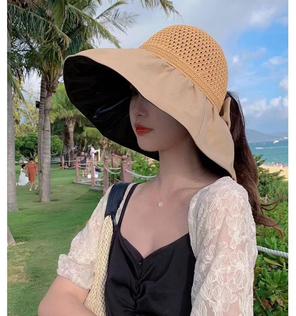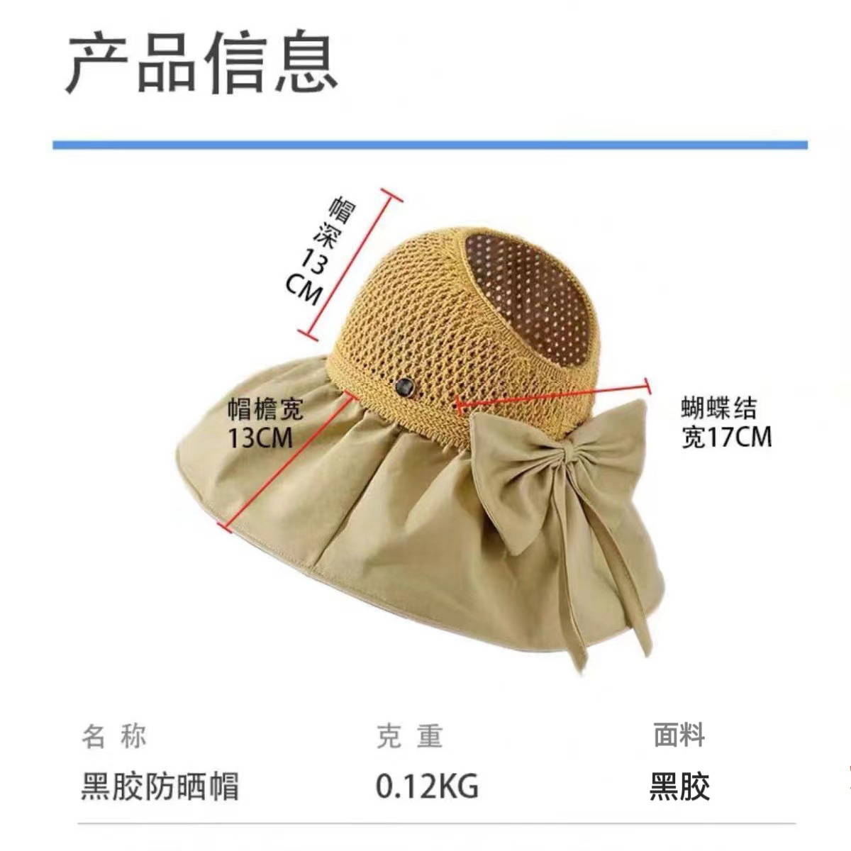 【夏日里遇见美好的你!韩版蝴蝶结 防晒空顶帽】可卷折方便携带,头顶镂空设计,透气凉爽,编织平整有型,简易调节绳,帽子女时尚夏季渔夫帽户外太阳帽黑胶遮阳帽