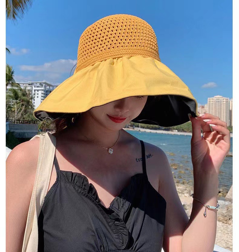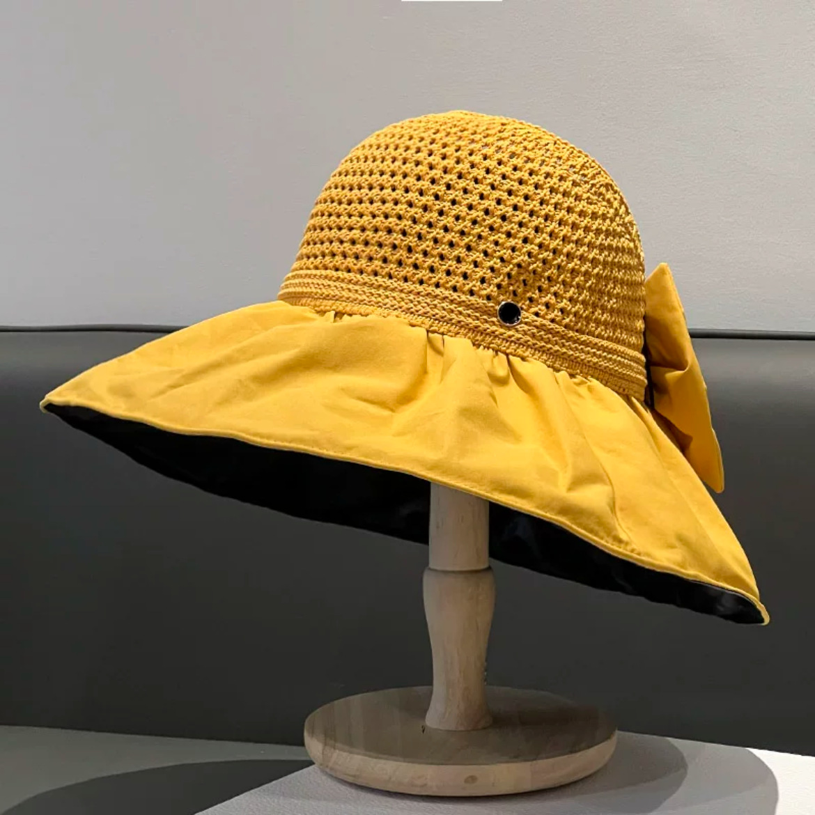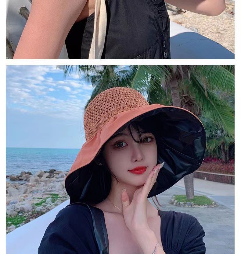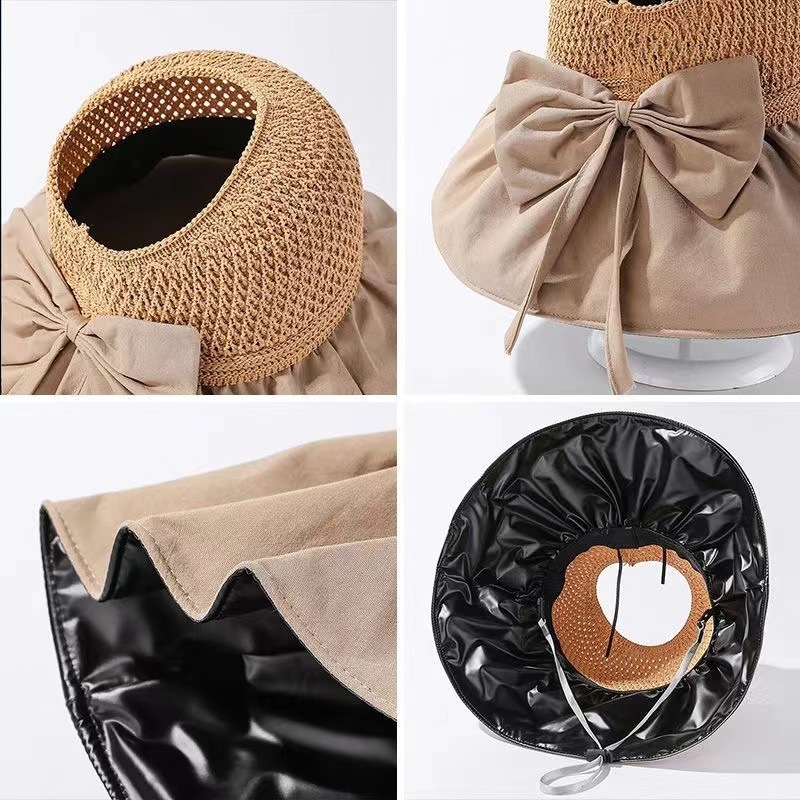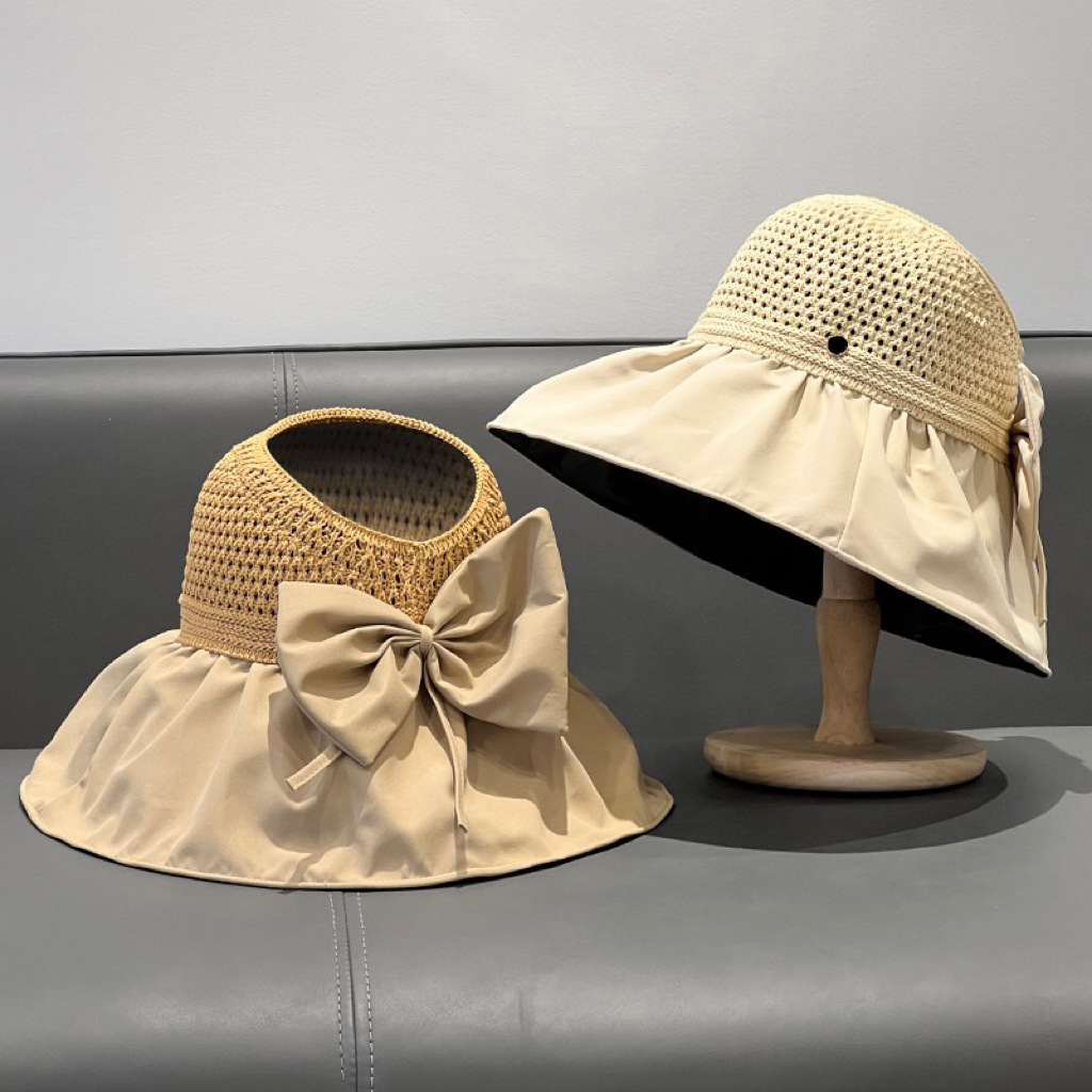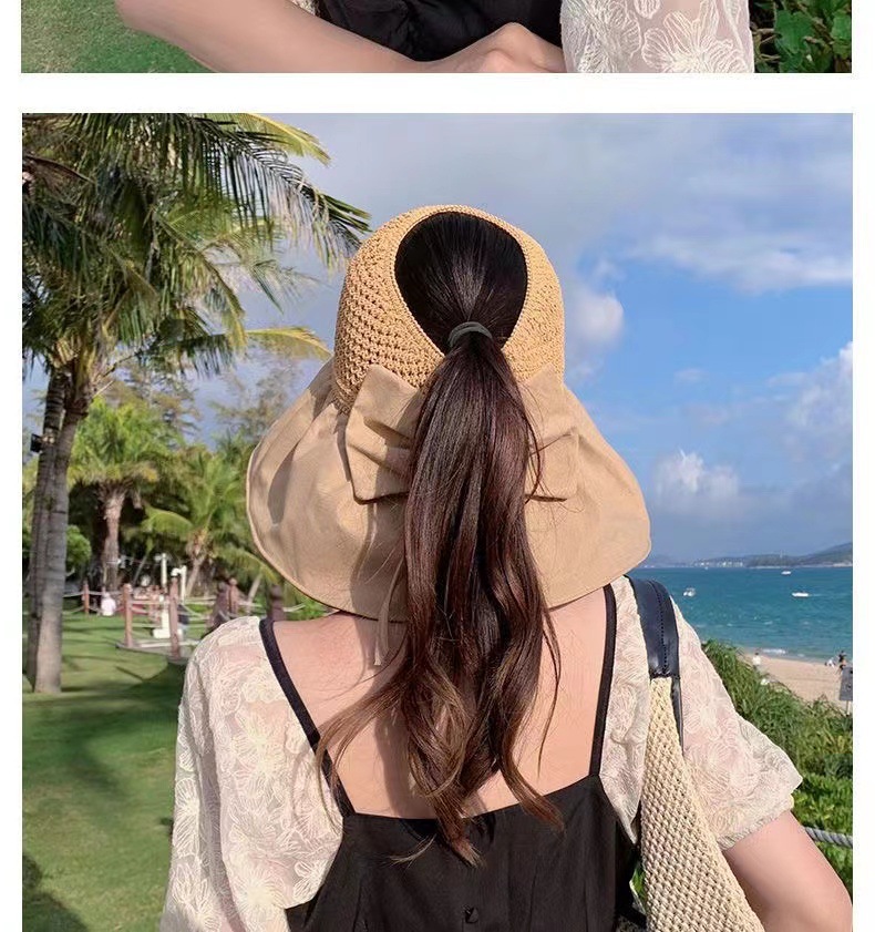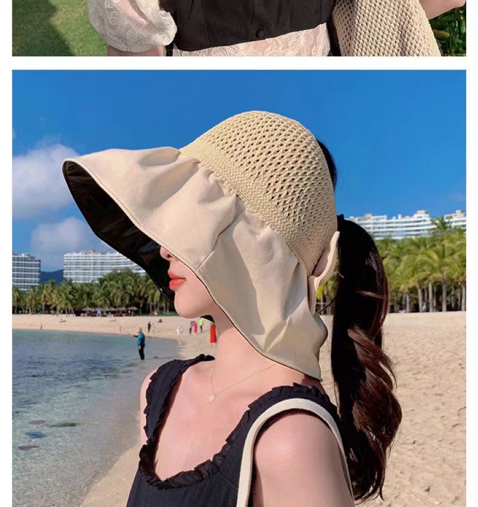 【夏日里遇见美好的你!韩版蝴蝶结 防晒空顶帽】可卷折方便携带,头顶镂空设计,透气凉爽,编织平整有型,简易调节绳,帽子女时尚夏季渔夫帽户外太阳帽黑胶遮阳帽