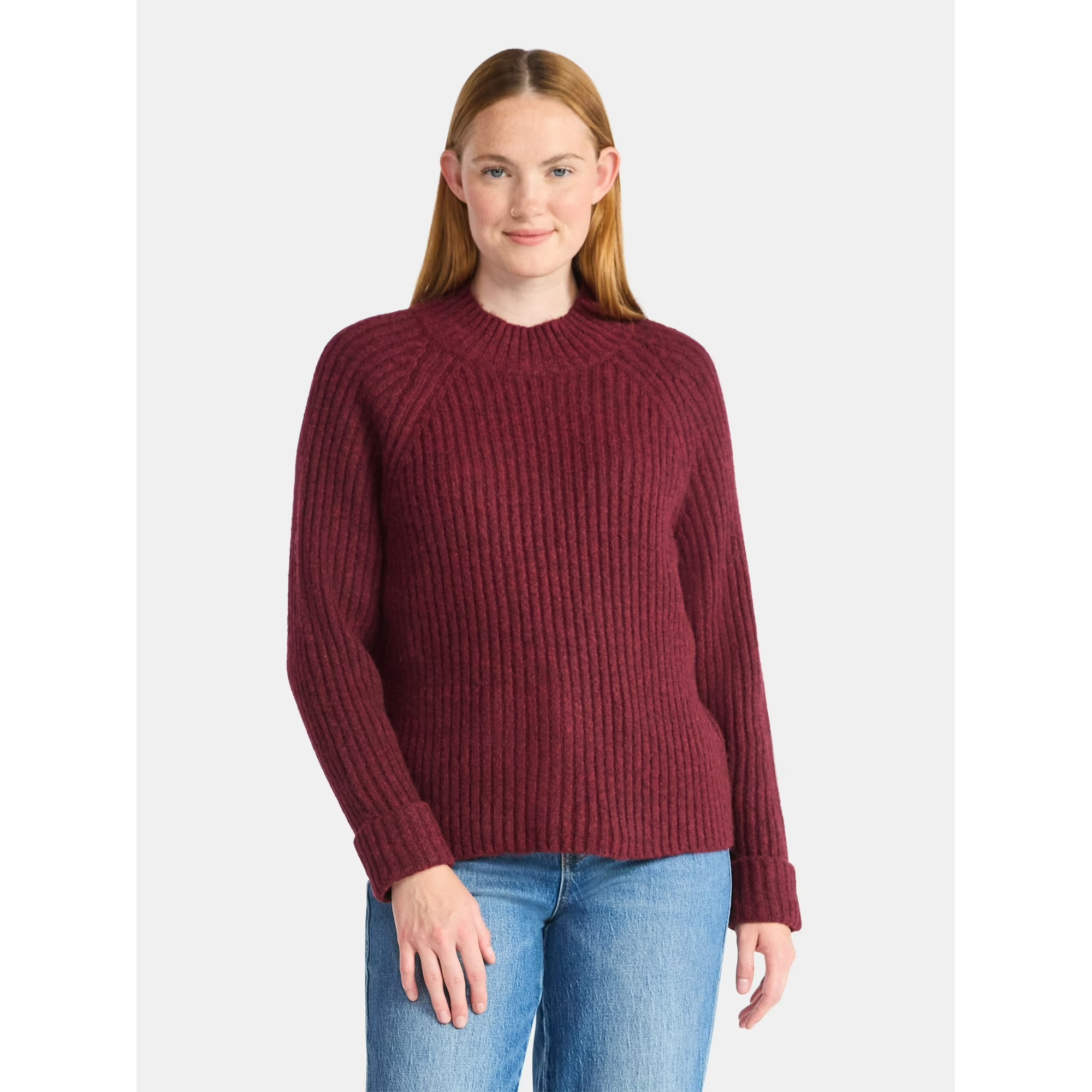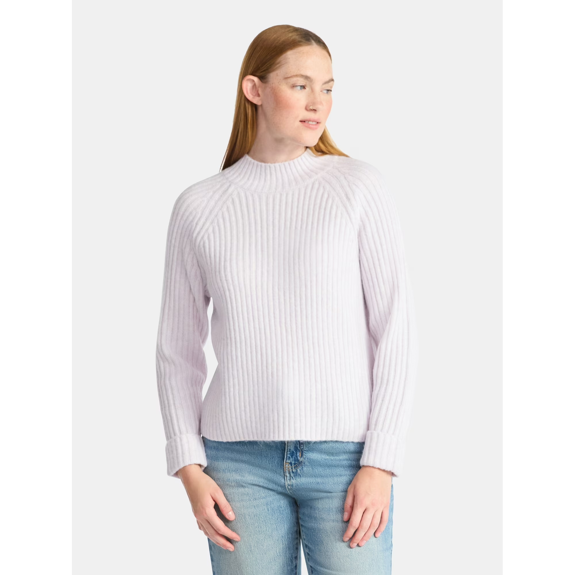 贝壳三 基础款半高领含羊毛弹力针织衫袖口翻边舒适毛衣C110813
