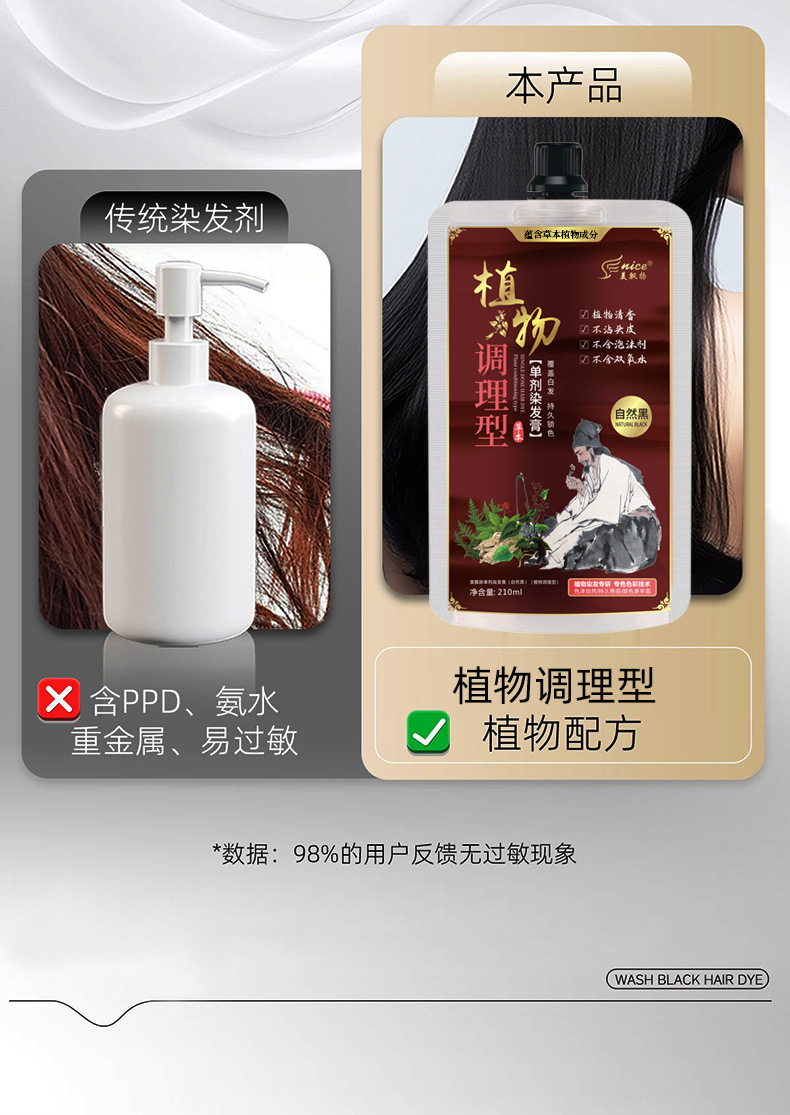 【持证盖白❗️植萃染护染发膏】操作简单,无需调配,一洗即染!美飘扬单剂无氨水无双氧无激刺染发膏植物家庭染发剂草本