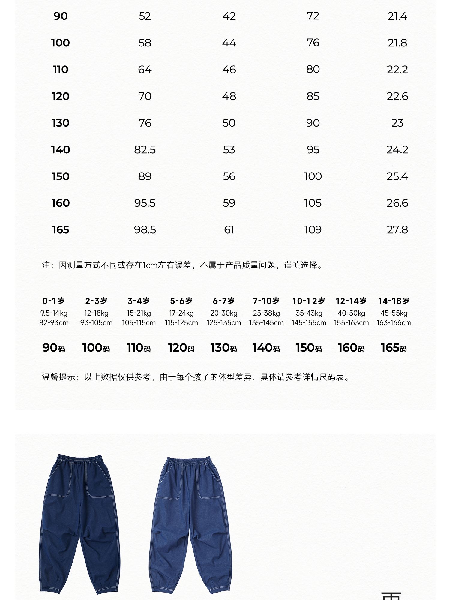 allblu幼岚儿童裤子男童女童25春季新款户外机能牛仔裤长裤