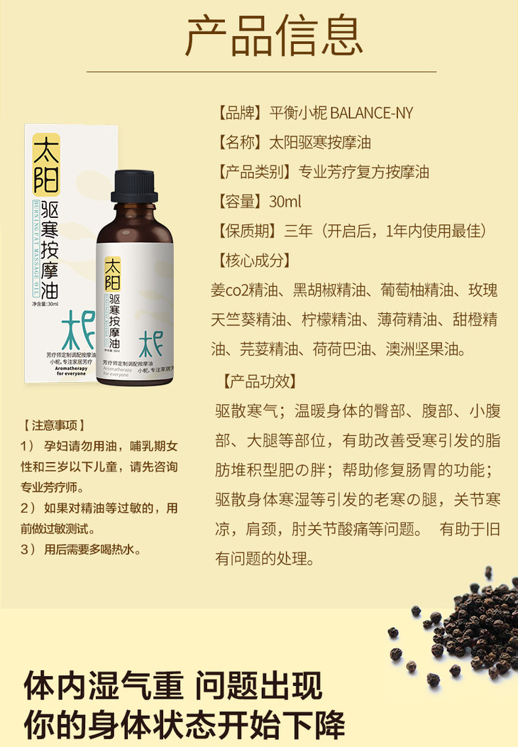 太阳驱の寒按摩油 会发热的太阳油 养护身体