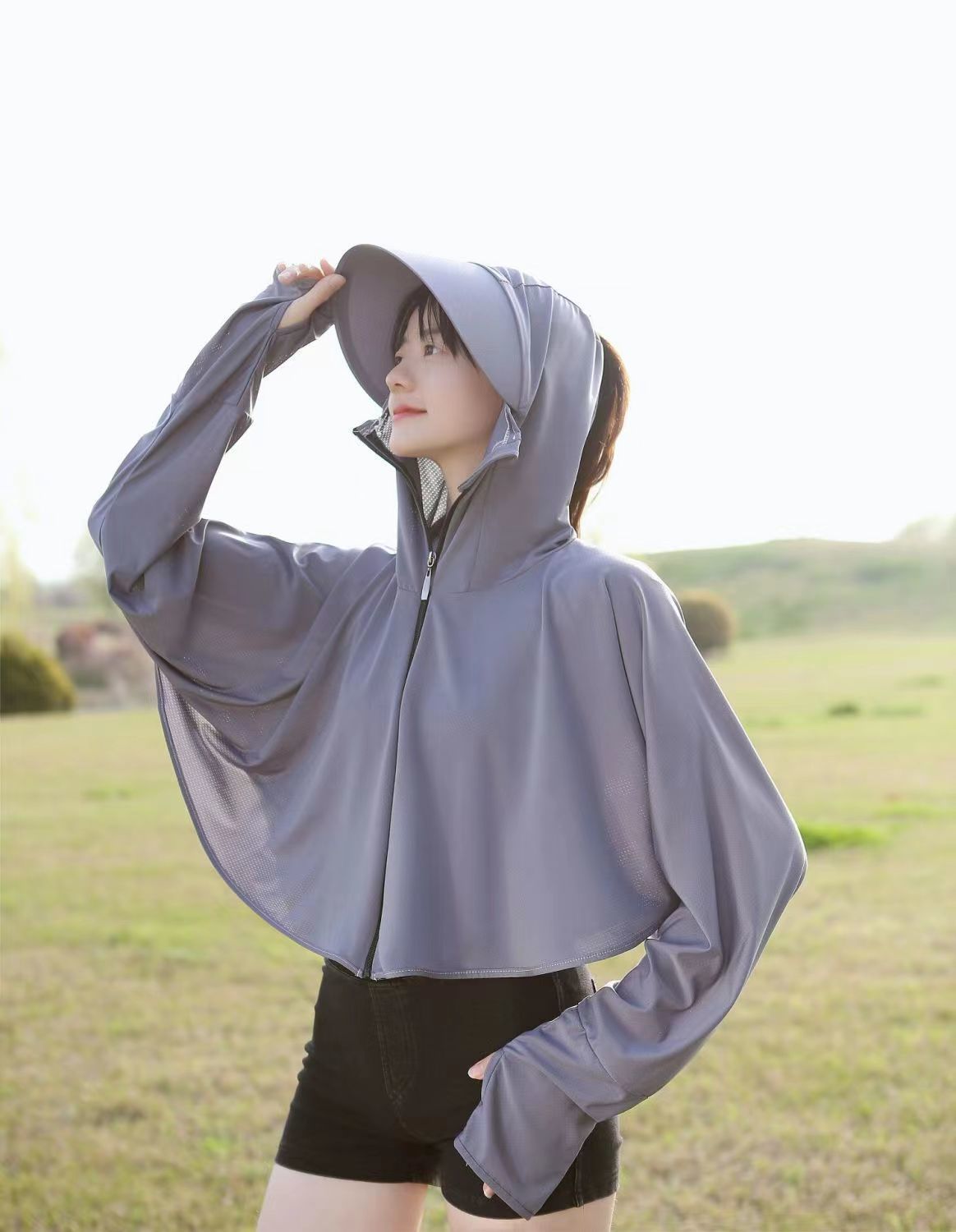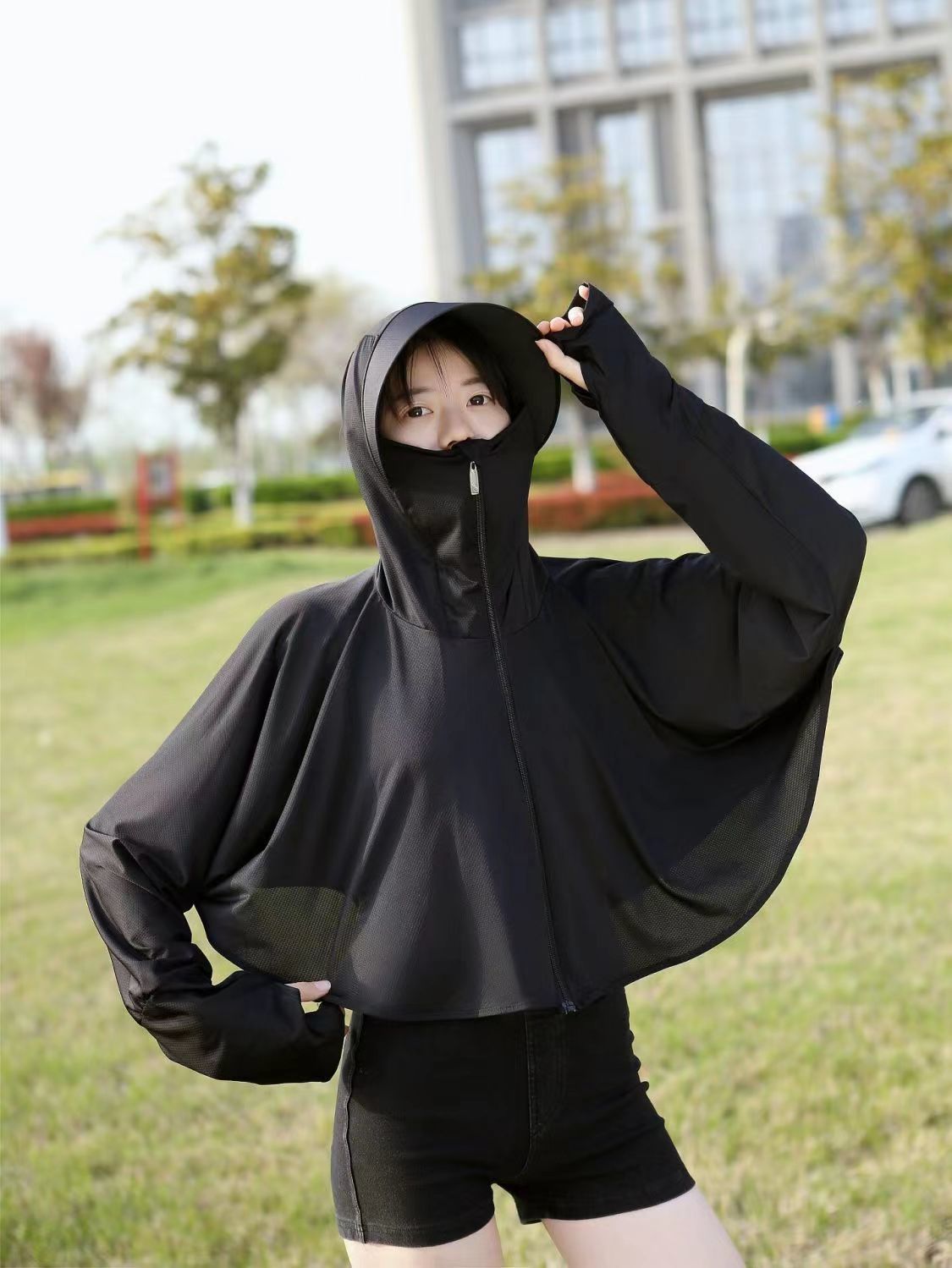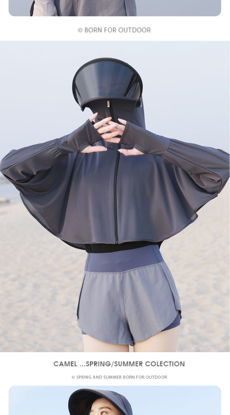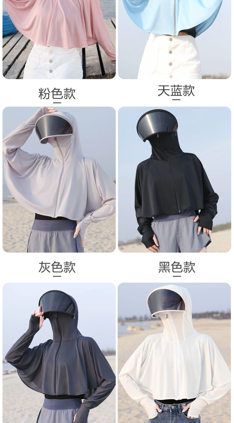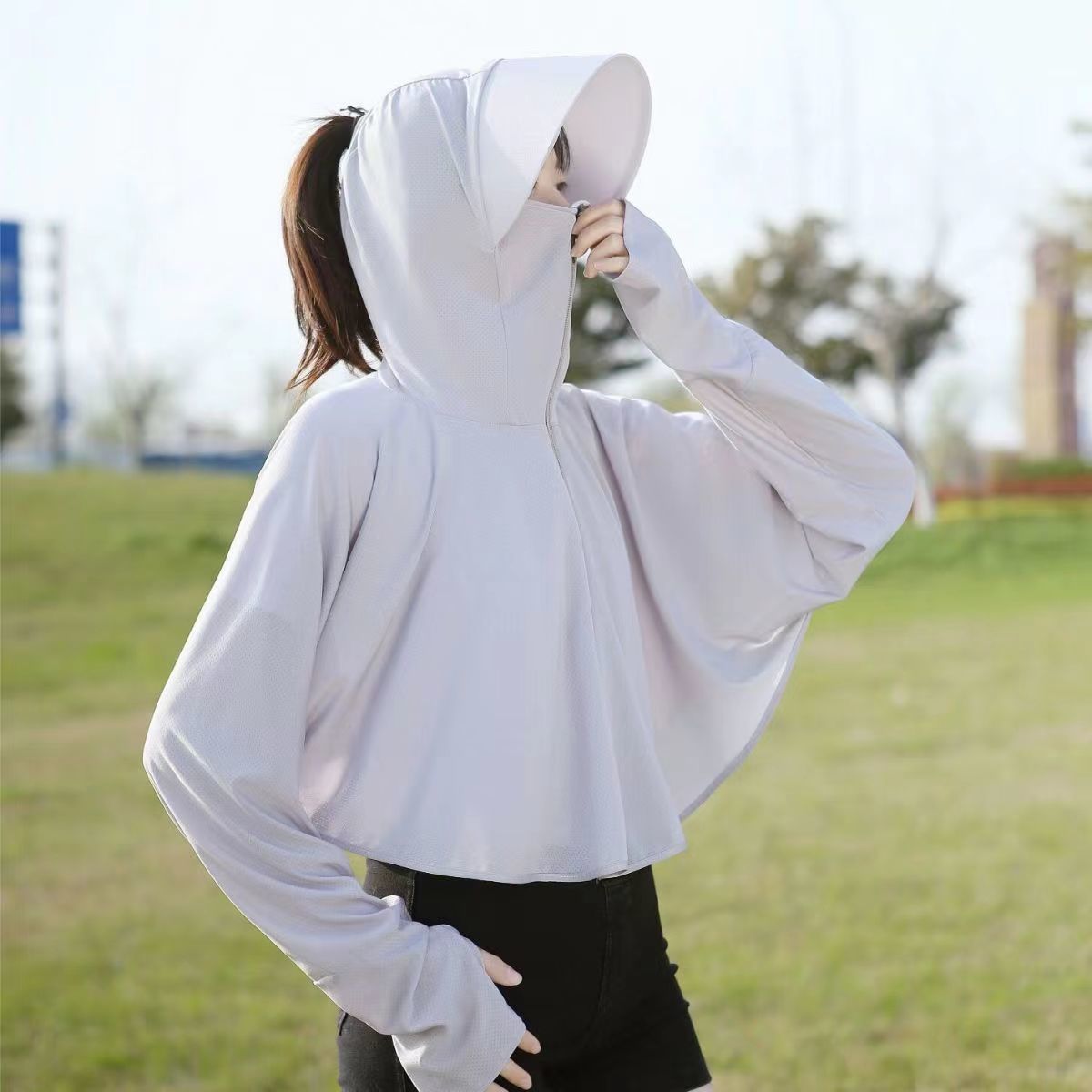 防晒衣冰丝长袖薄防晒披肩斗篷透气防紫外线遮脸护颈面罩
