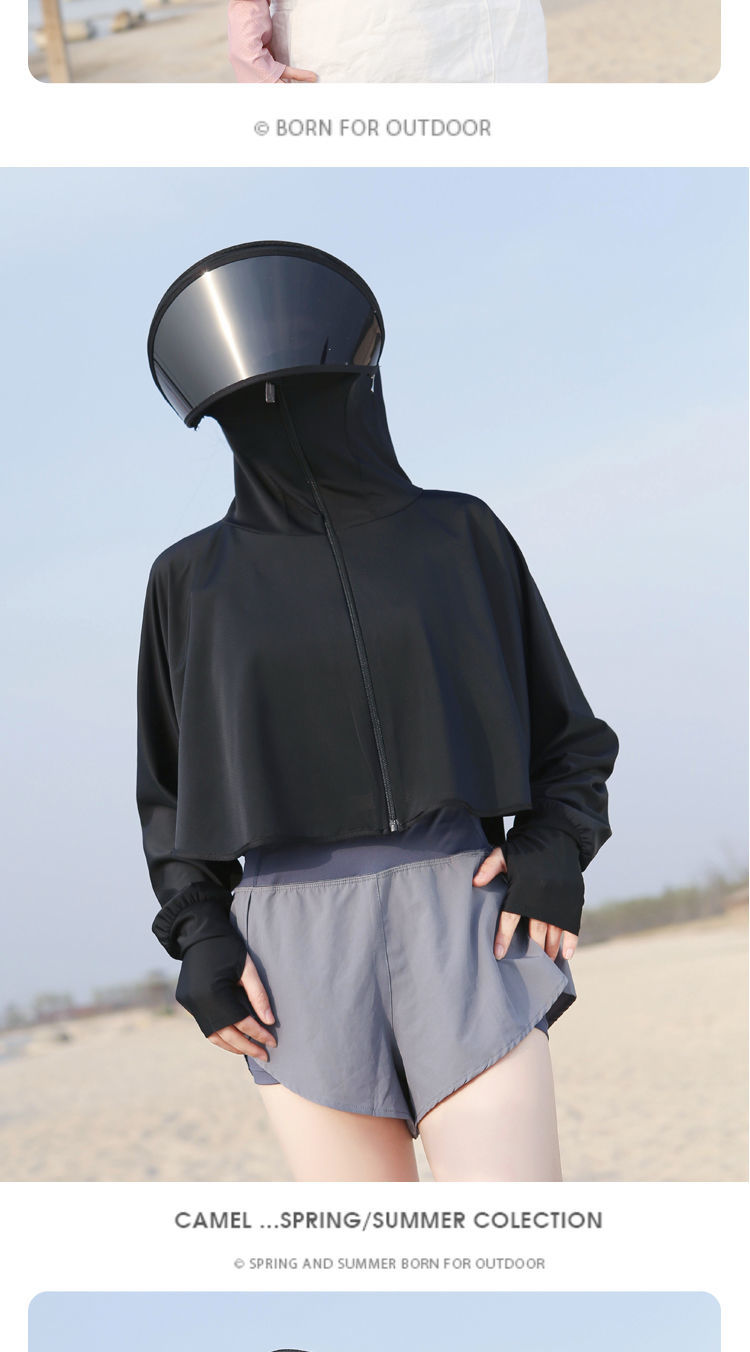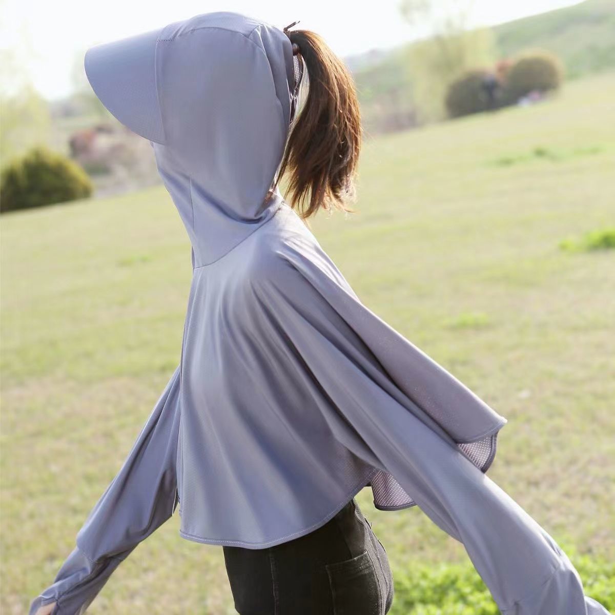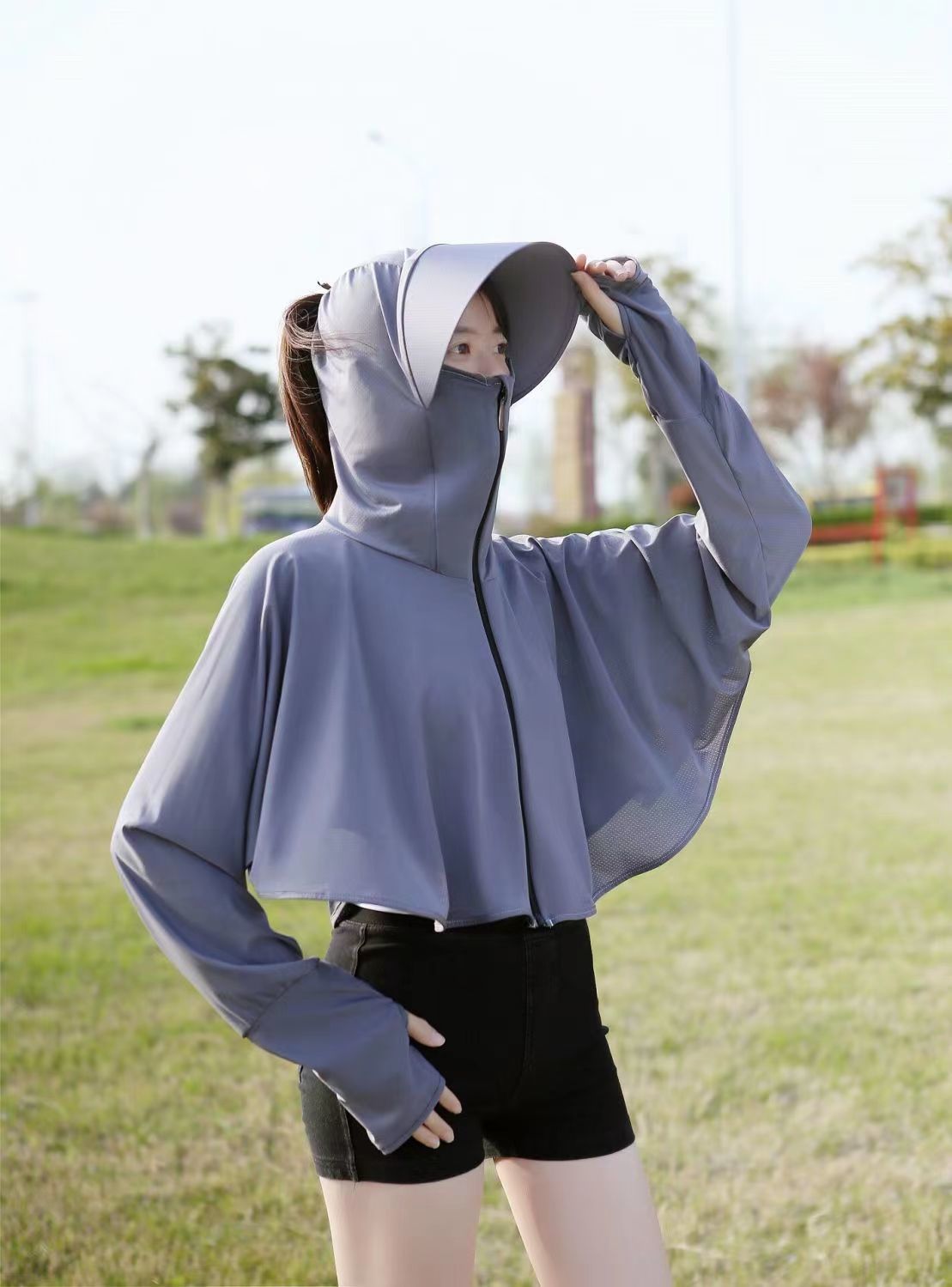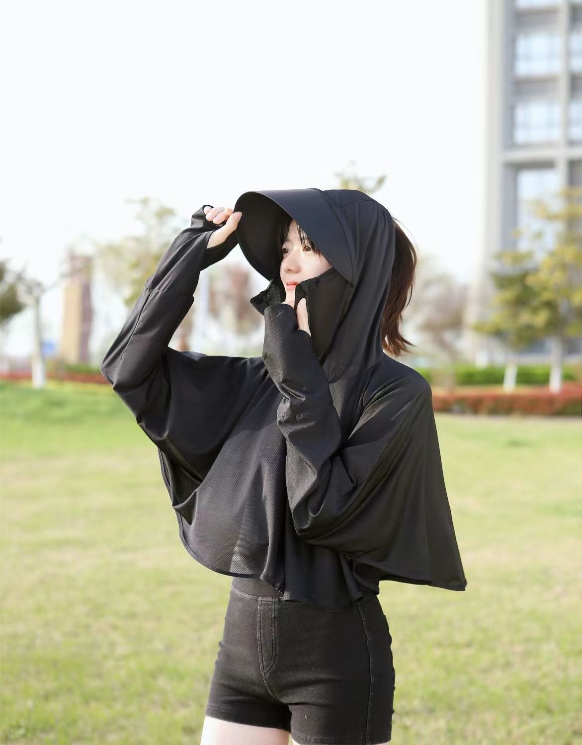 防晒衣冰丝长袖薄防晒披肩斗篷透气防紫外线遮脸护颈面罩