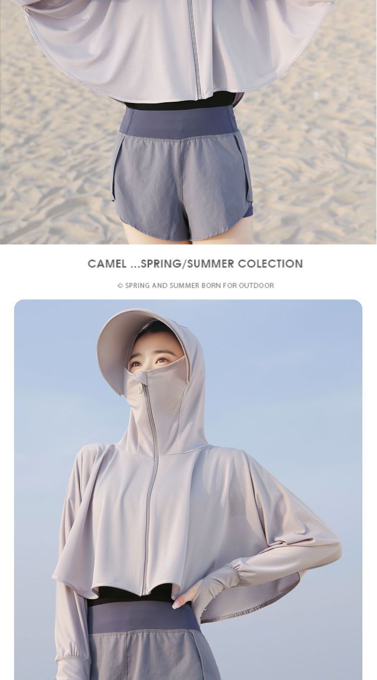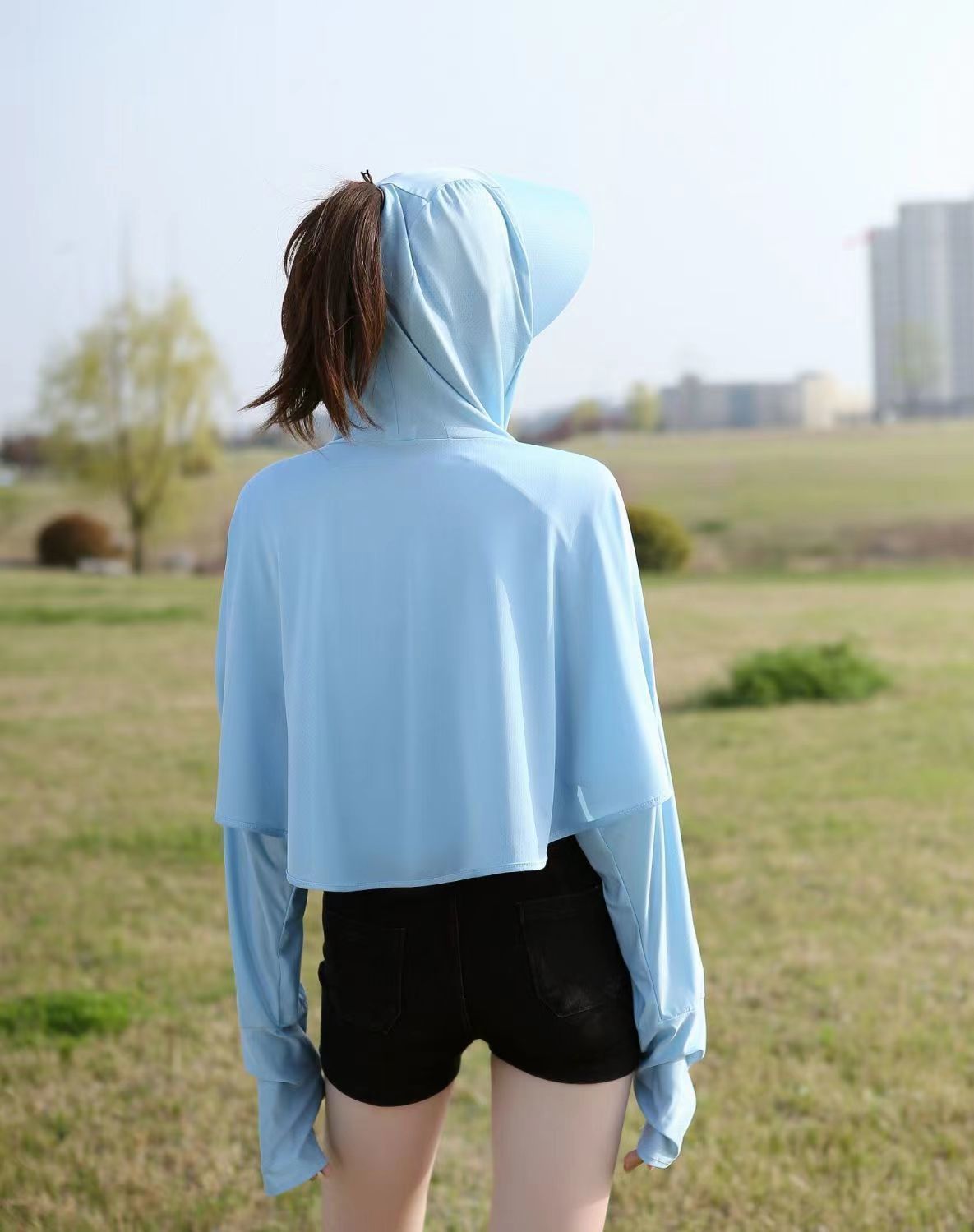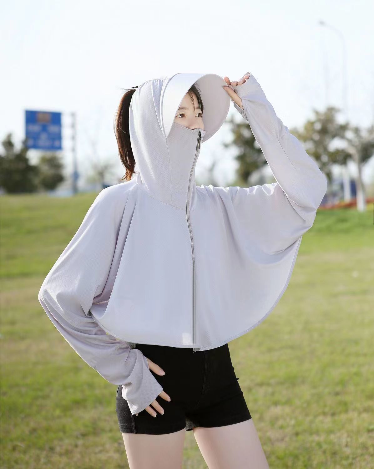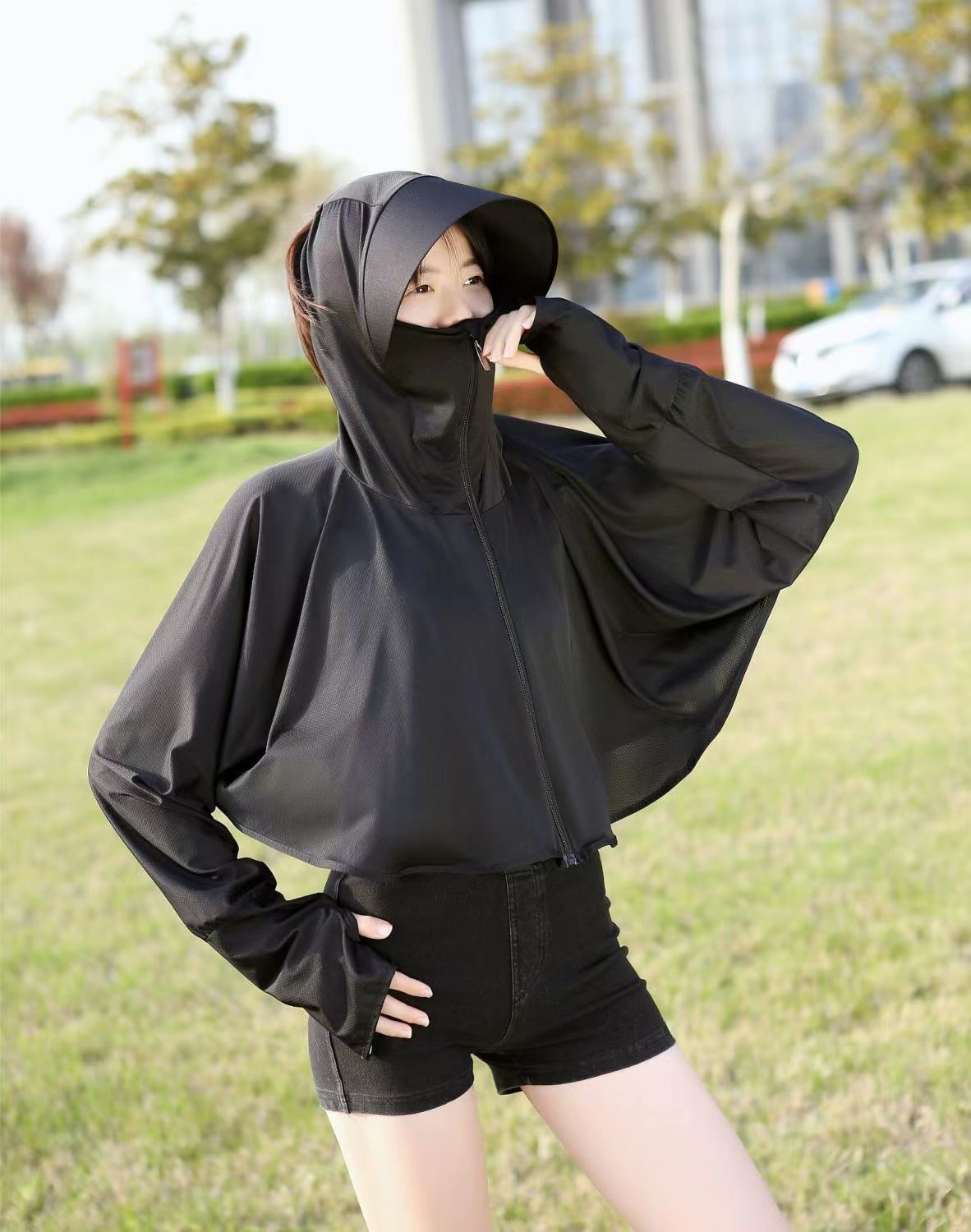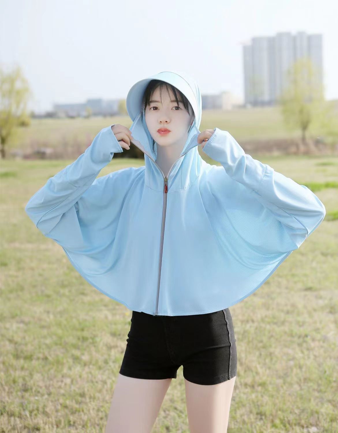 防晒衣冰丝长袖薄防晒披肩斗篷透气防紫外线遮脸护颈面罩