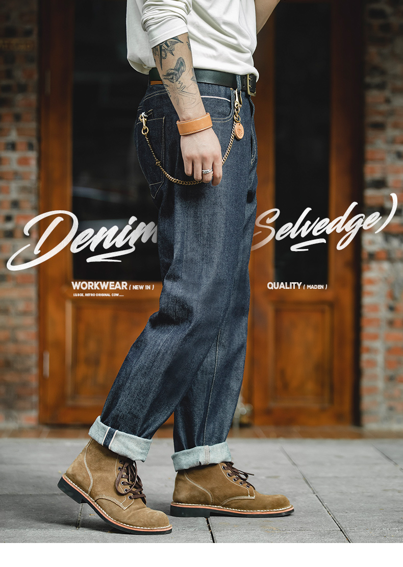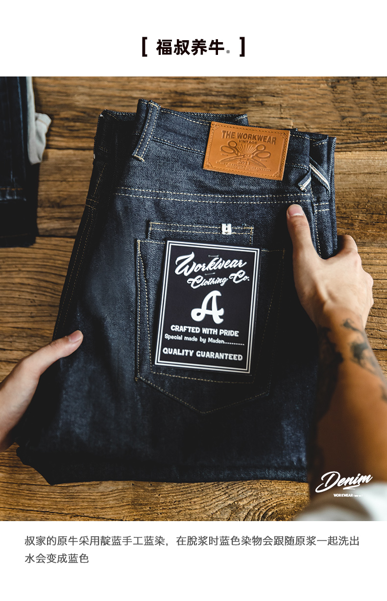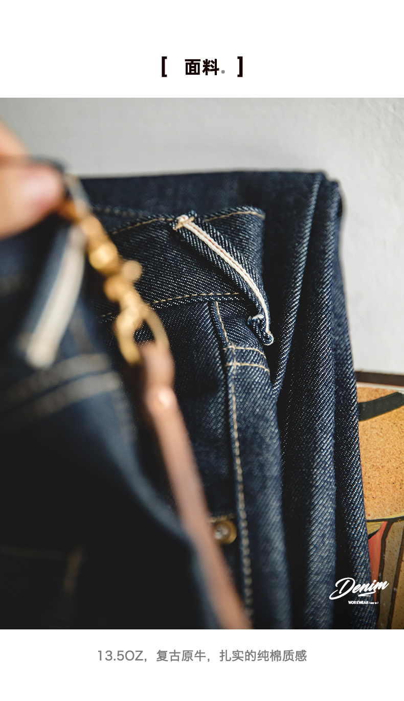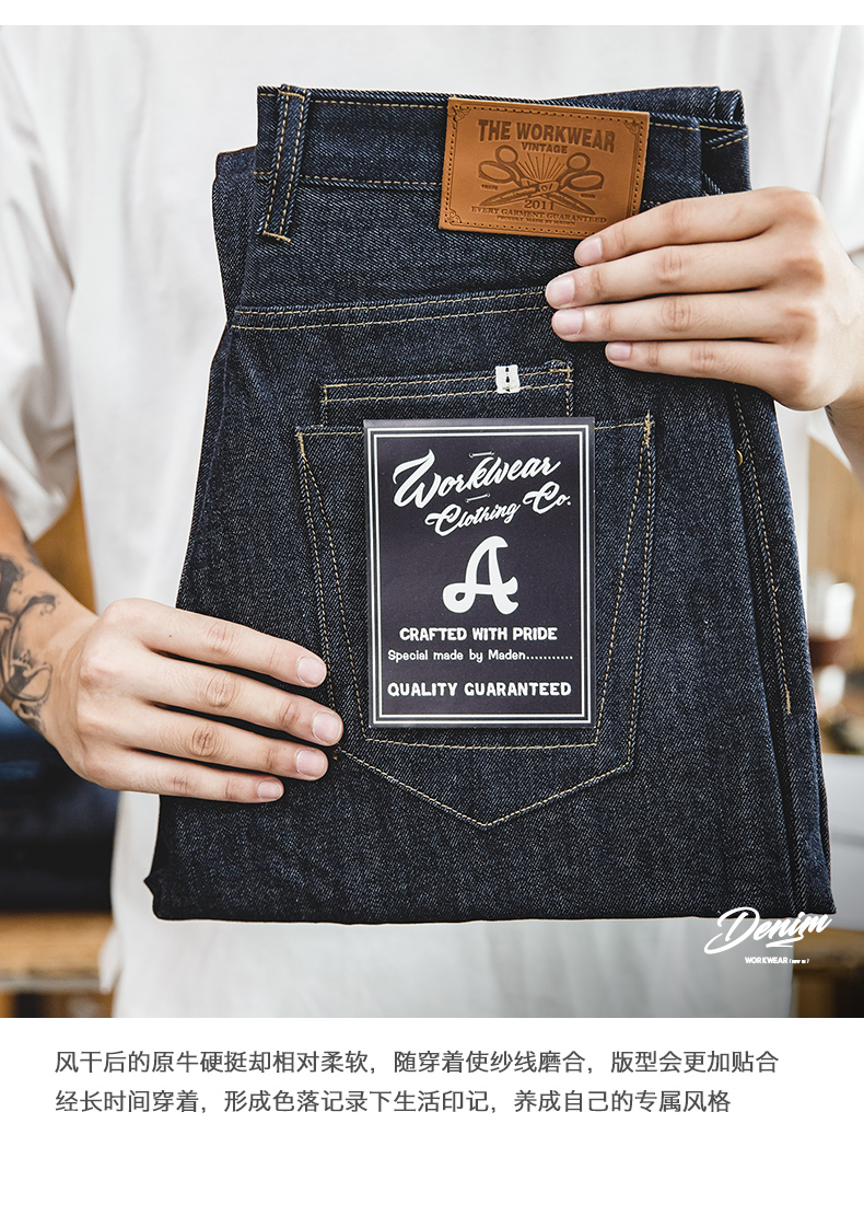 工装优选 日系复古丹宁赤耳原牛直筒牛仔裤重磅养牛长裤子男秋冬