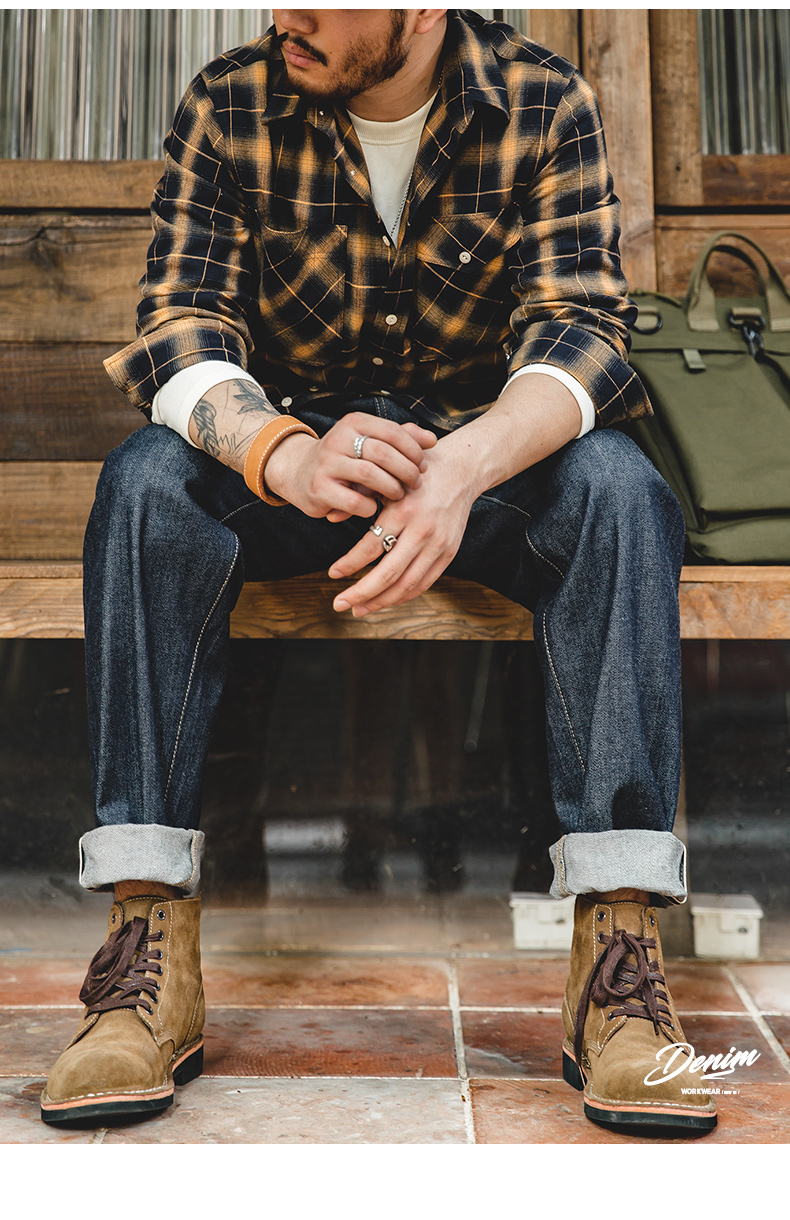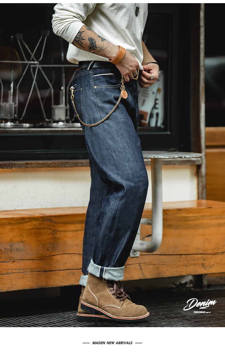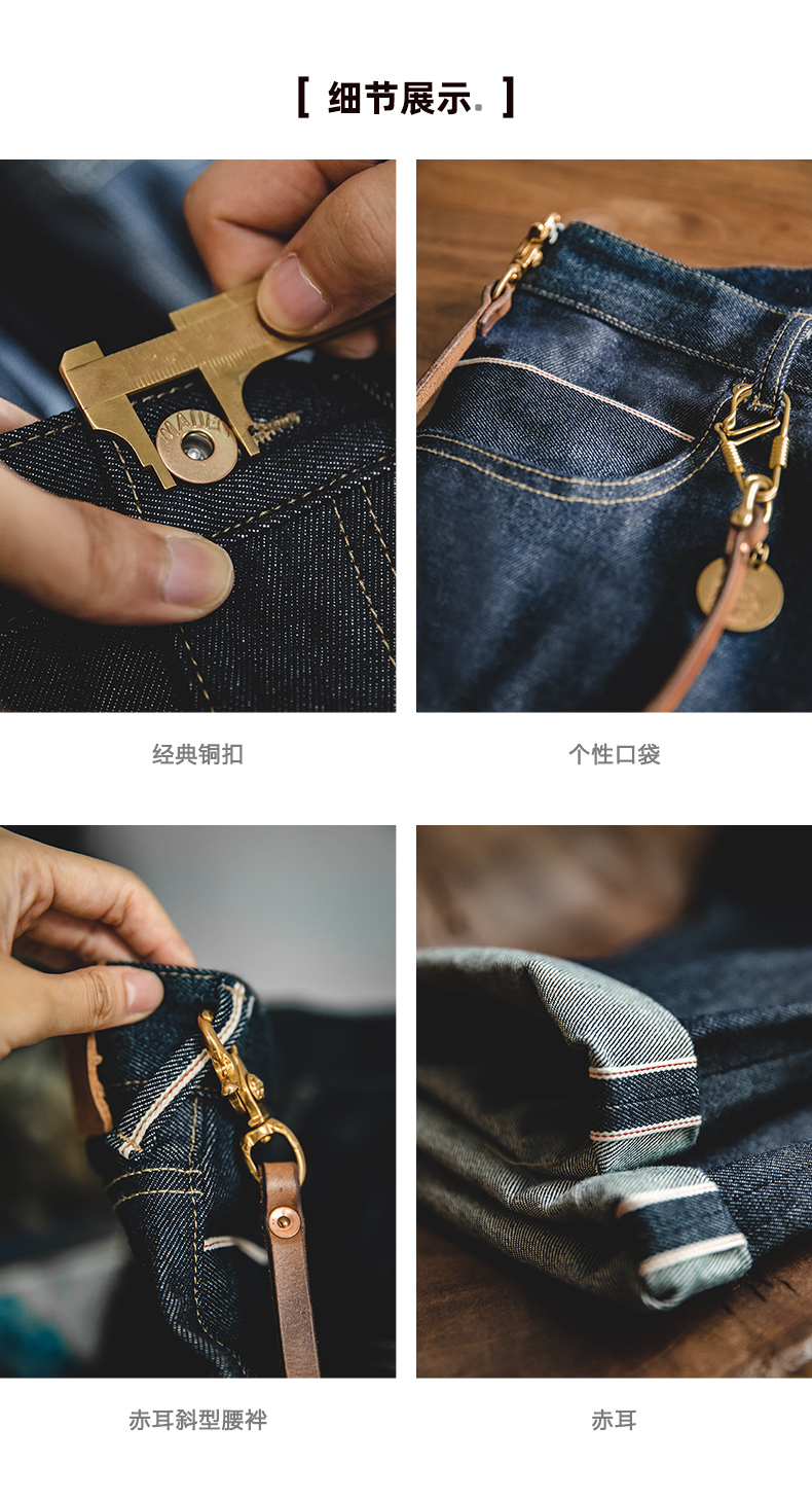 工装优选 日系复古丹宁赤耳原牛直筒牛仔裤重磅养牛长裤子男秋冬