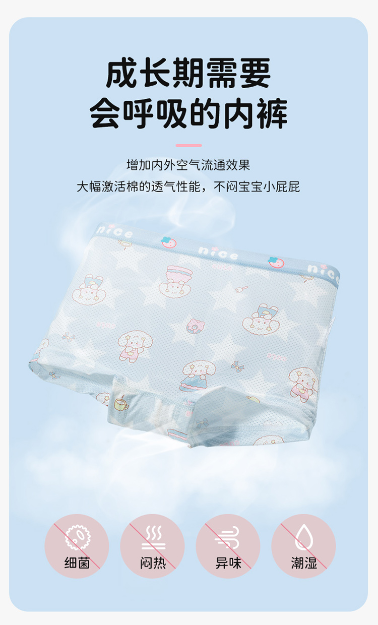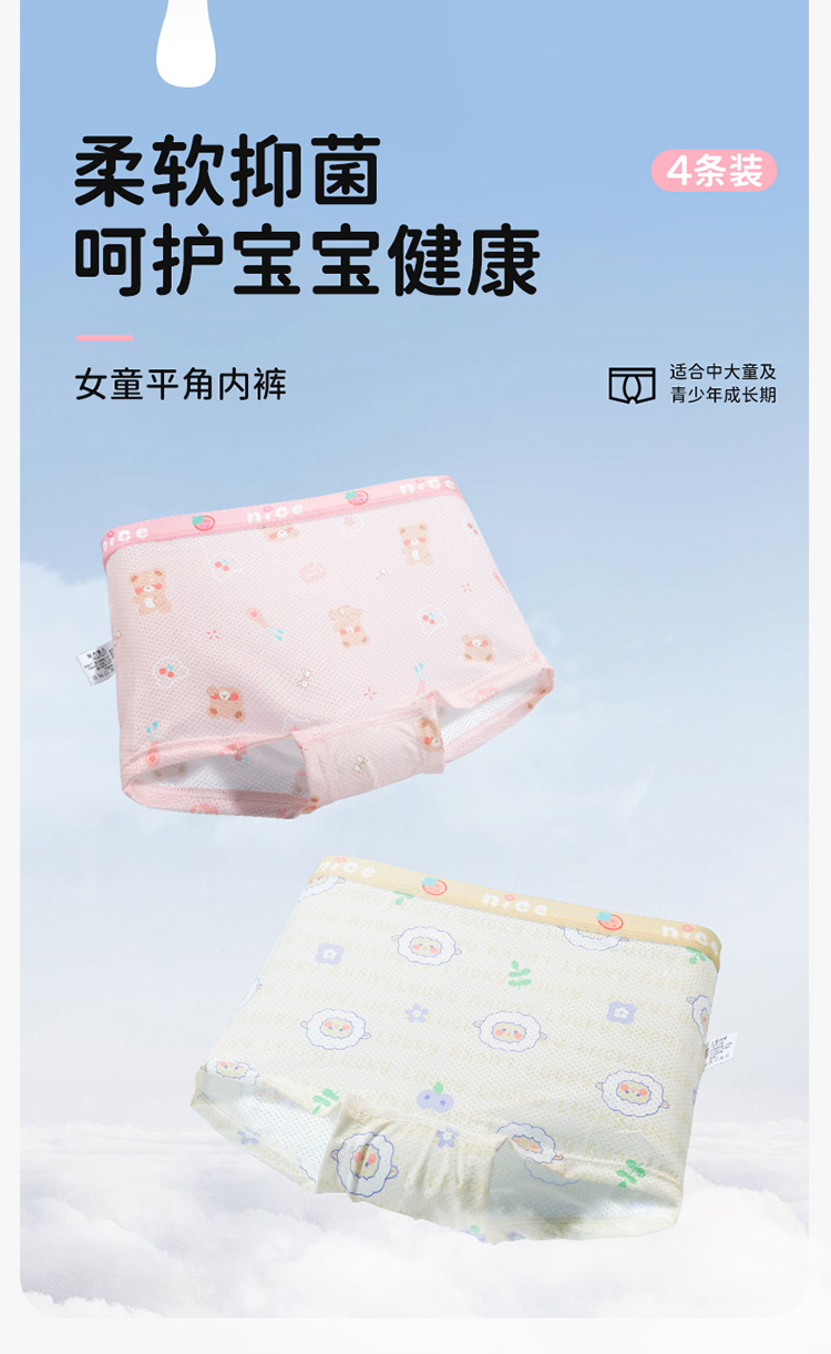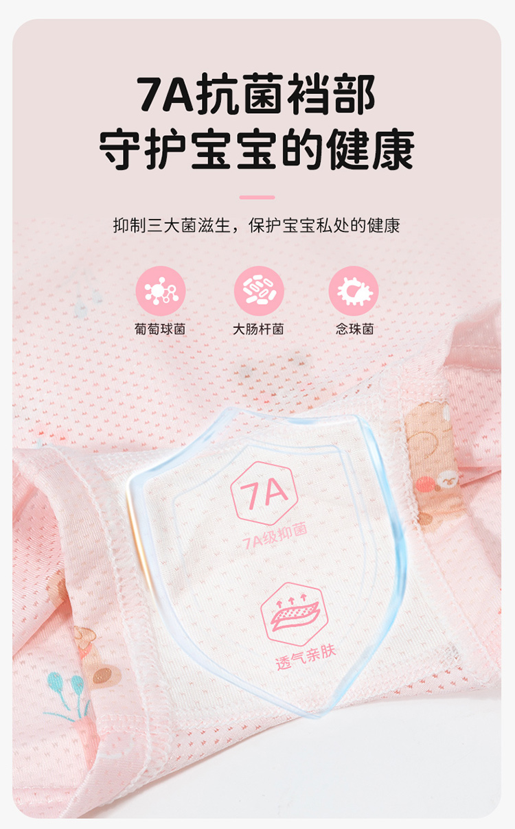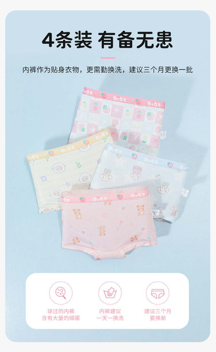 【7A抑菌】4条装女童内裤夏季网眼透气平角裤冰爽舒适宝宝内裤ZB5DP032
