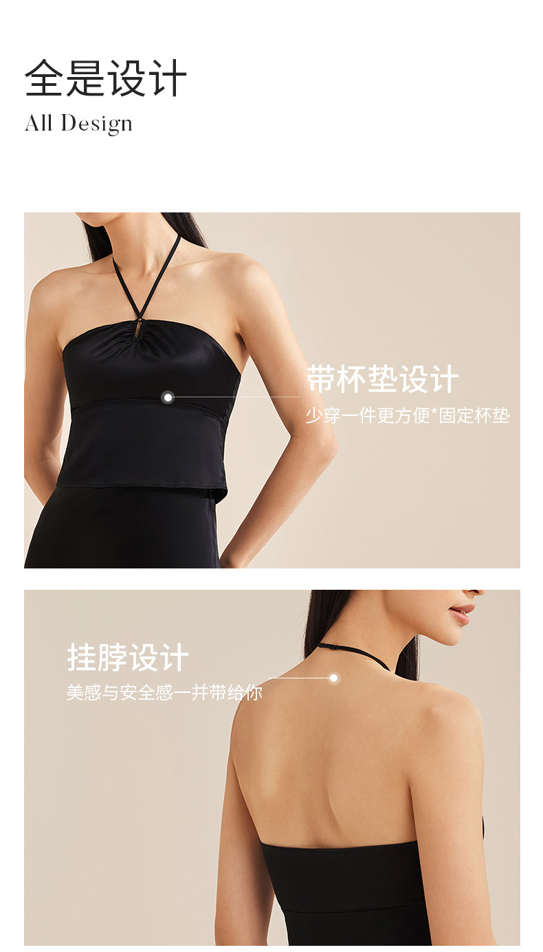 金三塔桑蚕丝缎面抹胸性感修身挂脖吊带bra-in带杯垫免穿文胸抹胸 NZFEB401