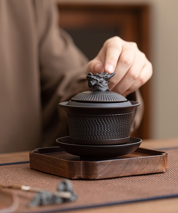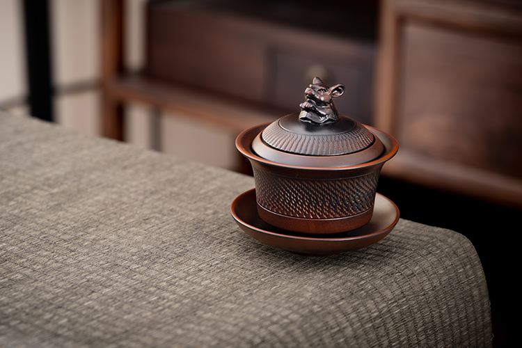 盖碗经过专利级的技术处理,可以悬停在杯身,颇有一种古典智慧之美。