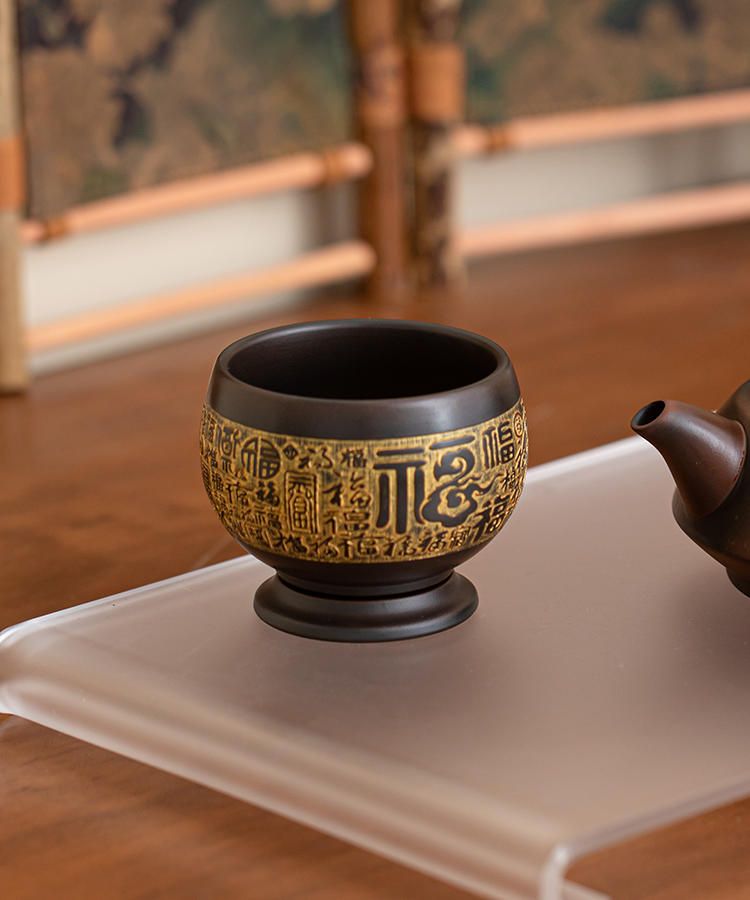 以千年建水紫陶为骨,融禅意与祝福为魂,这款紫陶杯将茶道气韵、匠心巧思与人文寄托凝于一杯,成就茶席上的雅致风景。