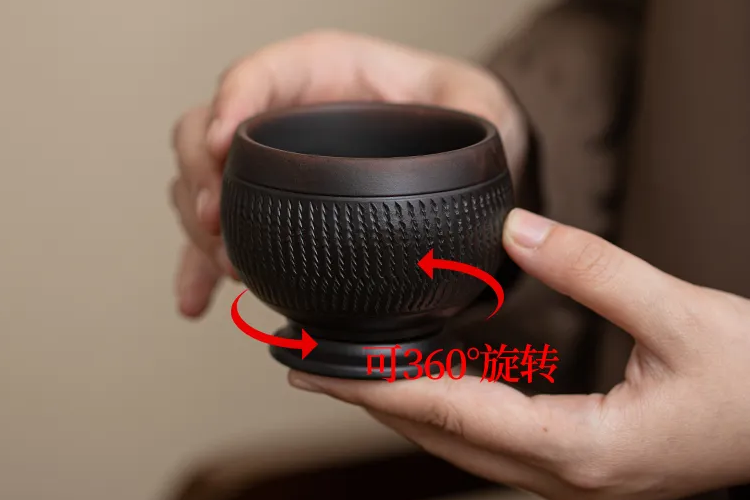 壶盖与壶身精密连接,指尖轻推即可360°丝滑旋转,倒茶时水流匀速不洒漏,闲暇时随手一拨,壶盖如陀螺般飞旋起舞,茶香未起,雅趣已生。