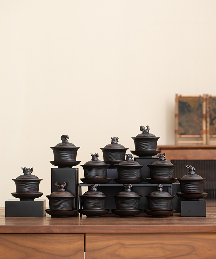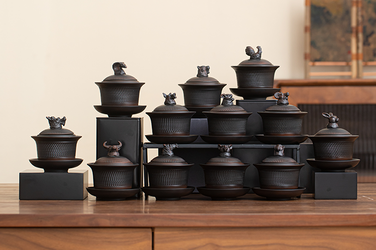 盖钮被赋予“茶具之眼”的深意,曾老师以刀为笔,在方寸之间雕琢十二生肖。灵鼠献瑞,牛Y亨通,虎啸生风,兔来Y转,龙腾四海......