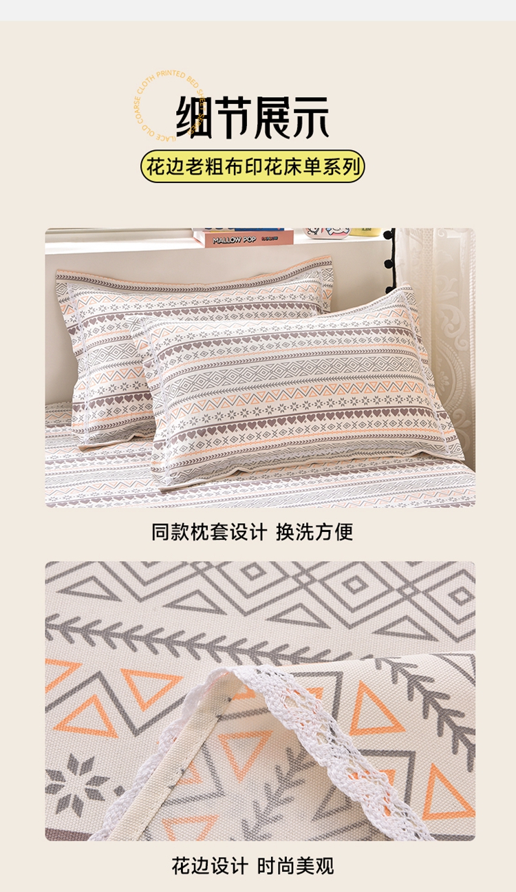 【品名】浪莎 家纺花边老粗布印花床单3件套 凉爽透气 亲肤老粗布 8款花色可选 【规格】 波西米亚、草莓、黛紫、粉格子、萌熊、慕夏、西野暮色、紫嫣 【尺寸】 床单:230cm*240cm 枕套:45cm*74cm*2个 【产地】国内 【材质】聚酯纤维100% 【发货包装】独立包装 【发货地】江苏 【发货快递】极兔、中通随机发 【不发货区域】新疆、西藏、港澳台 【发货时效】48-72小时,周末节假日顺延 |