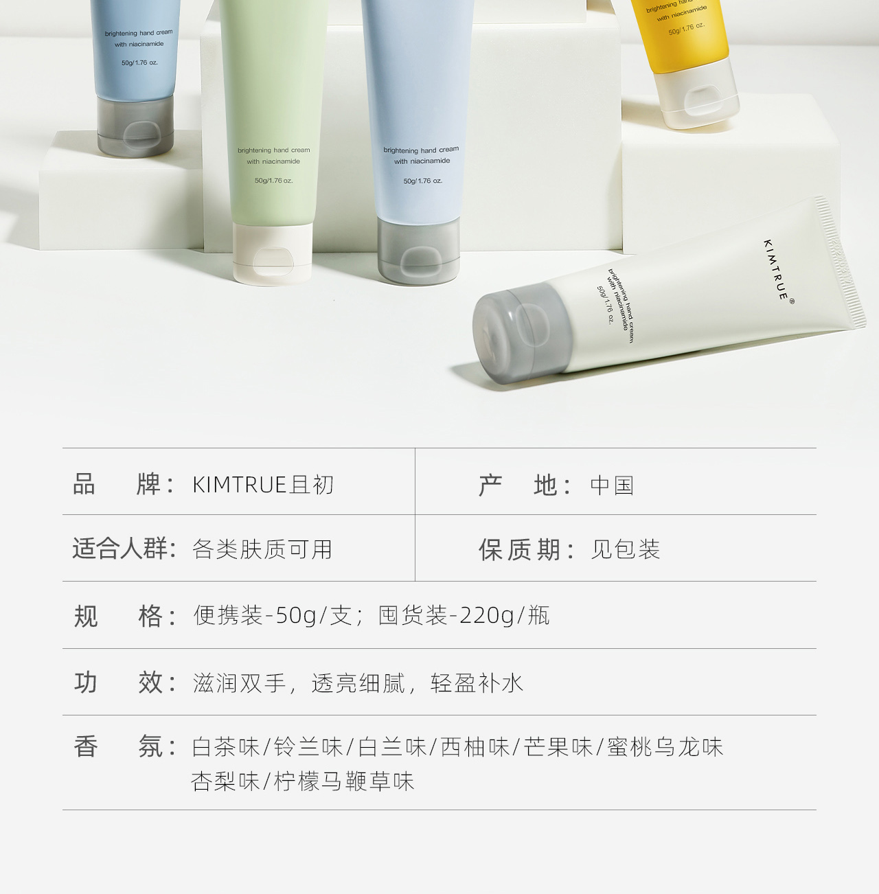 KIMTRUE且初 烟酰胺润养焕亮护手霜 50g 蜜桃乌龙味柠檬马鞭草味杏梨味芒果味
