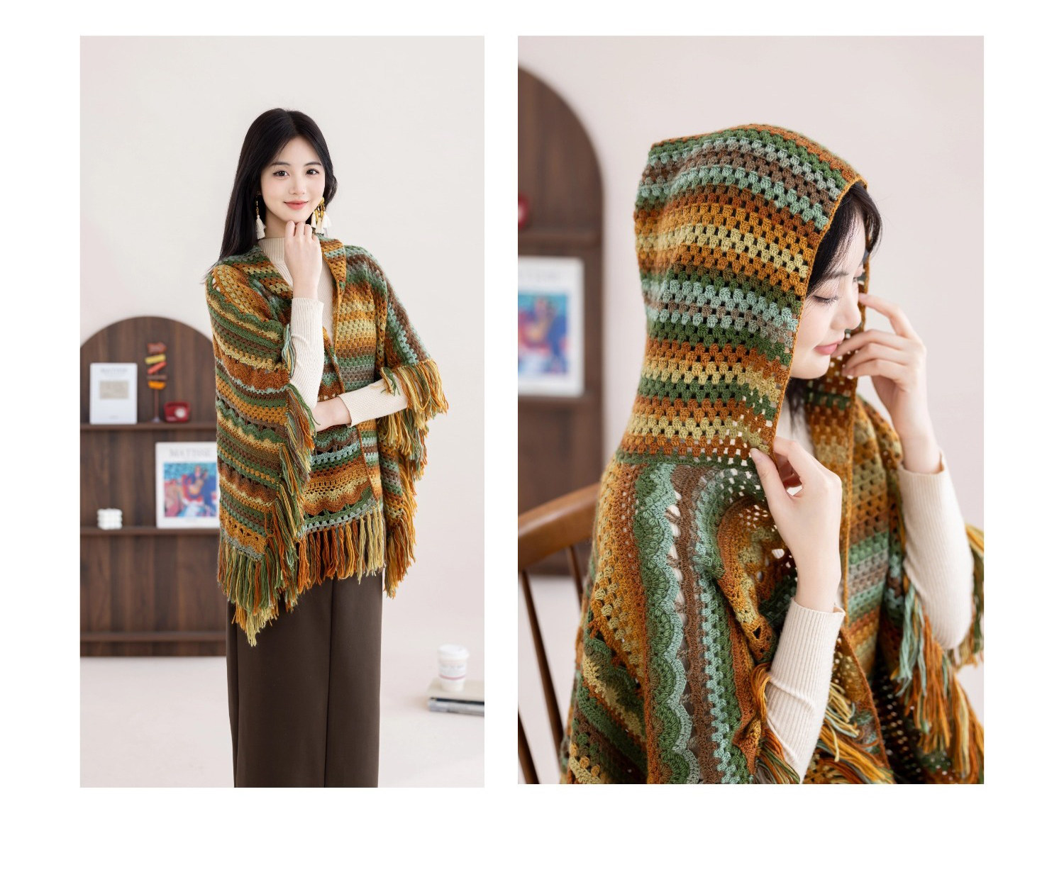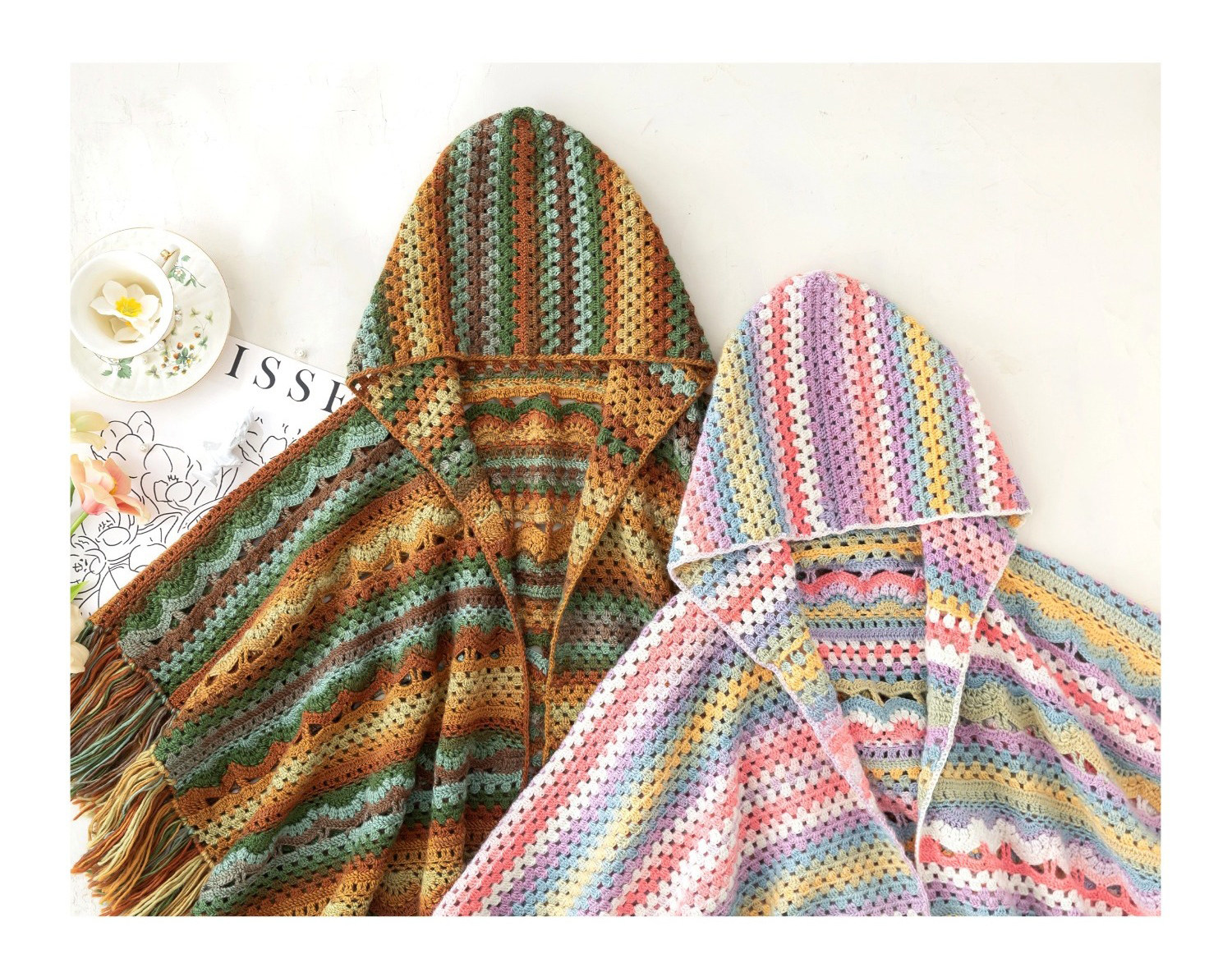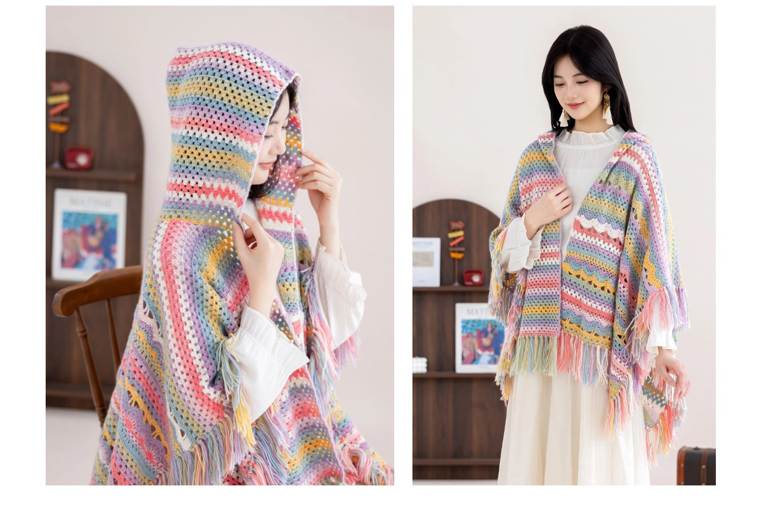 苏苏姐家林屿连帽披肩手工diy编织钩针印象莫奈毛线团自制材料包